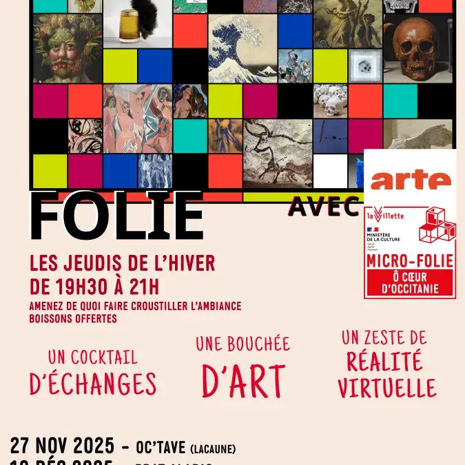 Un nouveau concept débarque : l’Apéro-Folie, un moment convivial pour discuter d’art — au sens très large — autour d’un apéritif dînatoire partagé ! Un jeudi par mois de novembre à février sur 4 communes différentes.
