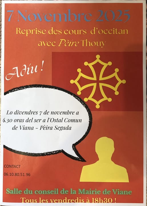Lo divendres 7 de novembre a 6.30 oras del ser a l'Ostal Comun de Viana-Pèire Segada.