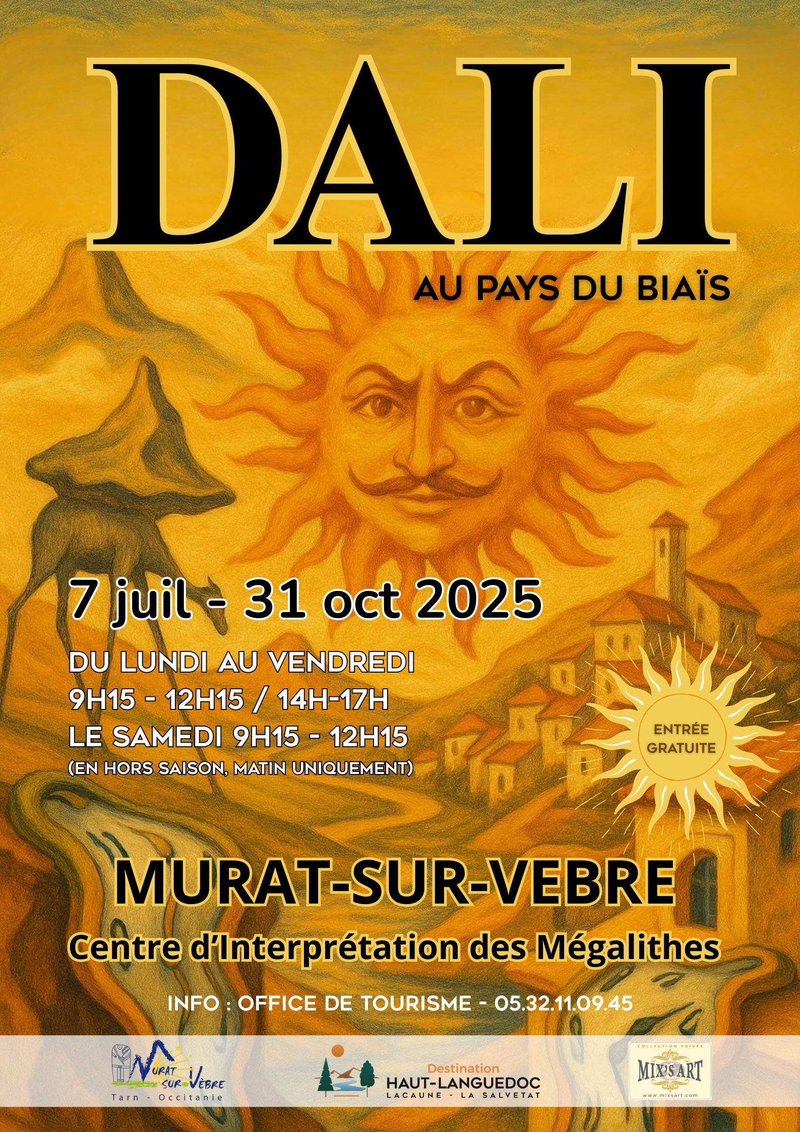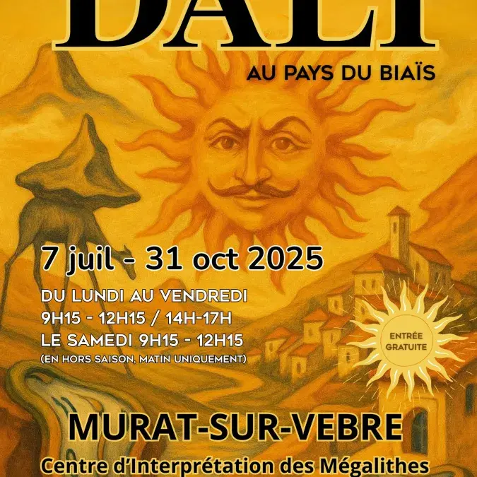 Exposition dédiée à l’œuvre de l'immense artiste Salvador Dali, tout l'été (et même au-delà), au Centre d’Interprétation des Mégalithes de Murat-sur-Vèbre.