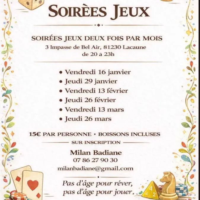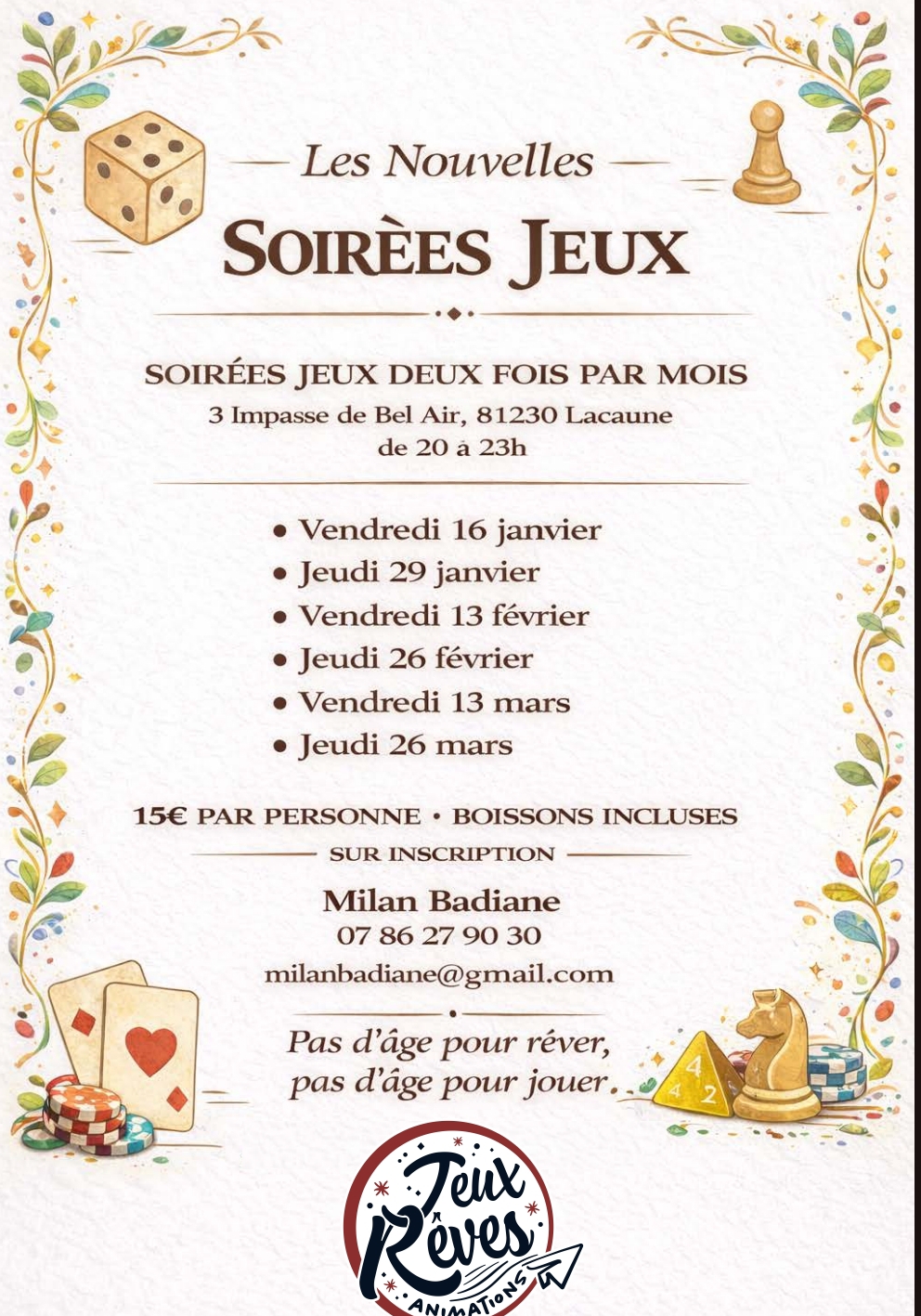 Vendredi 16 janvier 2026 de 20h à 23h.