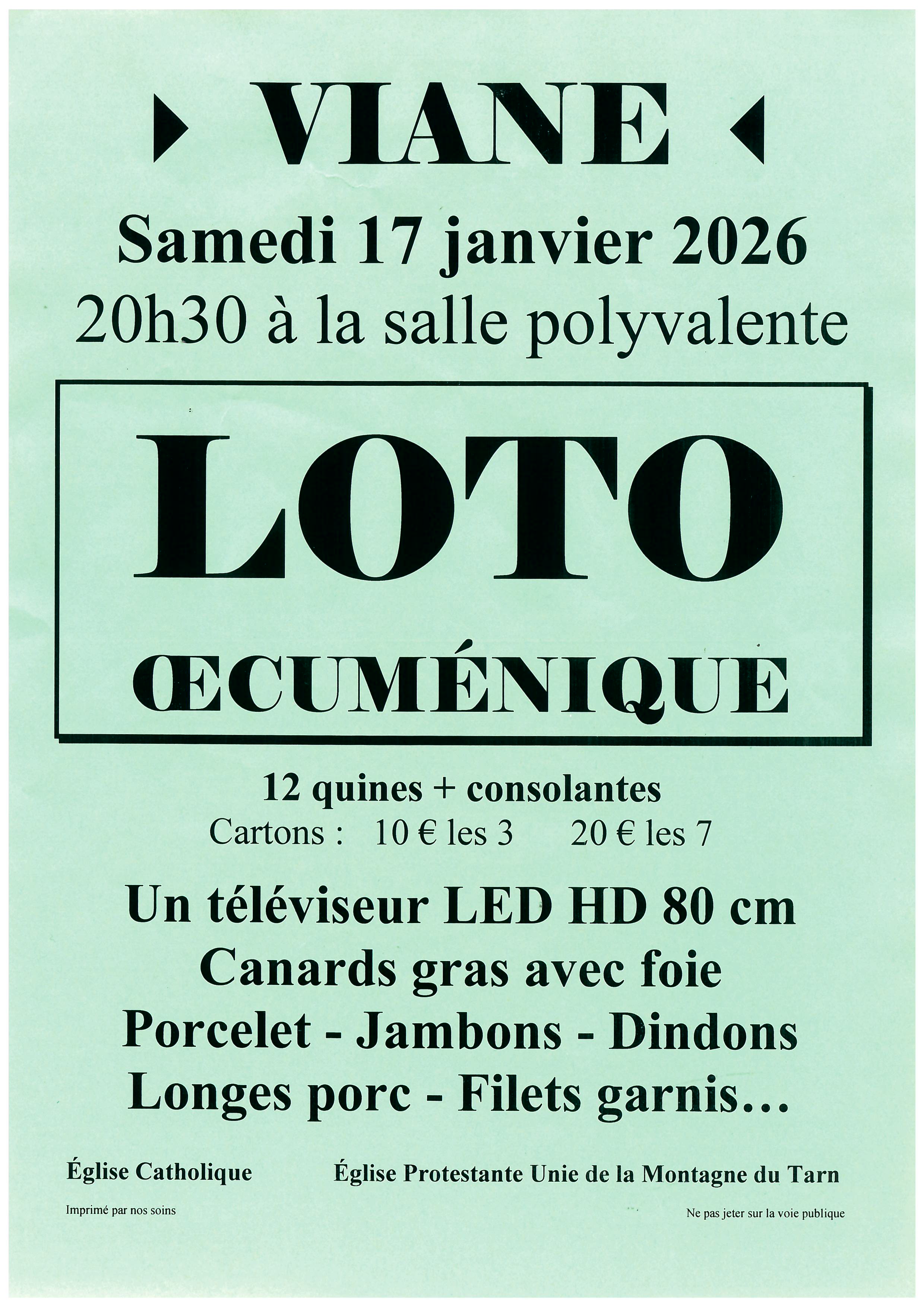 organisé par l'Eglise Catholique et l'Eglise Protestante Unie de la Montagne du Tarn