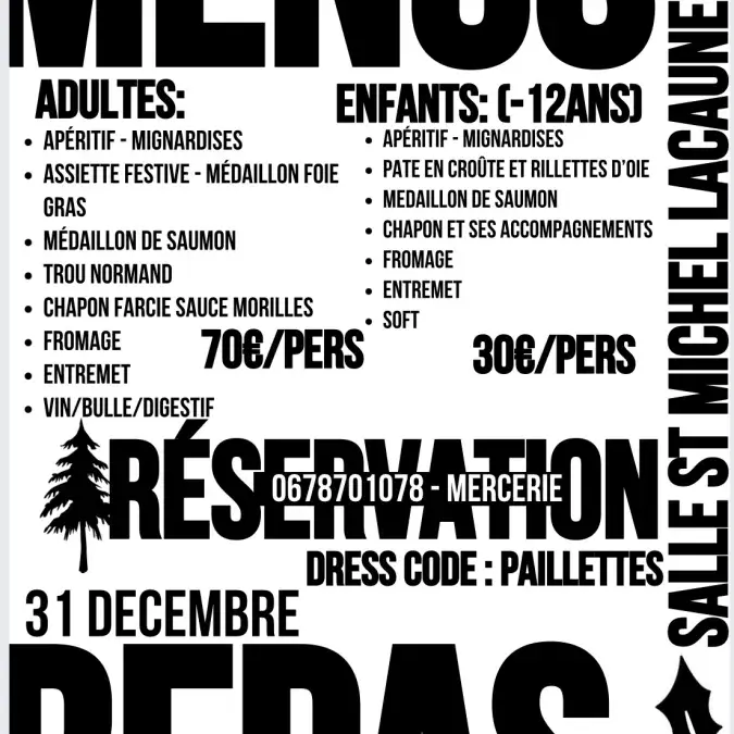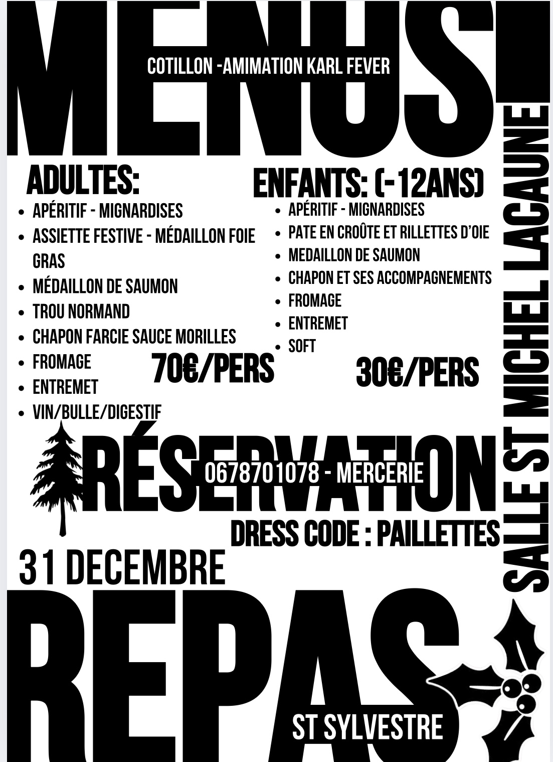 Repas à réserver par téléphone au 0678701078 - ou à la mercerie de Lacaune.