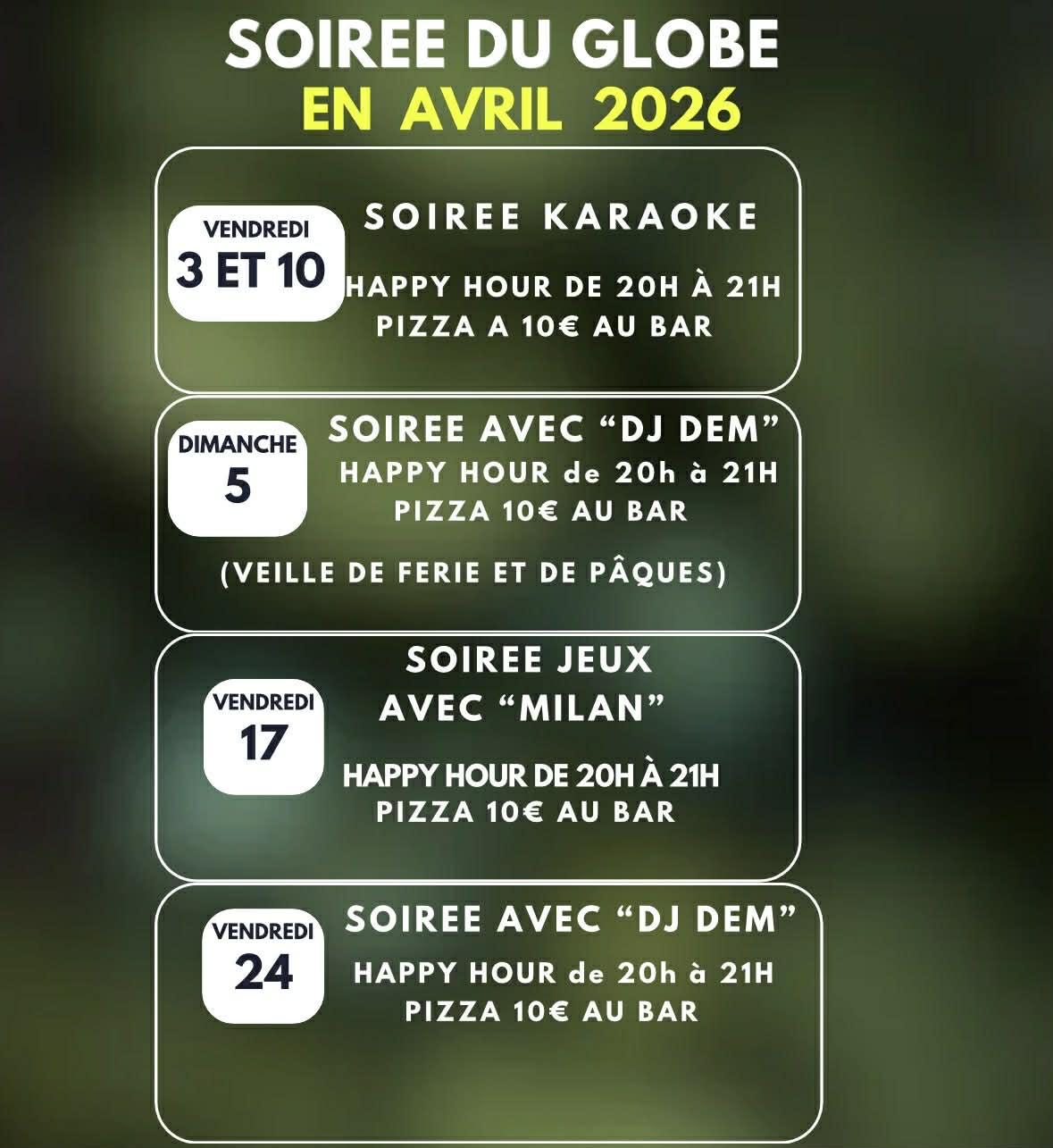 Vendredi 10 avril 2026 à partir de 20h.