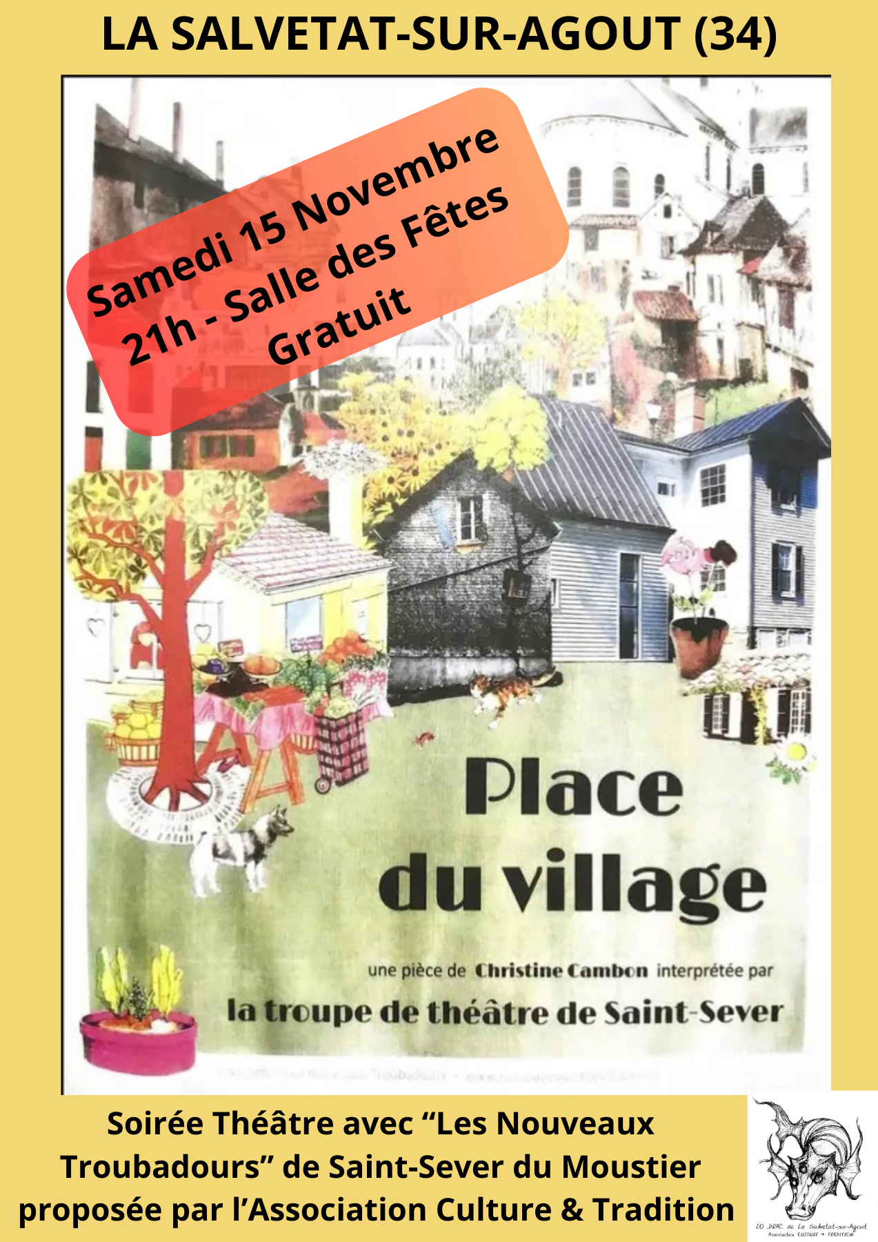 L'Association Culture & Tradition propose une soirée Théâtre avec "Les Nouveaux Troubadours" de Saint Sever du Moustier : "Place du Village"