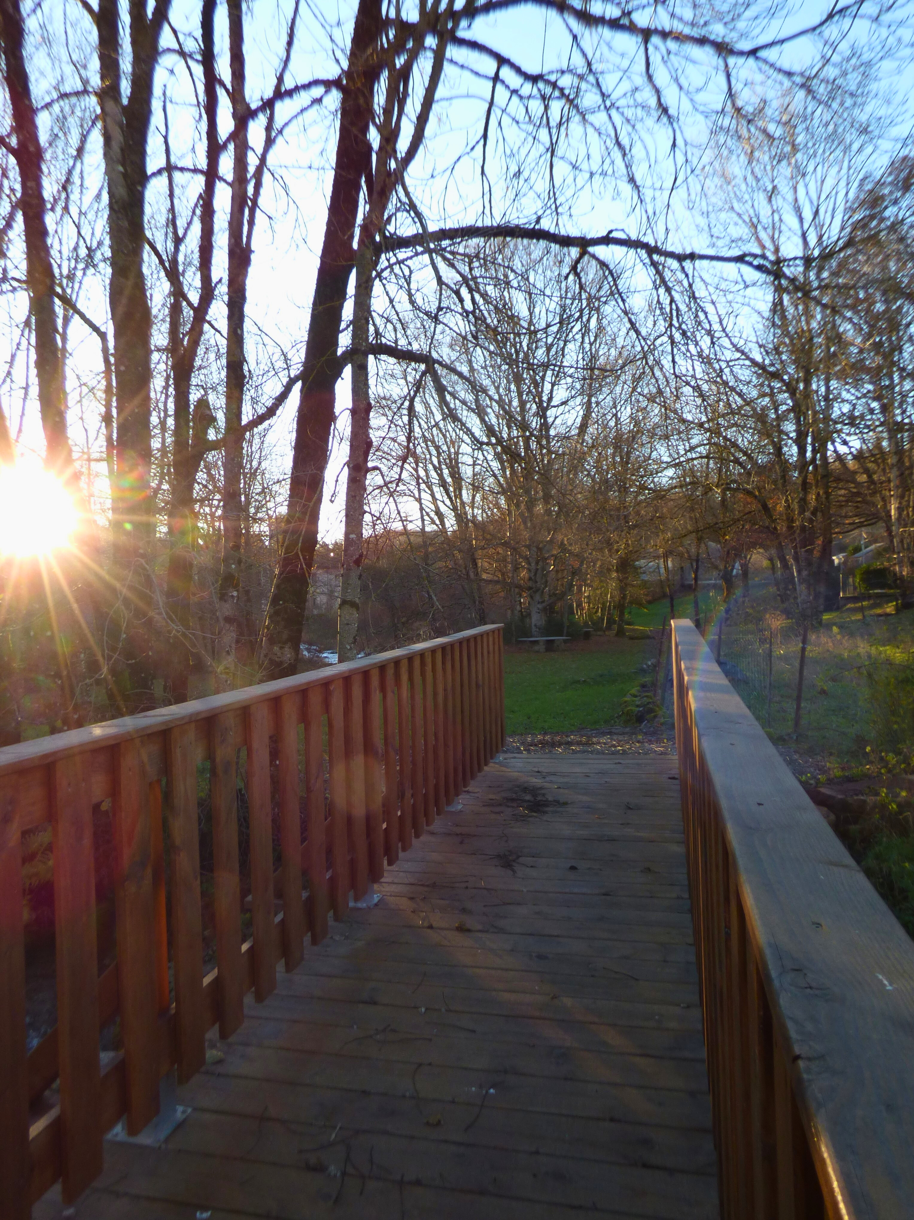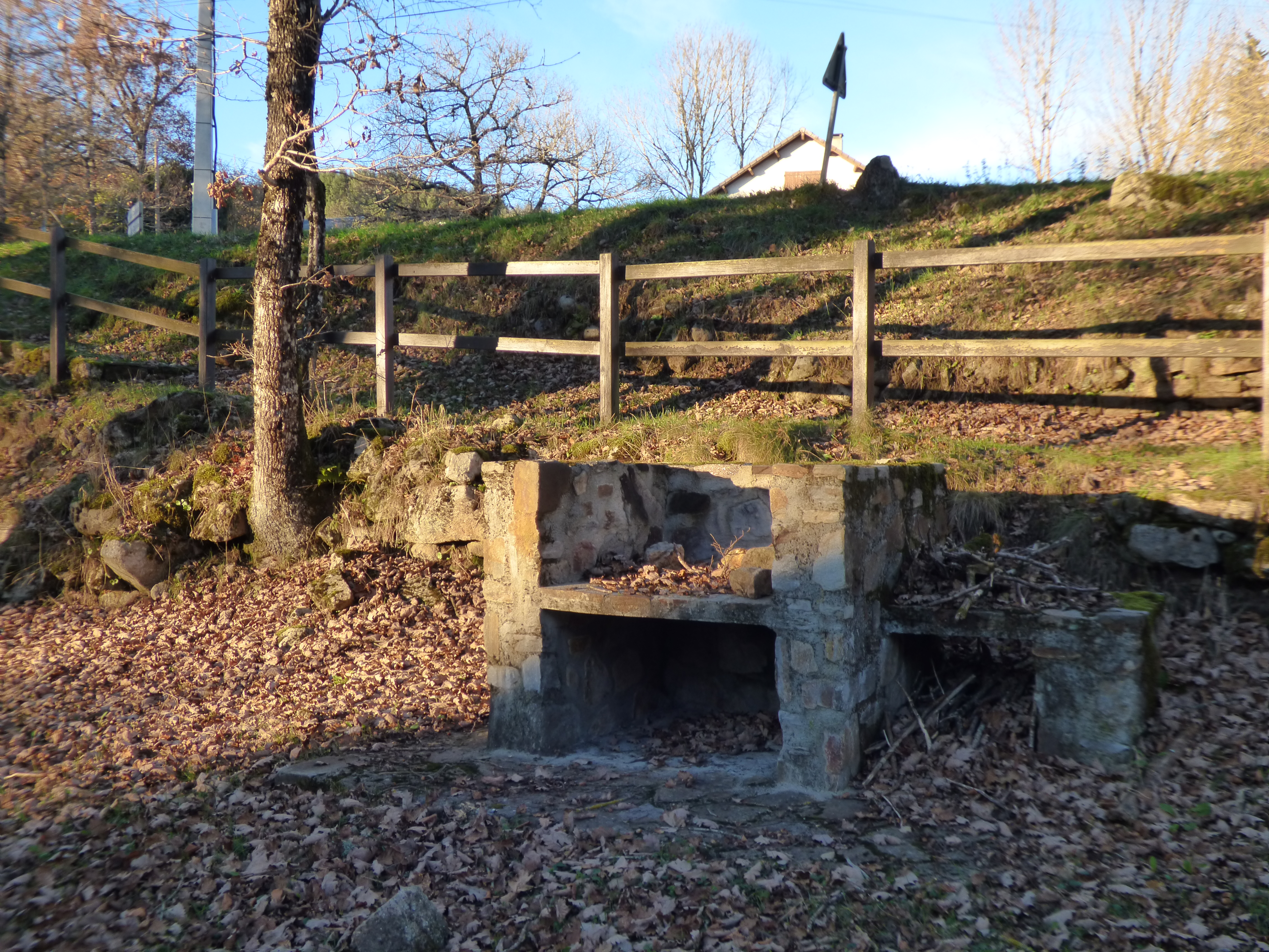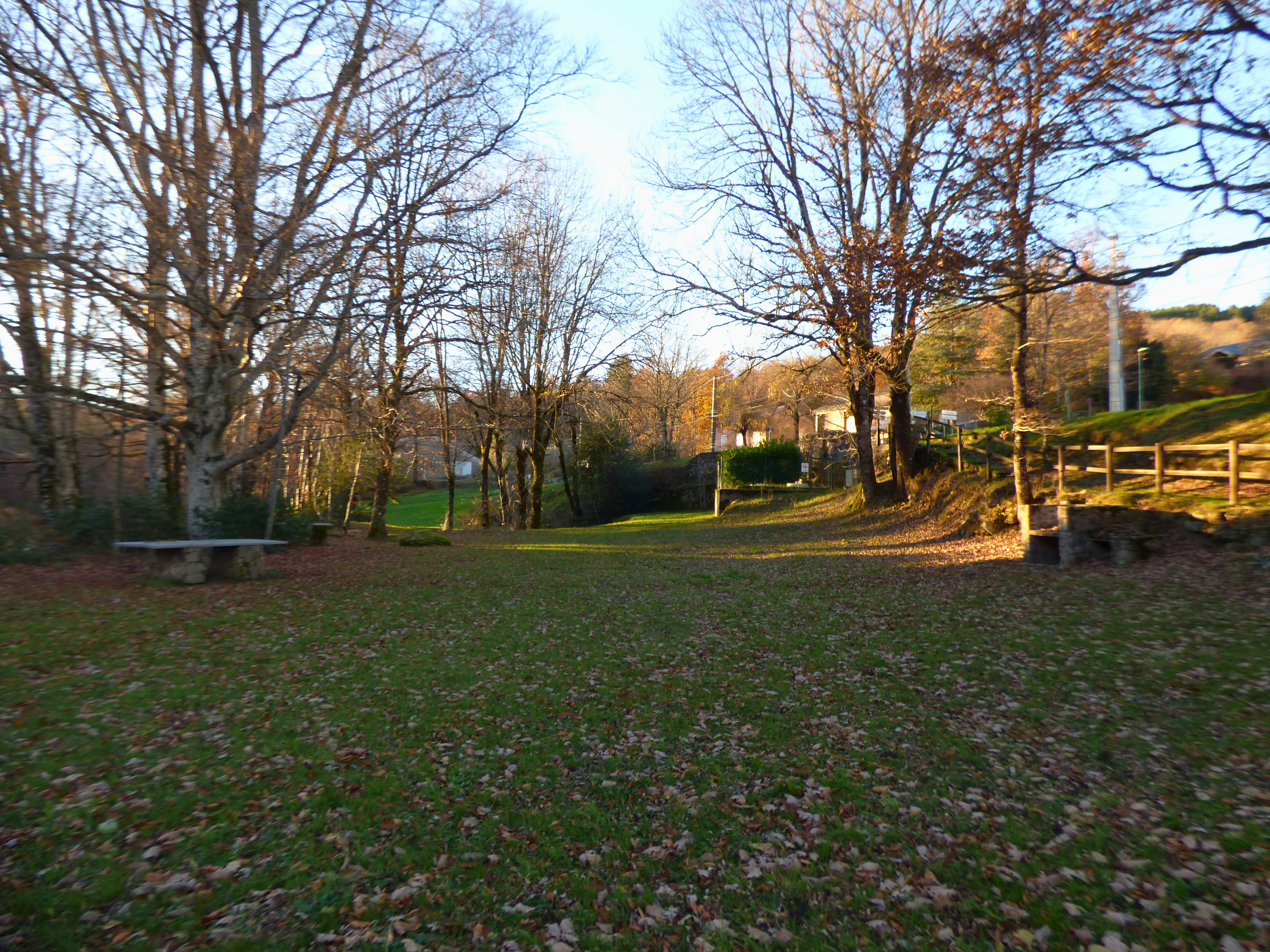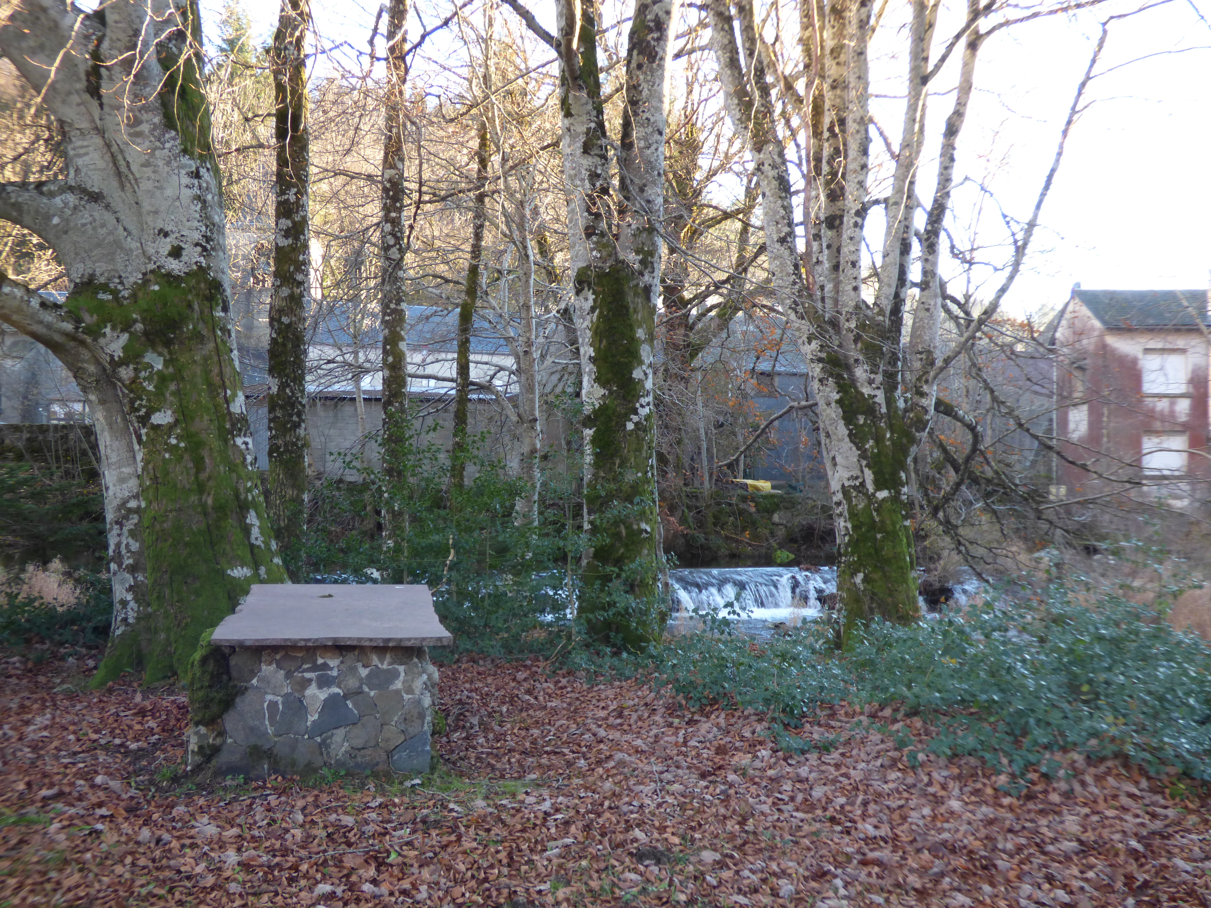 Idéal pour la pêche, vaste espace en bord de rivière équipé d'un barbecue et de tables en pierre. Parking sur l'autre rive, accessible par le pont.