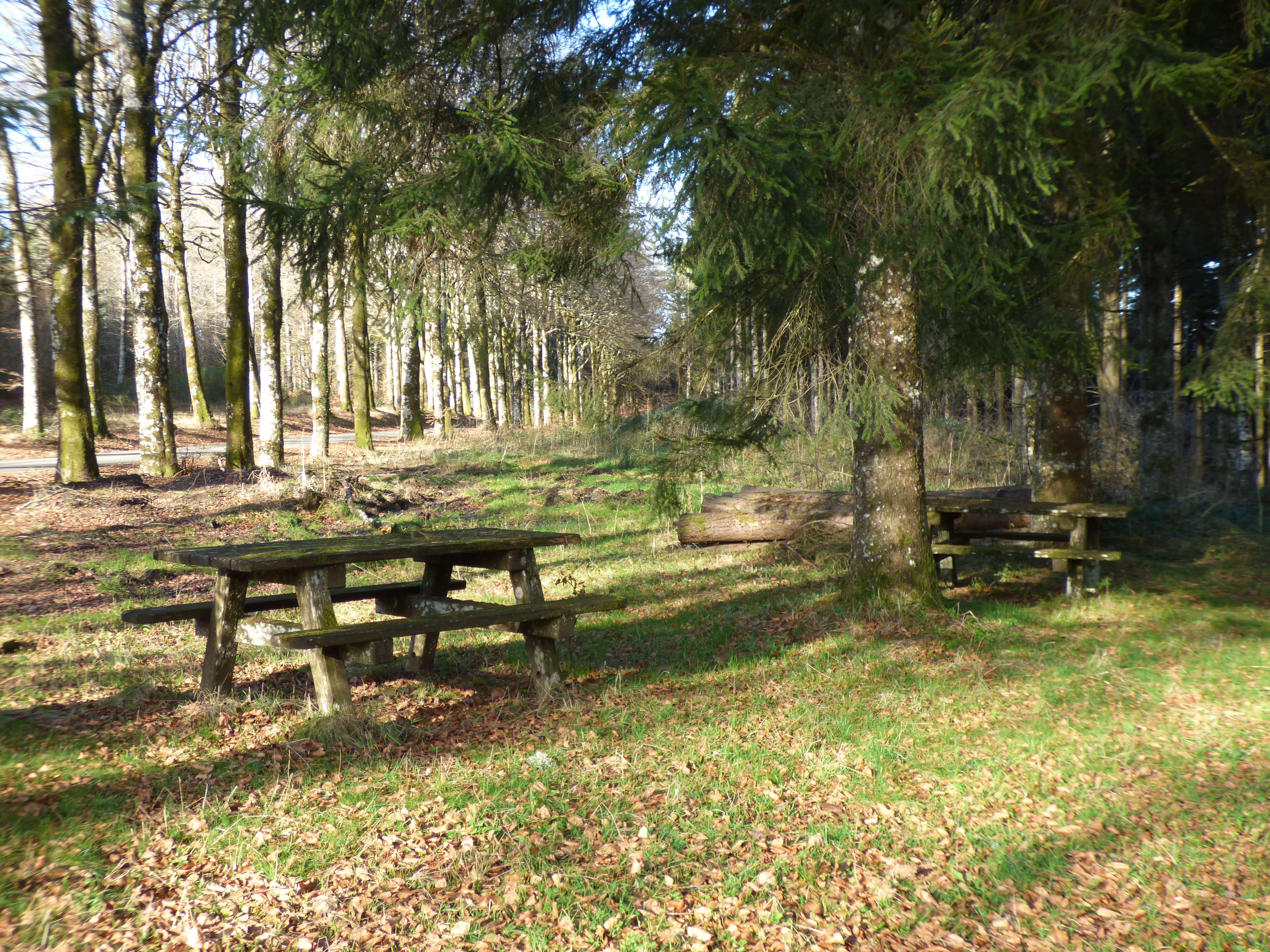 Petite aire ombragée en bord de route.