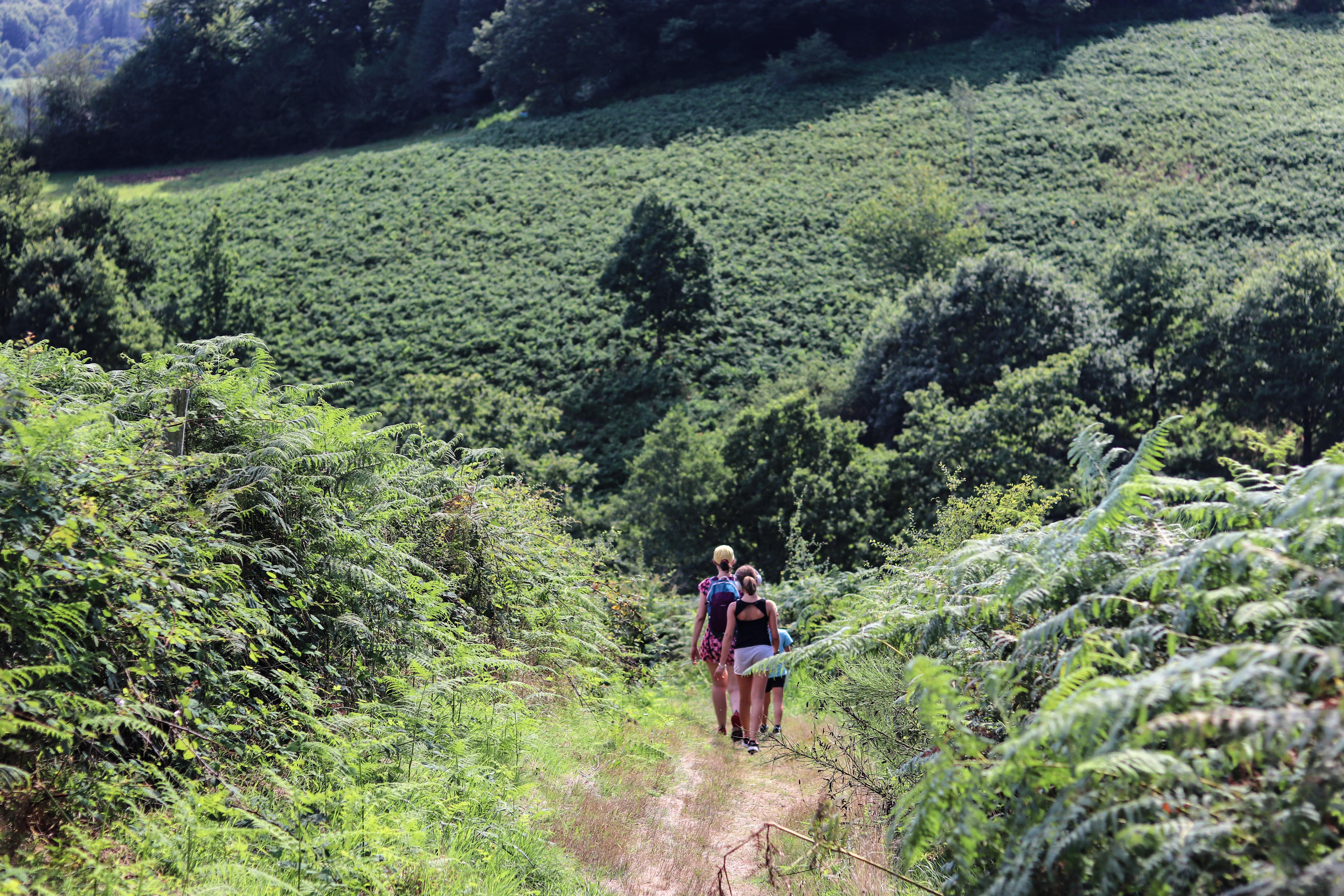Au carrefour de la Croix d'Imbert, emprunter le chemin qui monte à gauche. Rejoindre une petite route. La traverser et s'engager en face sur un sentier qui monte dans les fougères et les bruyères, puis en sous-bois.