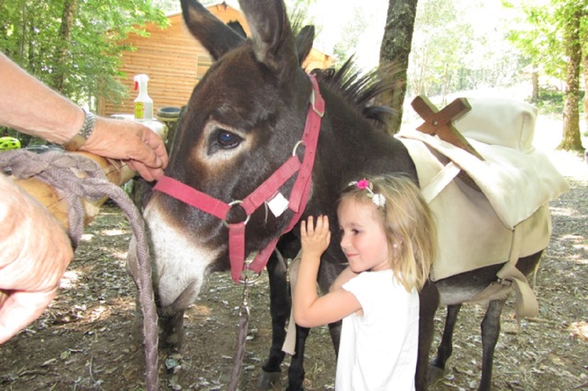 Balades à dos d'âne accompagnées pour les enfants sur le sentier de découverte de la Maison de Payrac.