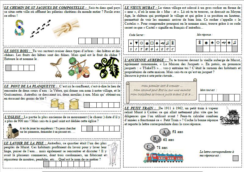 Jeu de piste à réaliser en famille pour découvrir, toute en s'amusant, l'histoire et les monuments de Murat-sur-Vèbre.
