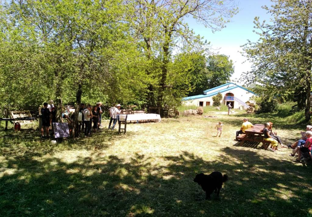 Sous les grands hêtres, la Table d'Accueil Paysan à base des produits de la ferme ou des fermes voisines.