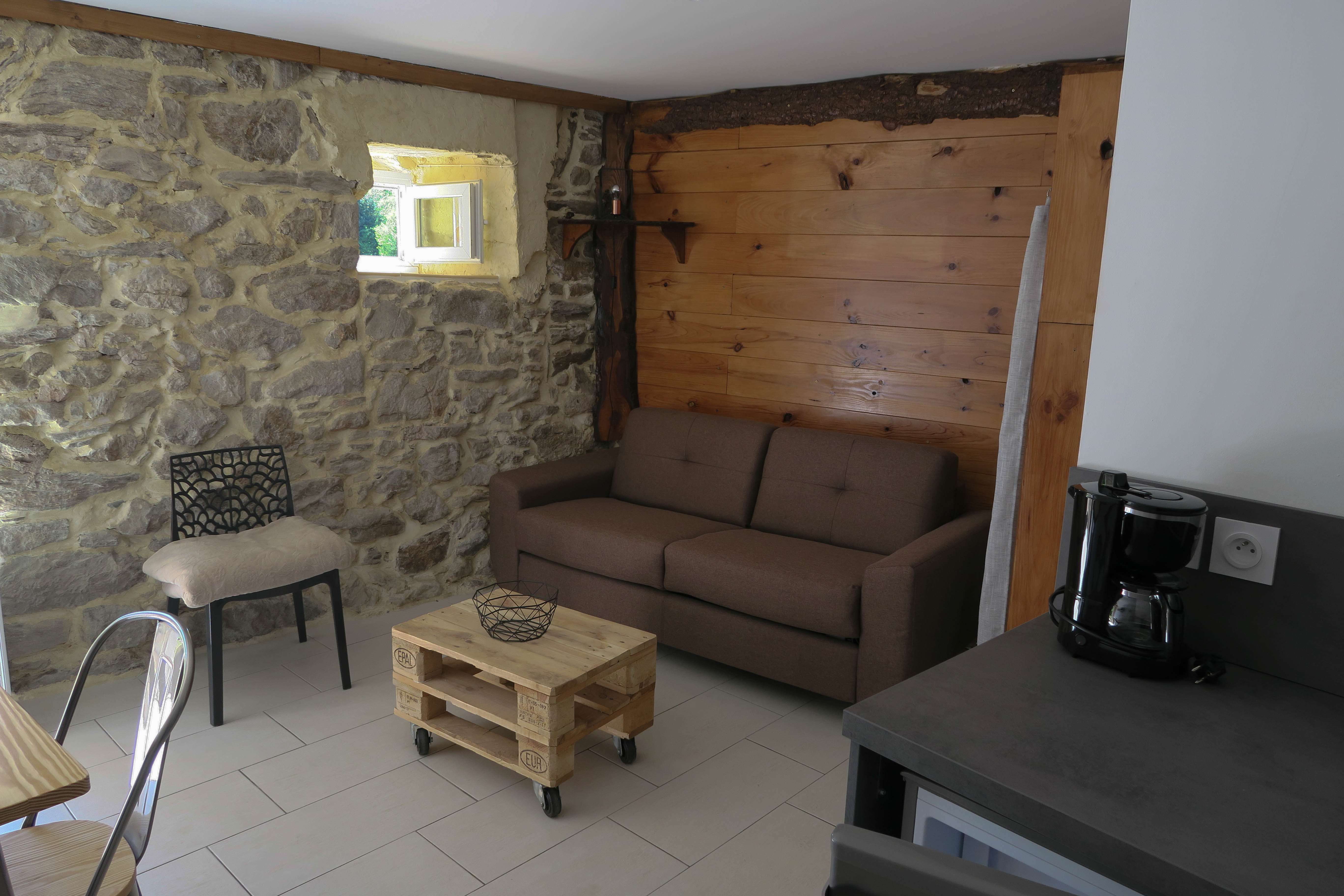 Un studio dans une ancienne bergerie entièrement rénovée en deux gîtes mitoyens. (Avec un T2.)