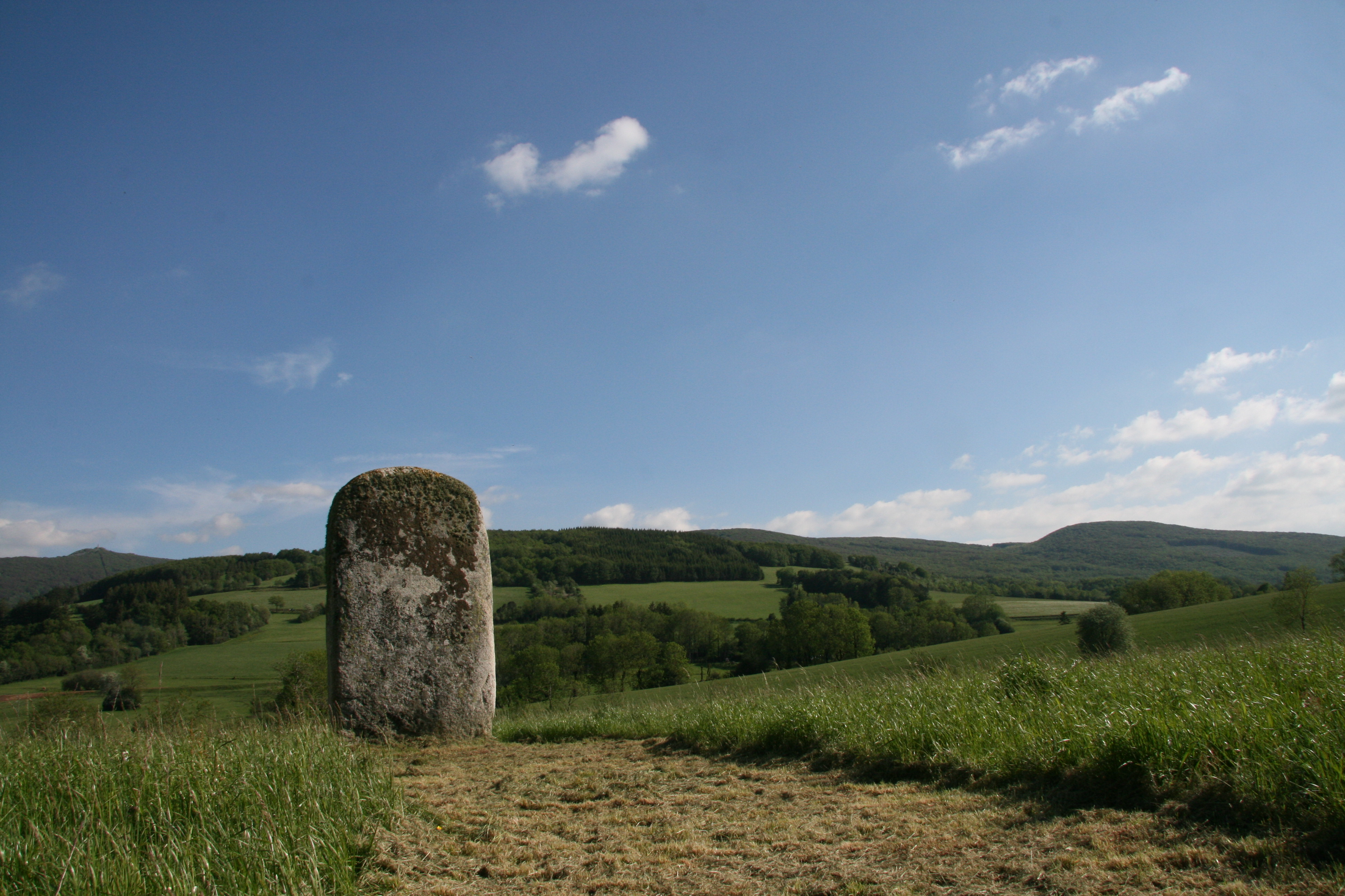 A voir : La Pierre Plantée (Statue-menhir masculine en granit local classée aux Monuments Historiques : c’est l’une des plus imposantes d’Europe avec 3,50 m hors sol et 4,50 m en totalité pour 9 tonnes).
