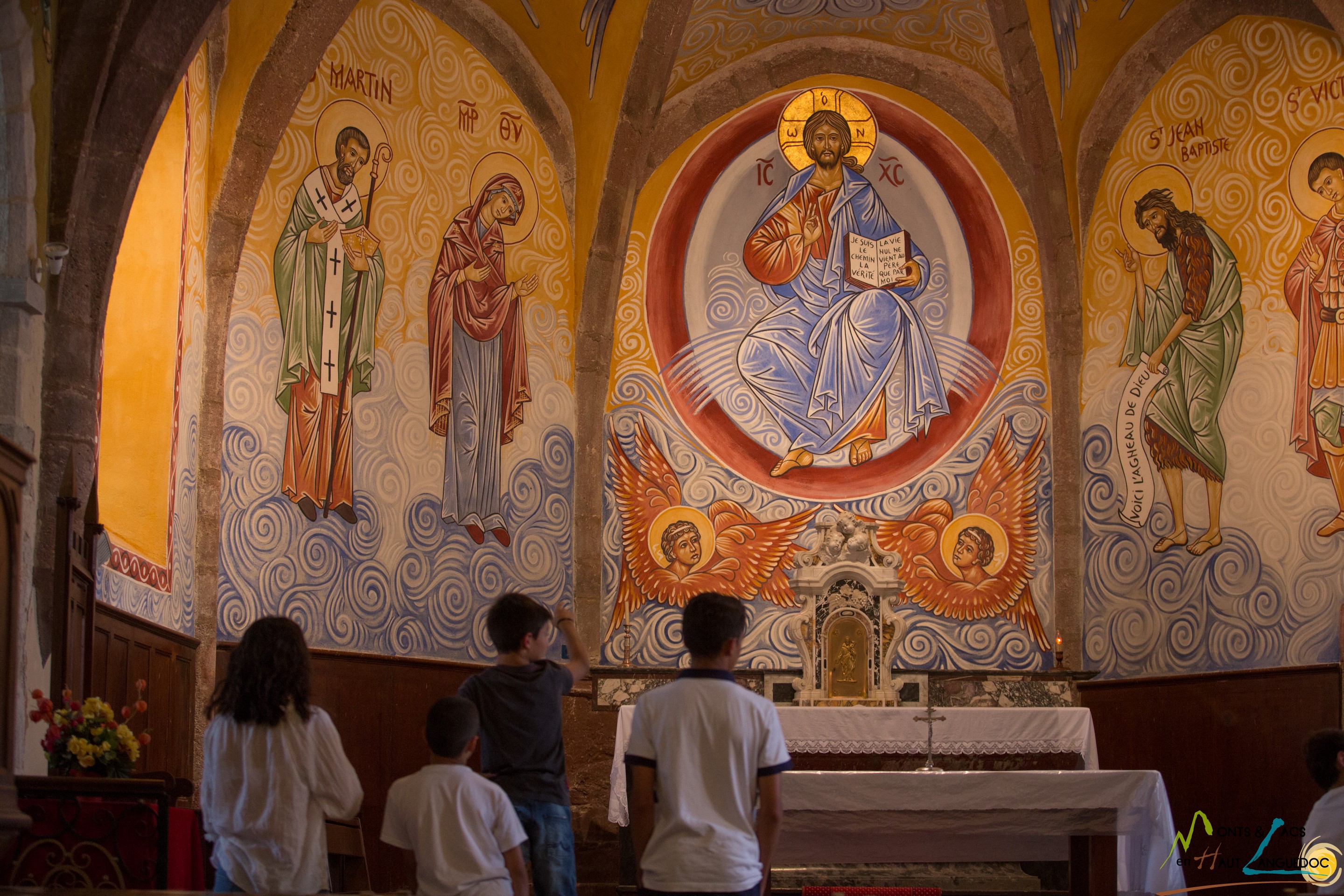 A voir : Nages (l’église et ses fresques colorées de Mickael Greschny, pont en pierre sur le Viau, croix de Pontis, bassin de fountaïnous).