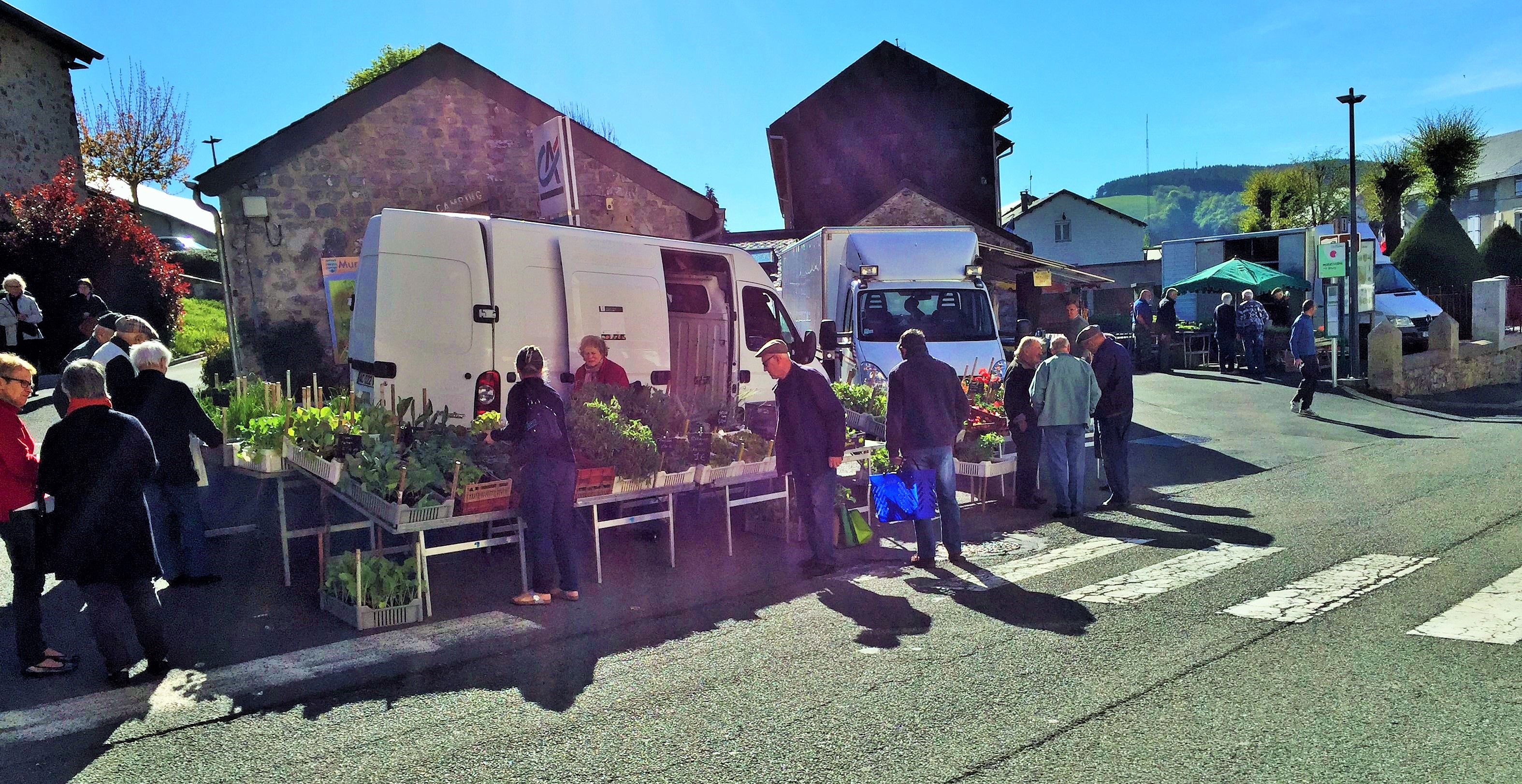 Produits du terroir, plants et fleurs au printemps et vêtements en saison... prenez le temps de flâner sur le marché mensuel de Murat!