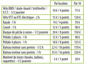 Tarif unique : de 3 à 38 € (selon le matériel loué).