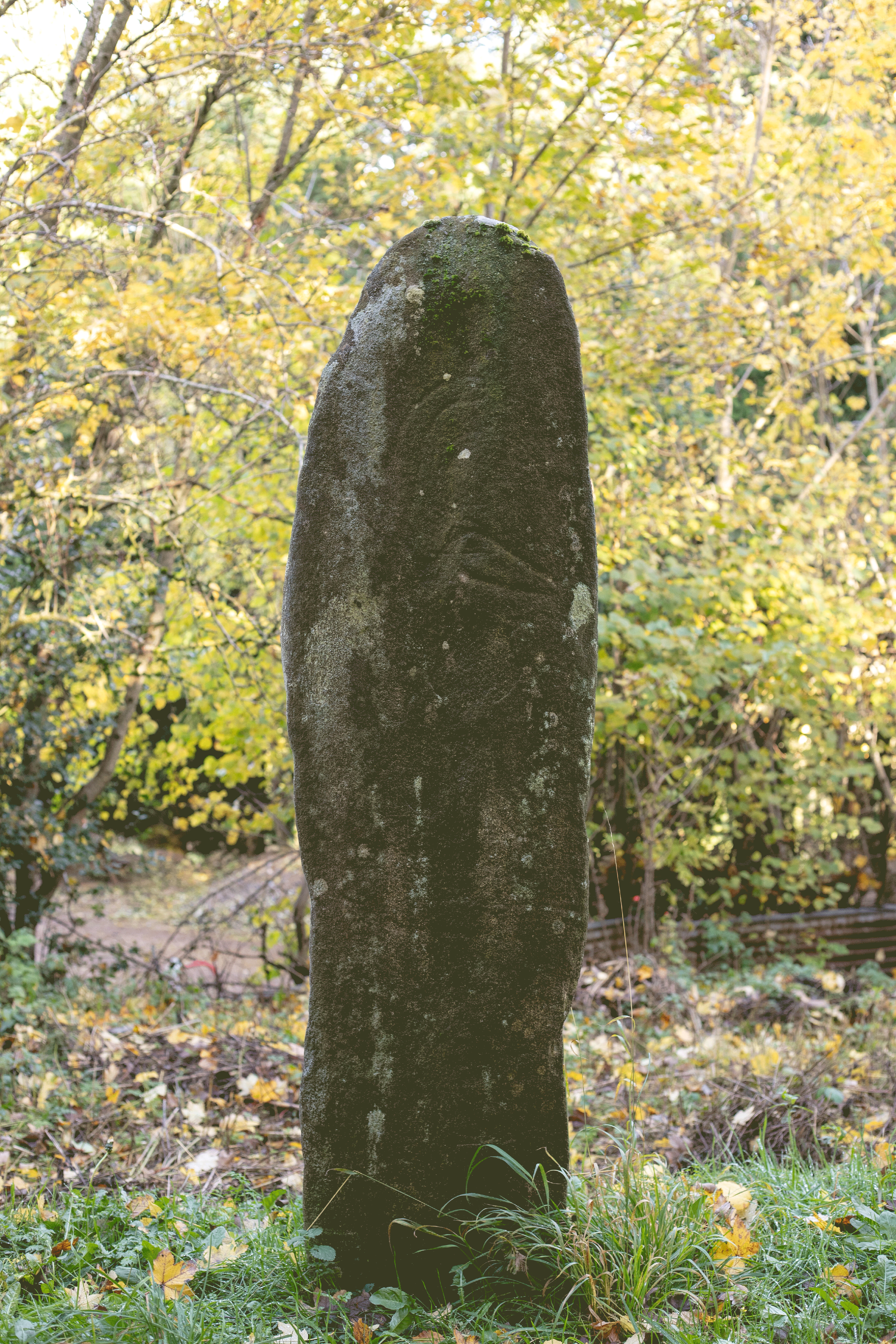 Haute de 2,66 m, la statue-menhir de Cantoul intrigue par sa forme élancée et ses gravures rares : visage, crosse-hache, poignard… Un témoin préhistorique plein de mystère.