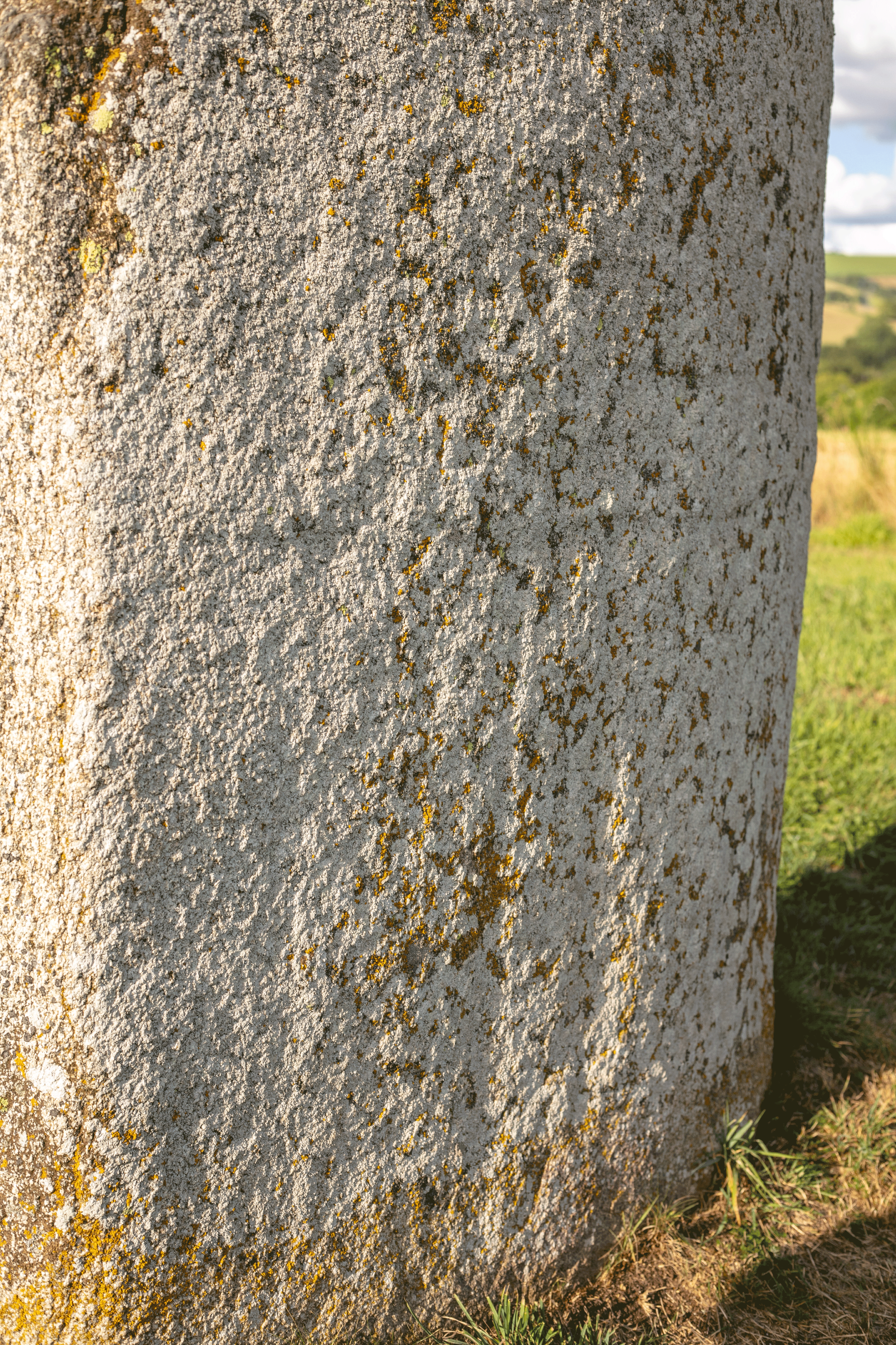 Taillée dans le granite local, cette figure masculine remonte à plusieurs millénaires et s’inscrit dans la tradition mégalithique du groupe saintponien. Autrefois richement ornée, elle conserve encore des traces emblématiques : ceinture, jambes disjointes et d’autres détails qui se devinent malgré l’érosion. Pour mieux en distinguer les attributs, le secret est de se placer de l’autre côté du monolithe, dos tourné vers le Pic du Montalet.