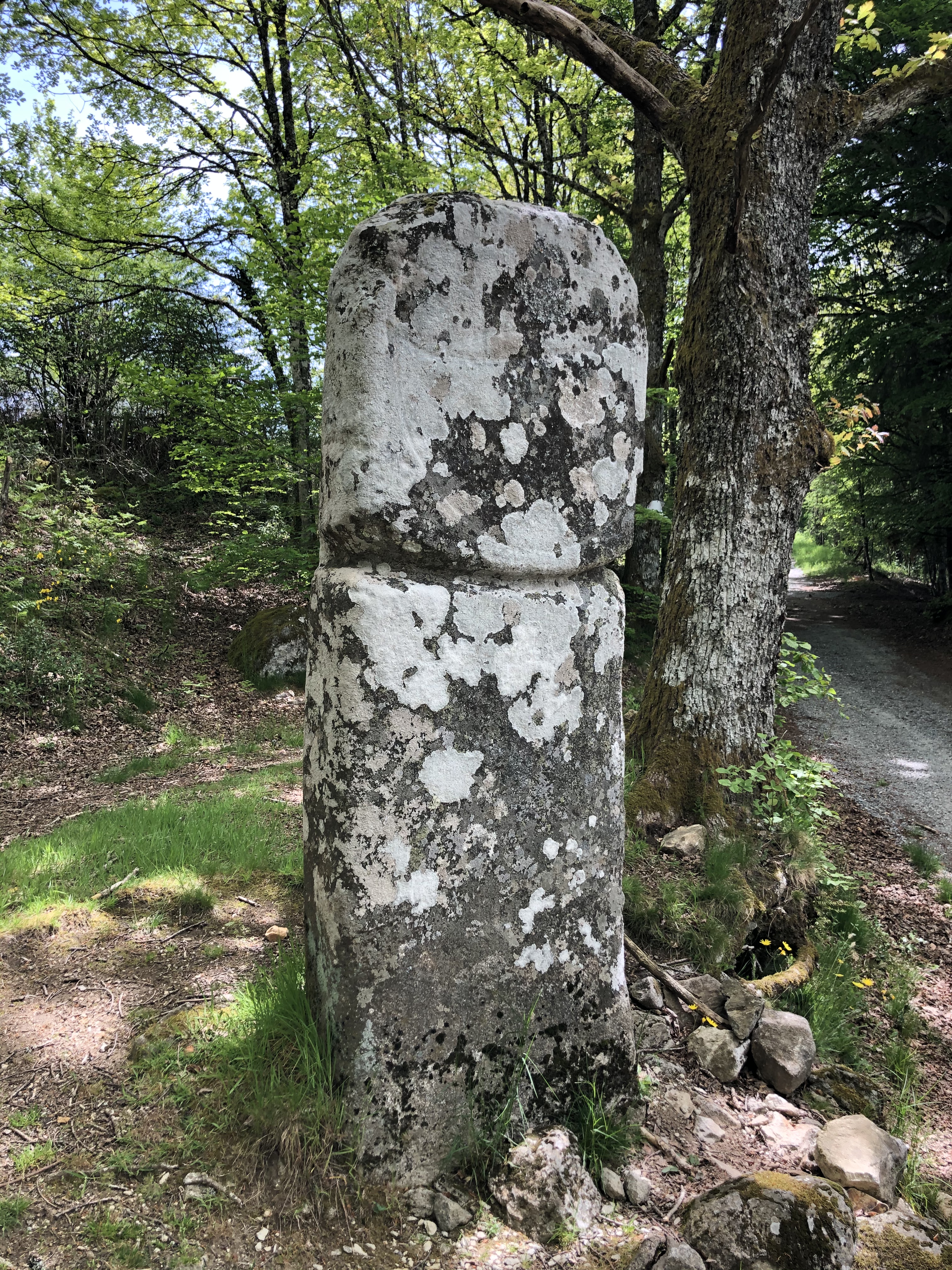 À Picarel le Haut, une mystérieuse statue-menhir de gneiss se dresse au bord d’un chemin forestier : étonnante relique du Néolithique à découvrir en balade ou le long du sentier Prévert.
