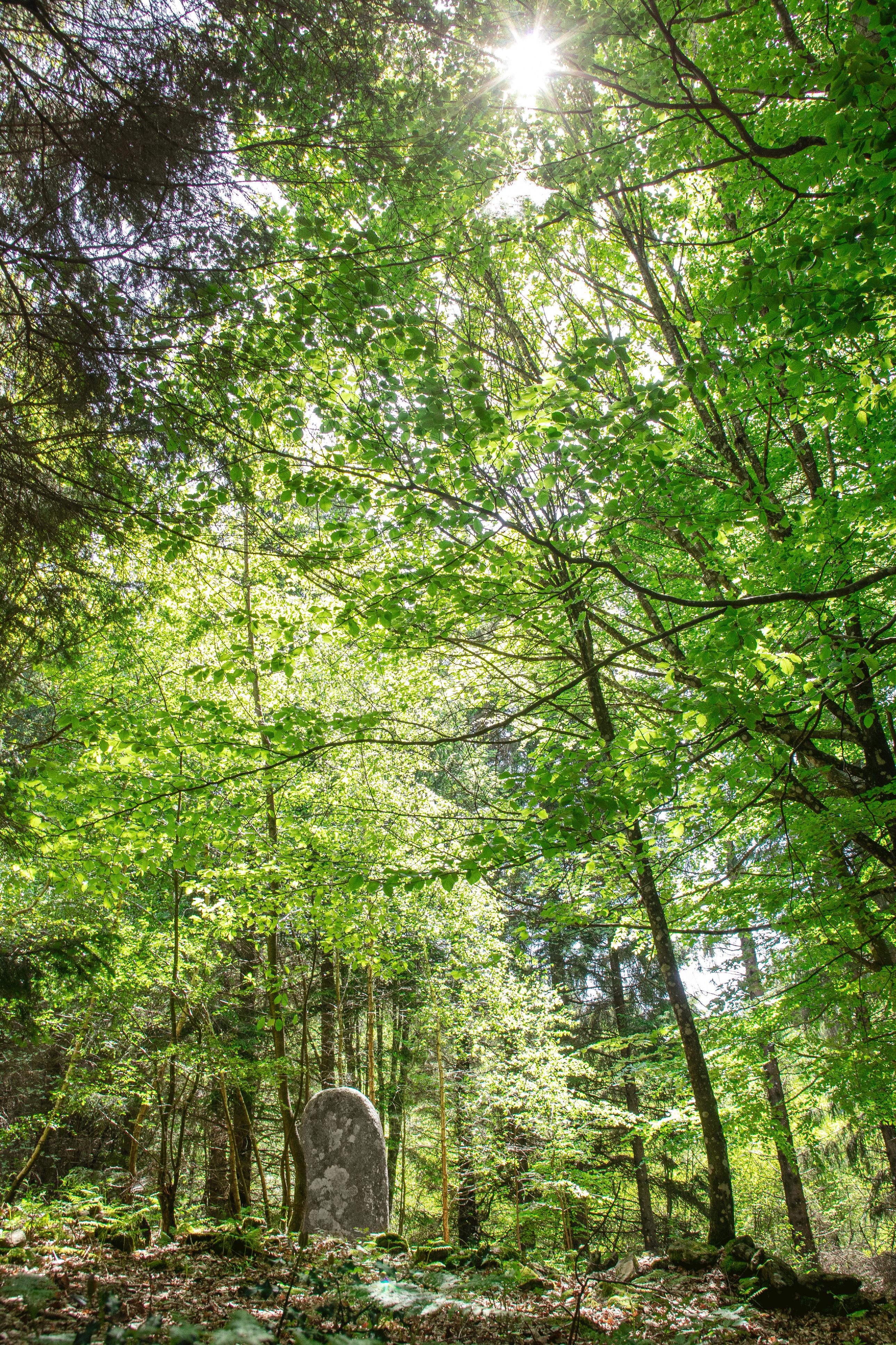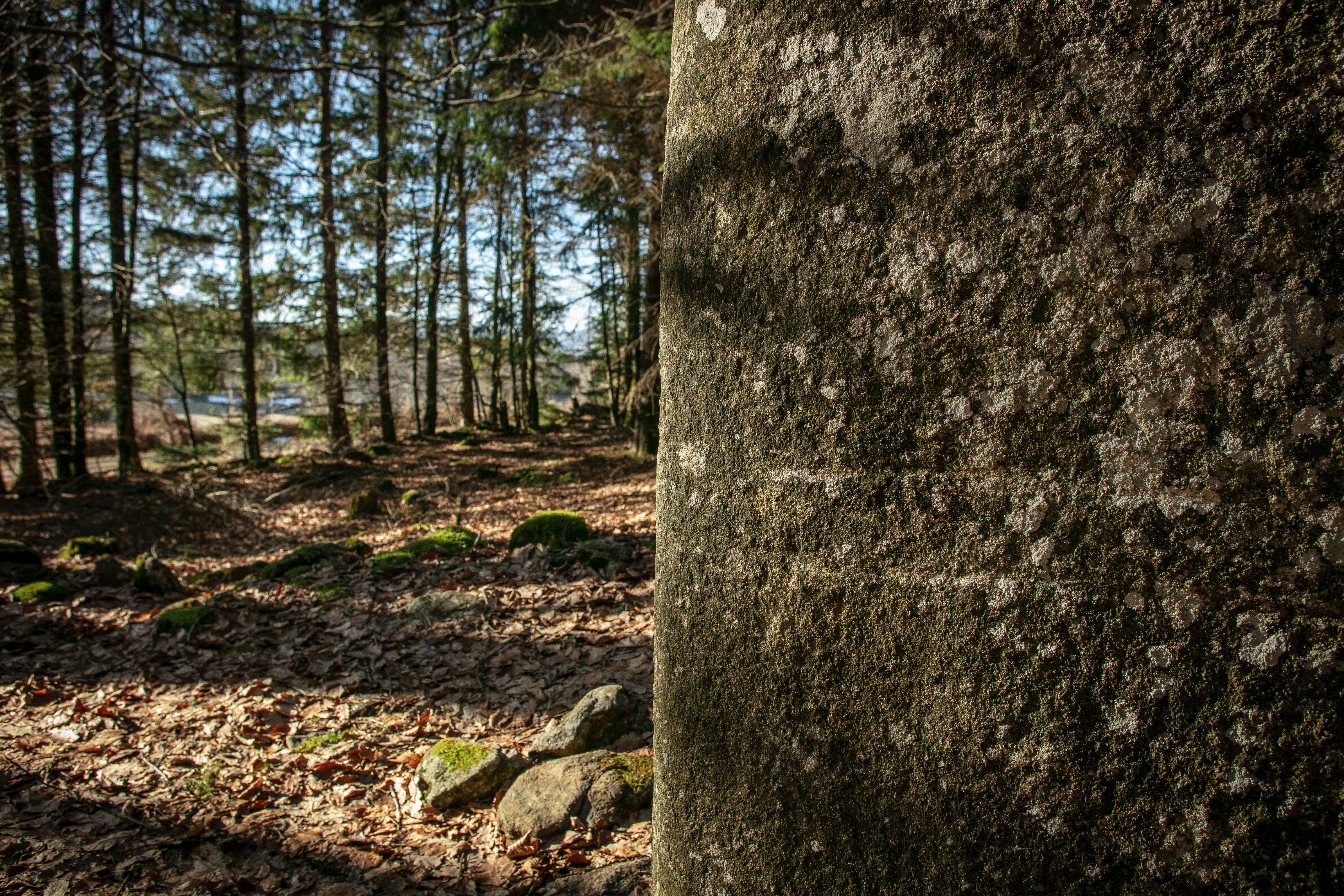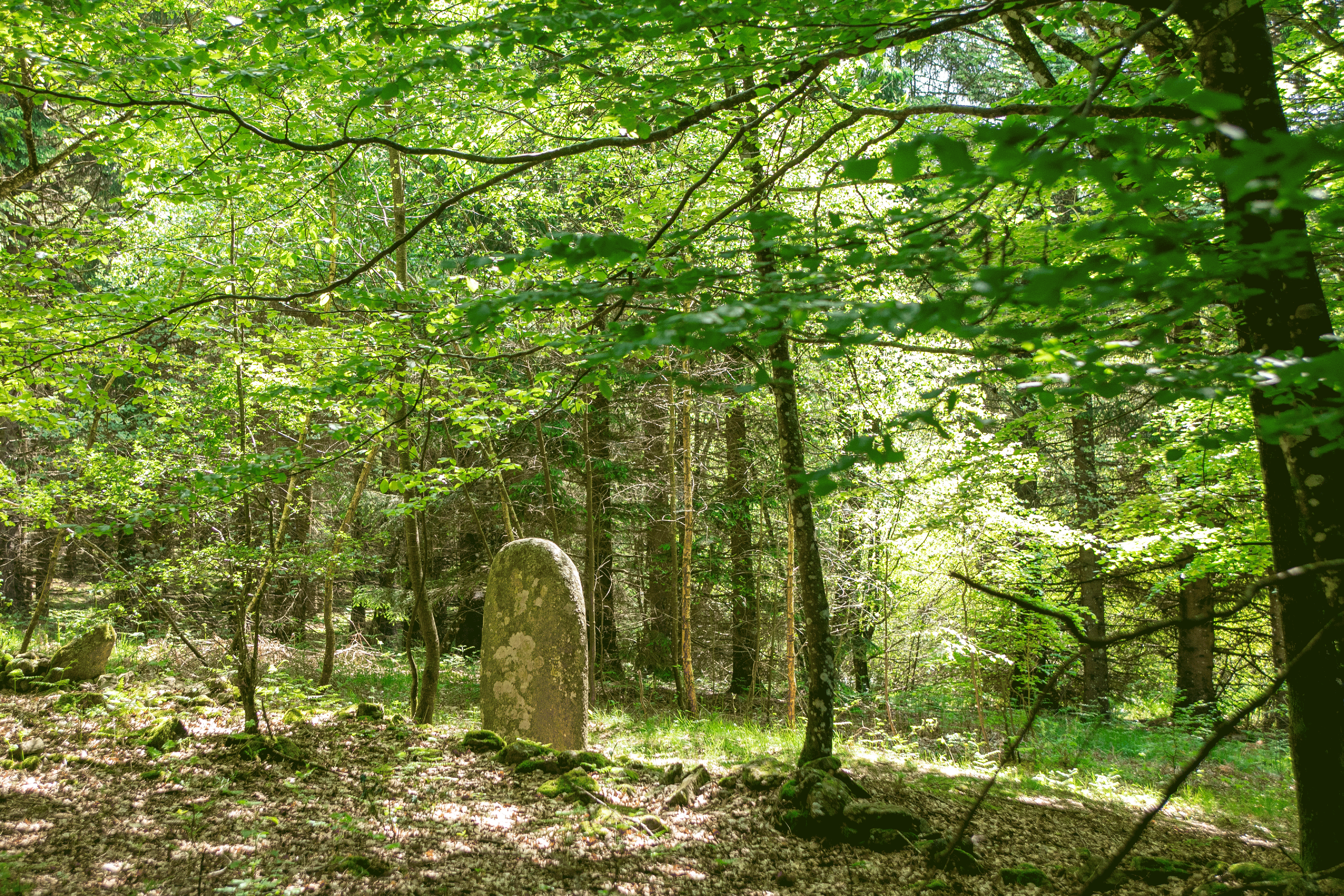 Dominant la vallée de la Vèbre depuis la lande de Naujac, la statue-menhir du Triby, aussi appelée Fabie, est un fier représentant masculin de la statuaire mégalithique régionale.
