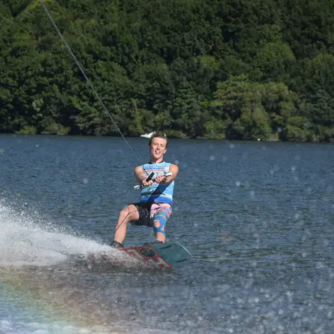 Le wakeboard est un sport nautique où une personne glisse sur l’eau debout sur une planche, tout en étant tirée par un bateau.
