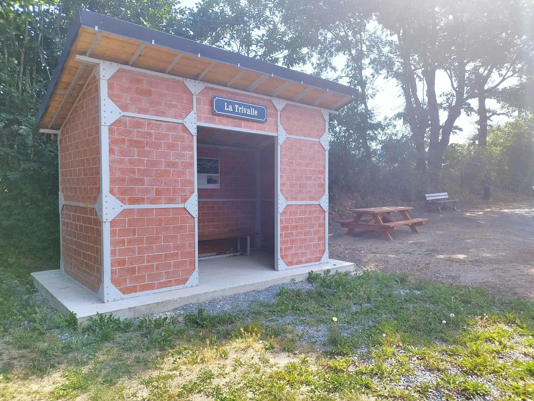 Nestled in La Trivalle, this charming spot offers a peaceful break beneath the trees. In the renovated former train halt, an information panel whispers the story of the “Petit Train”… waiting to be discovered.