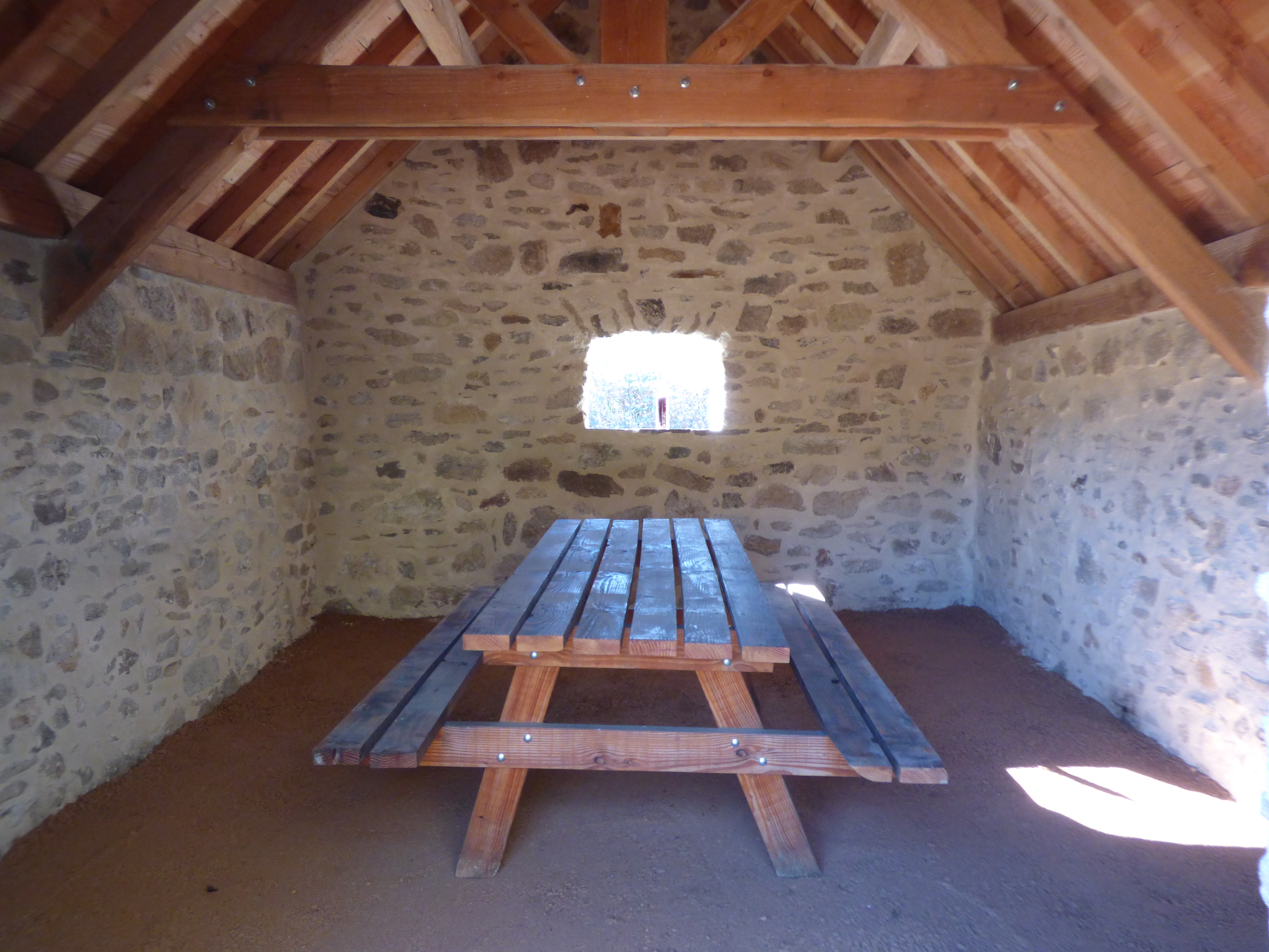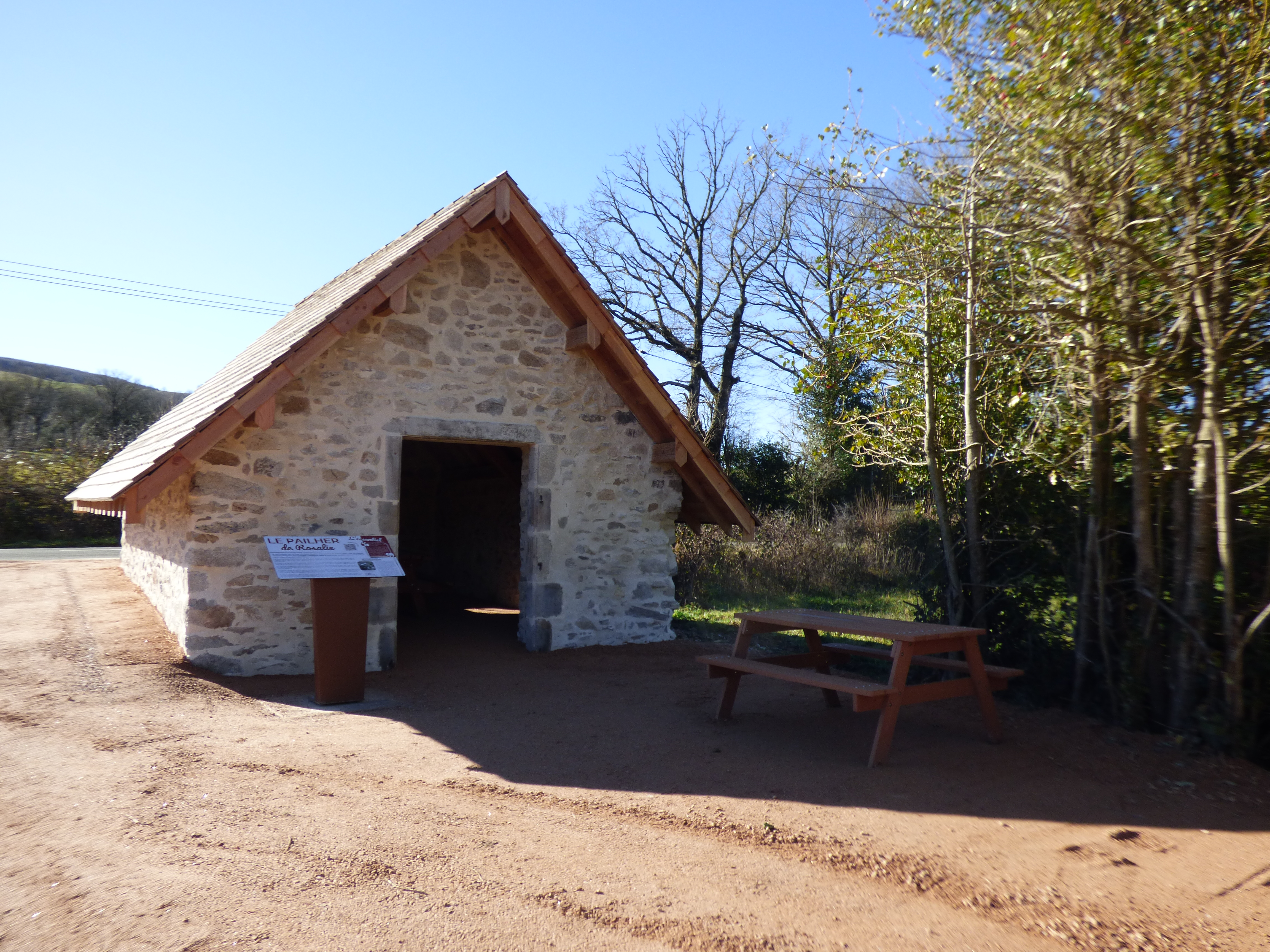 Sheltered by a recently restored pailher, this picnic area is equipped with two tables and a parking area.