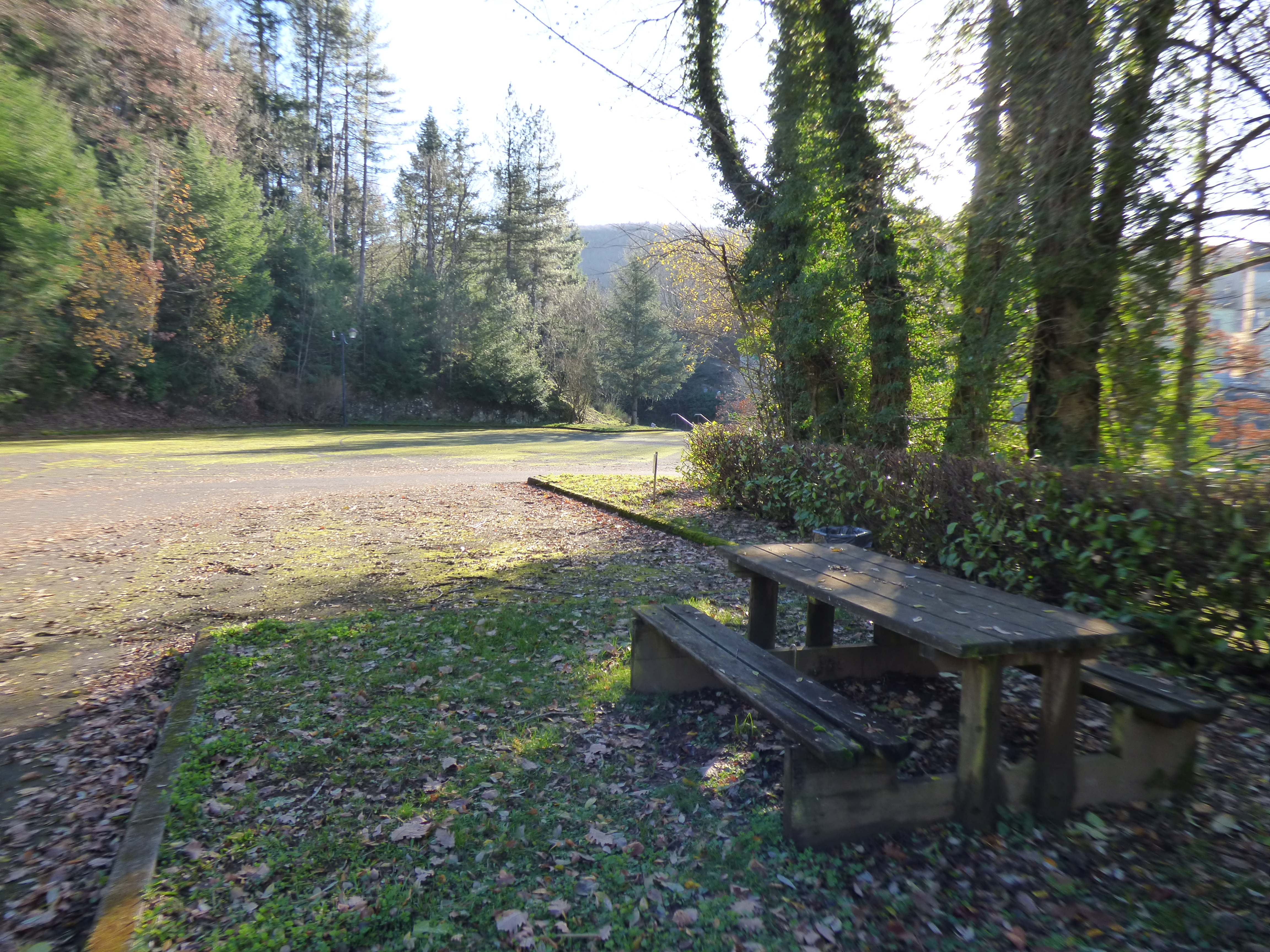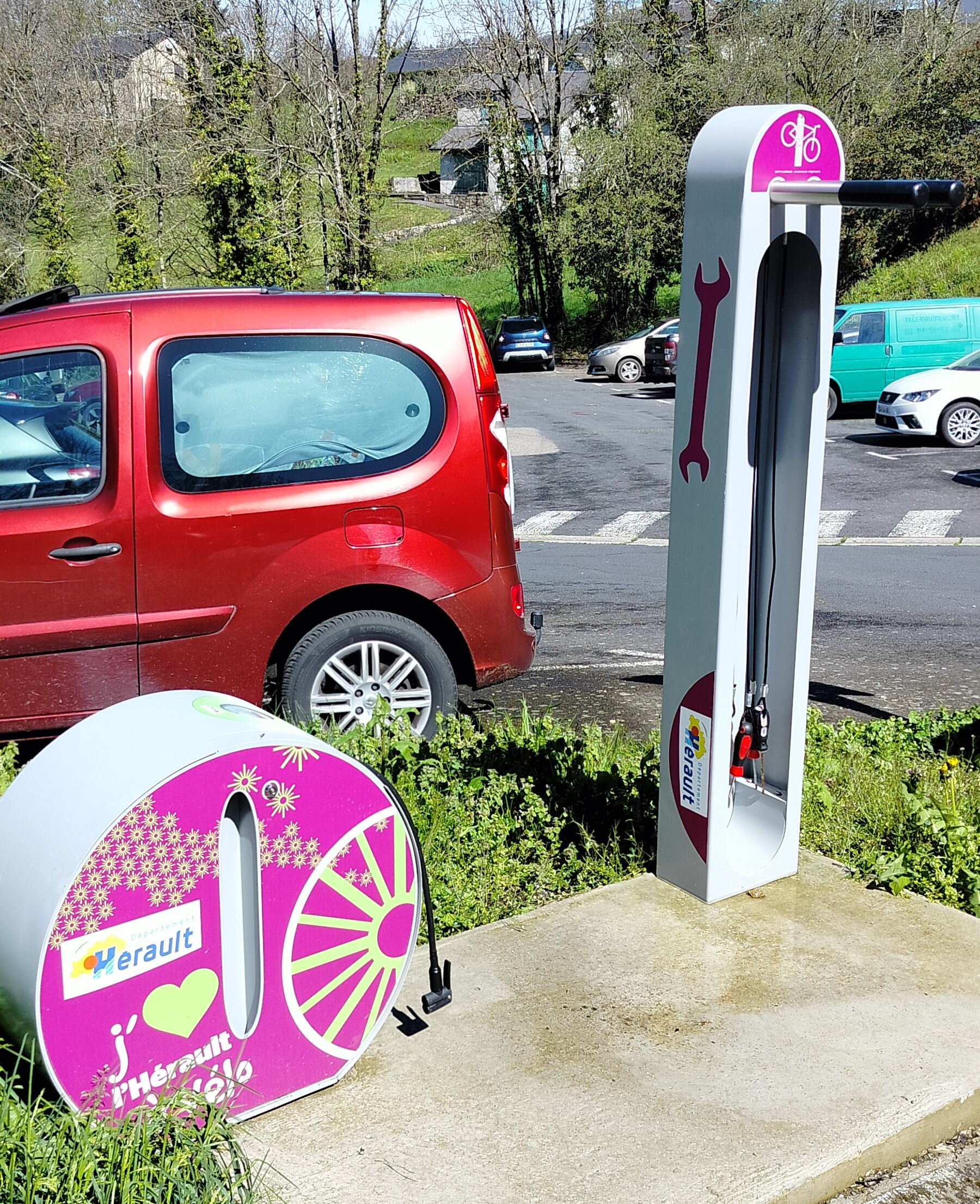 Small shaded area located on a car park. Bicycle repair kit available nearby.