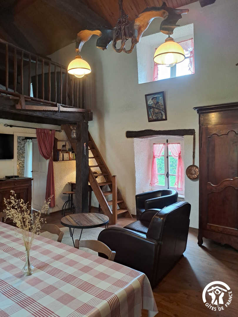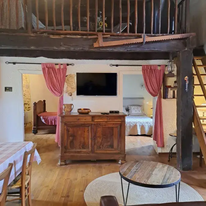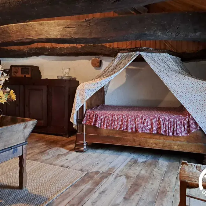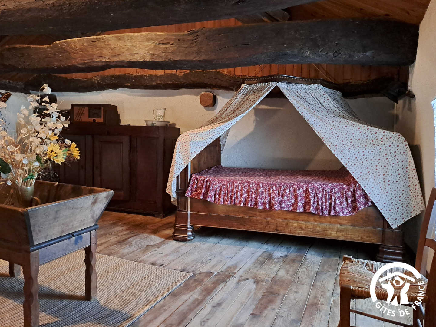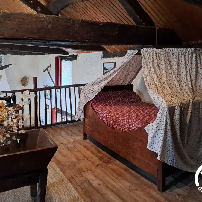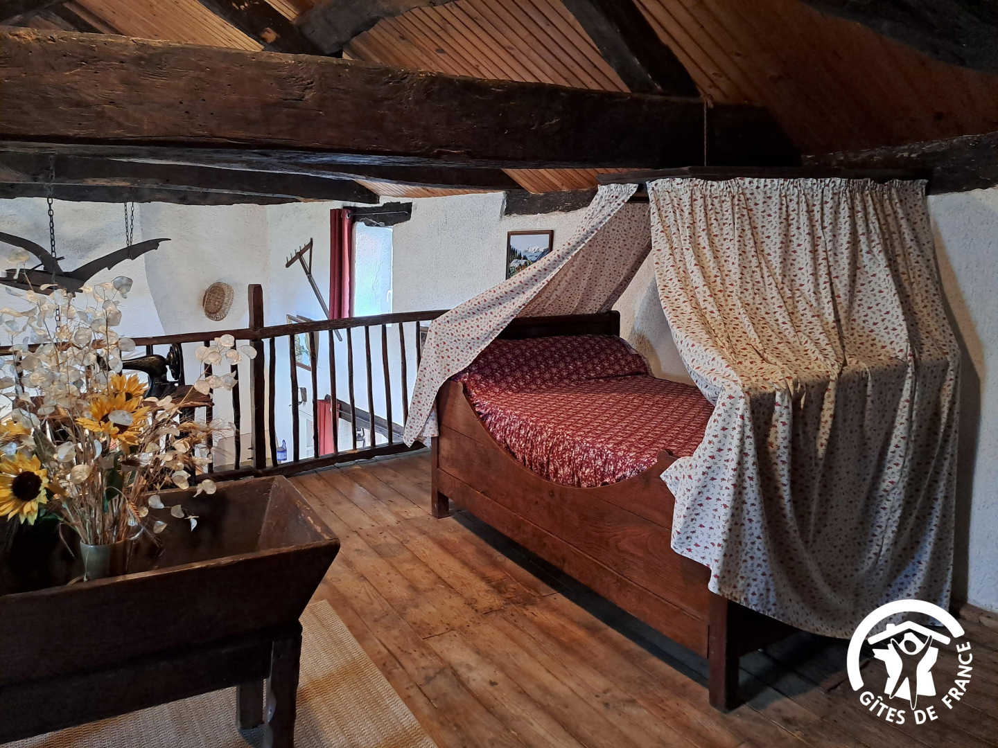 Upstairs, a charming mezzanine with an old-fashioned style has a 110x180 bed with a canopy.
