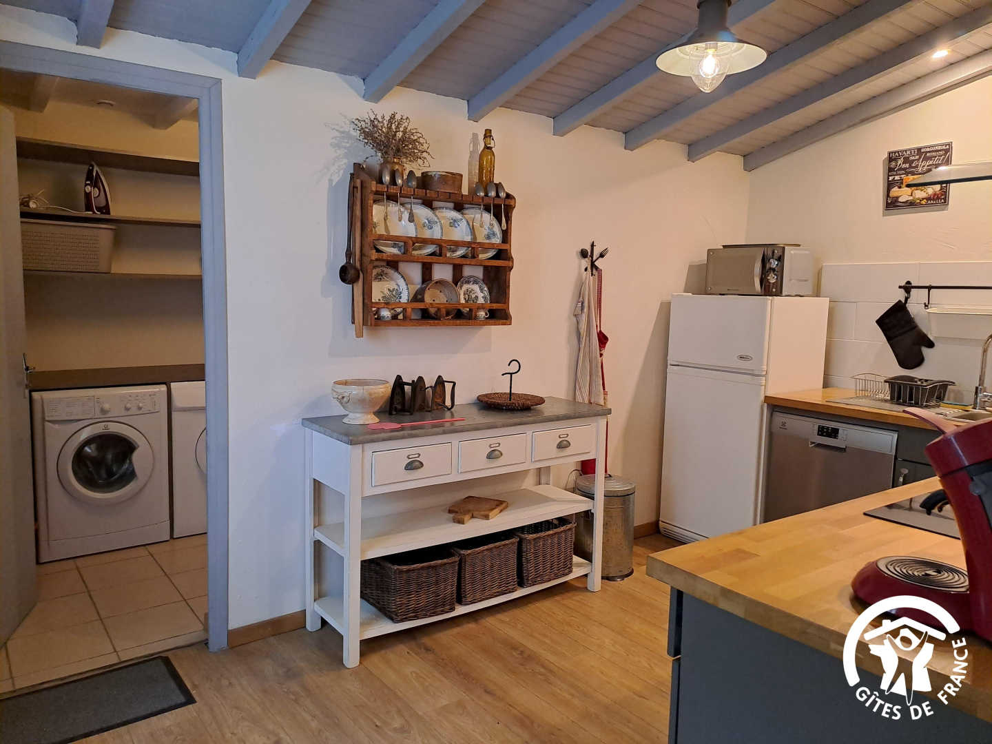 The fully equipped kitchen offers everything needed to prepare homemade meals, which can be enjoyed in the dining room or on the terrace.