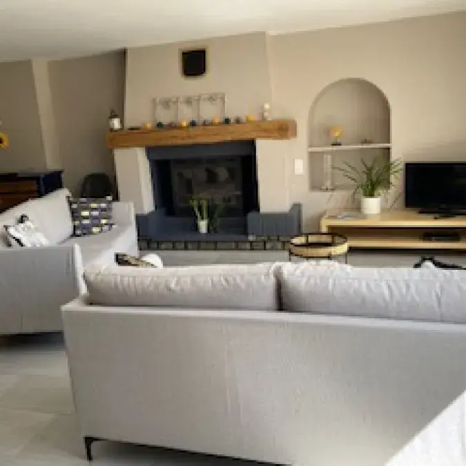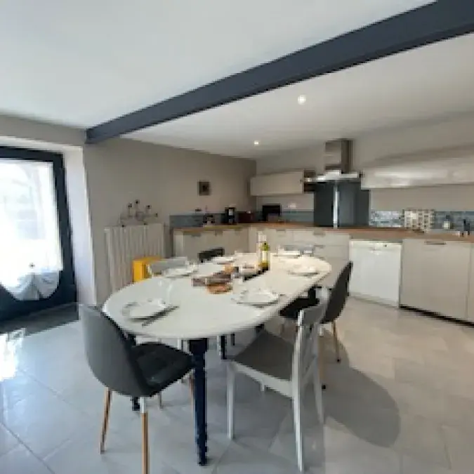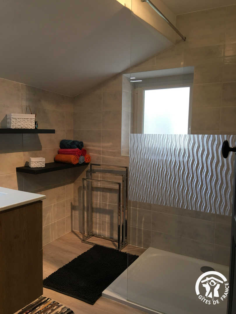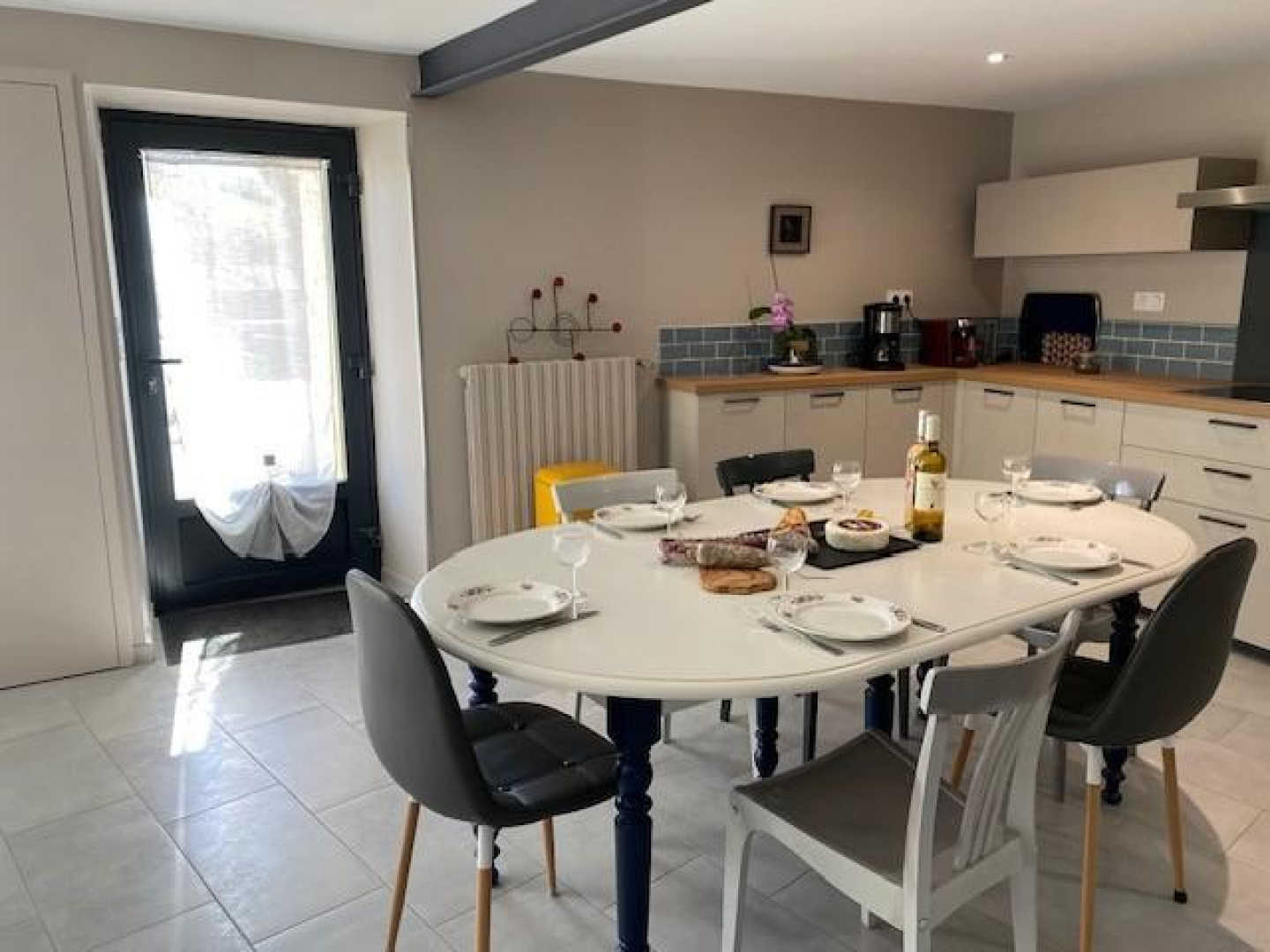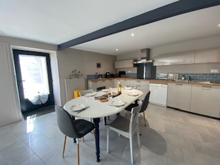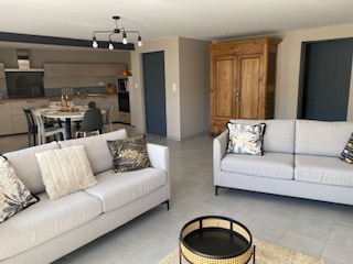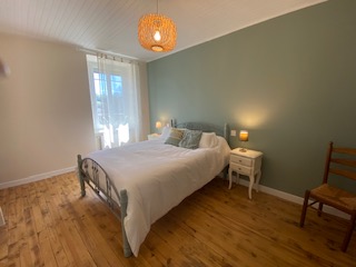 Semi-detached house recently refurbished into cosy, bright living spaces. Located on the upper floor. Outdoor stairs next to the parking take you directly into the dining room–kitchen. Well equipped: fridge-freezer, filter and Nespresso coffee makers, blender, food processor, pressure cooker, raclette grill, toaster, kettle…