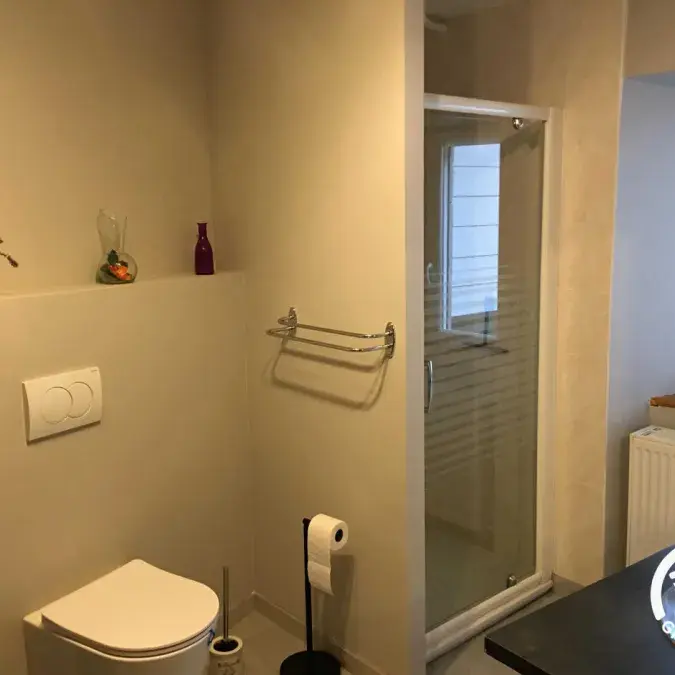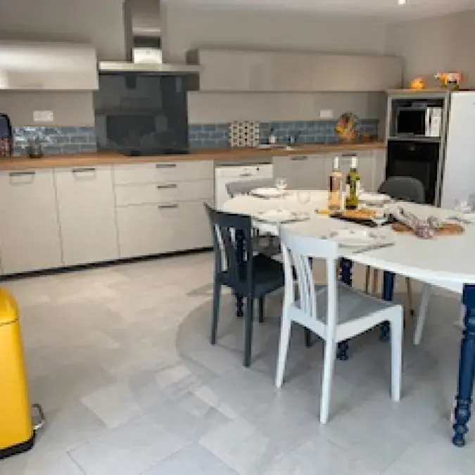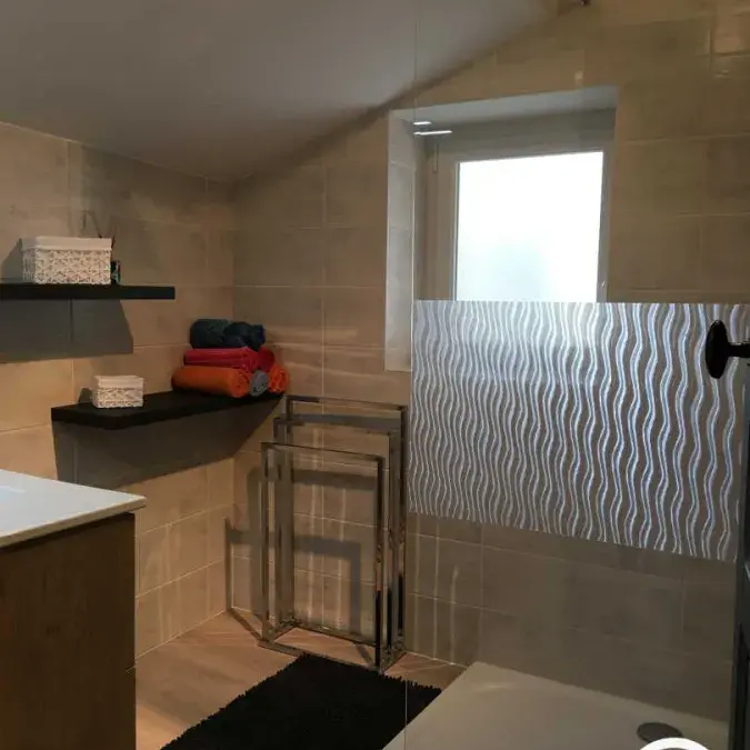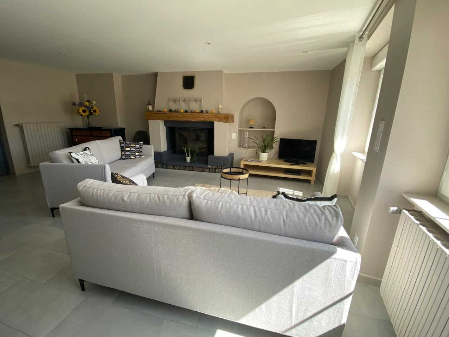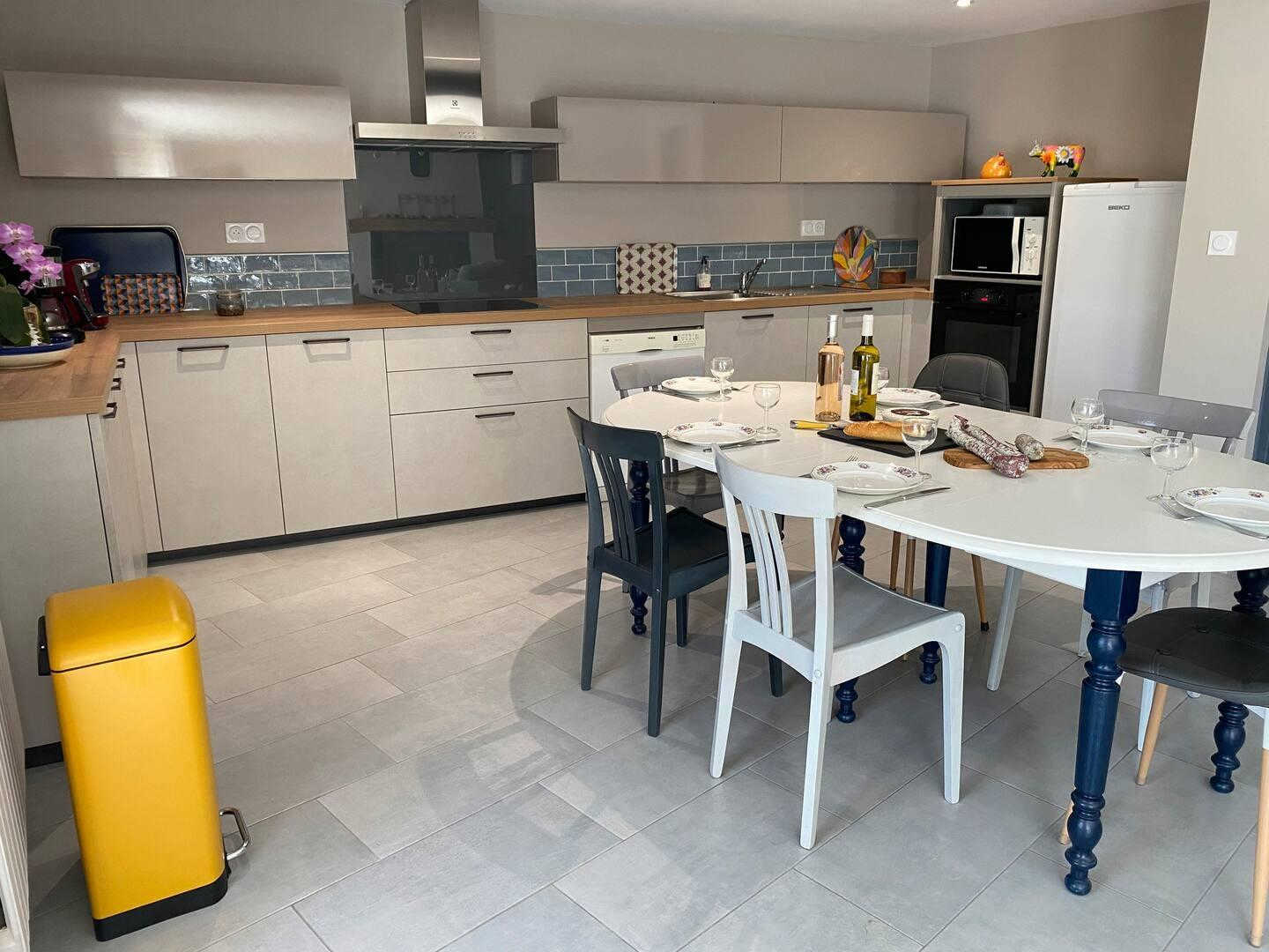 Semi-detached house recently refurbished into cosy, bright living spaces. Located on the upper floor. Outdoor stairs next to the parking take you directly into the dining room–kitchen. Well equipped: fridge-freezer, filter and Nespresso coffee makers, blender, food processor, pressure cooker, raclette grill, toaster, kettle…