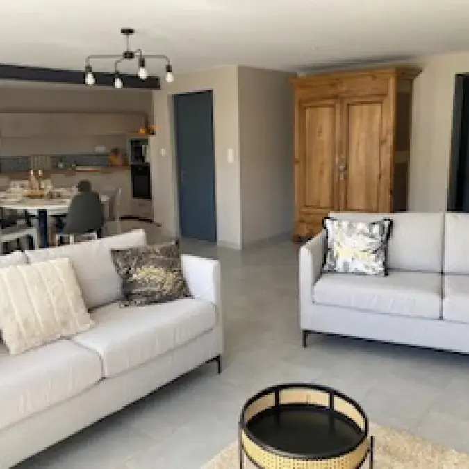 The decoration combines warmth and modernity, with preserved wooden elements such as parquet. Some furniture has been lovingly restored for a contemporary touch.