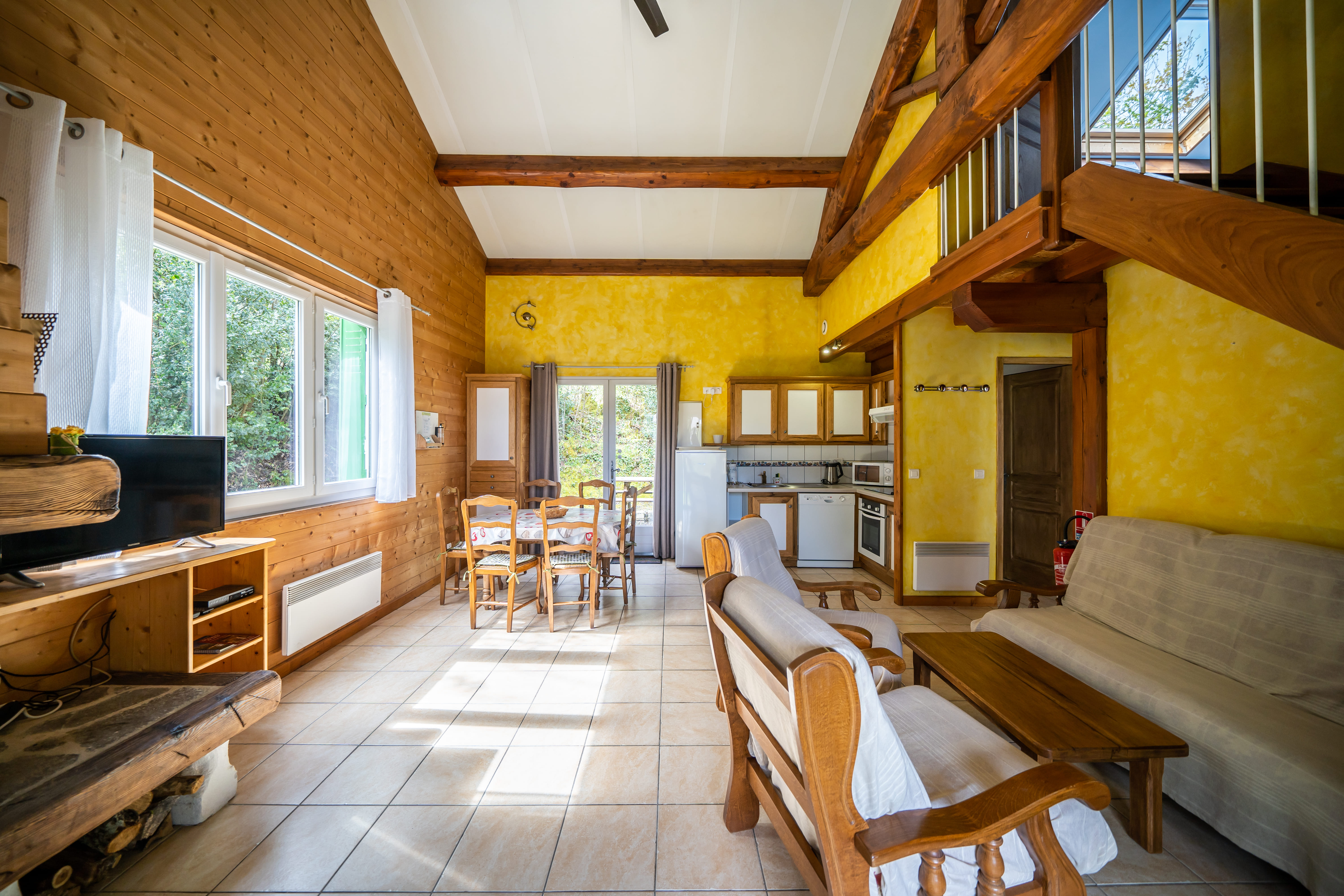 On the 5-hectare estate, you can enjoy free access to a pool area, a playground with swings, slide, pétanque court and table tennis. A discovery trail is on site, and 3 donkeys are waiting to accompany you on your walks. All gîtes have a private outdoor space with a terrace overlooking the forest.