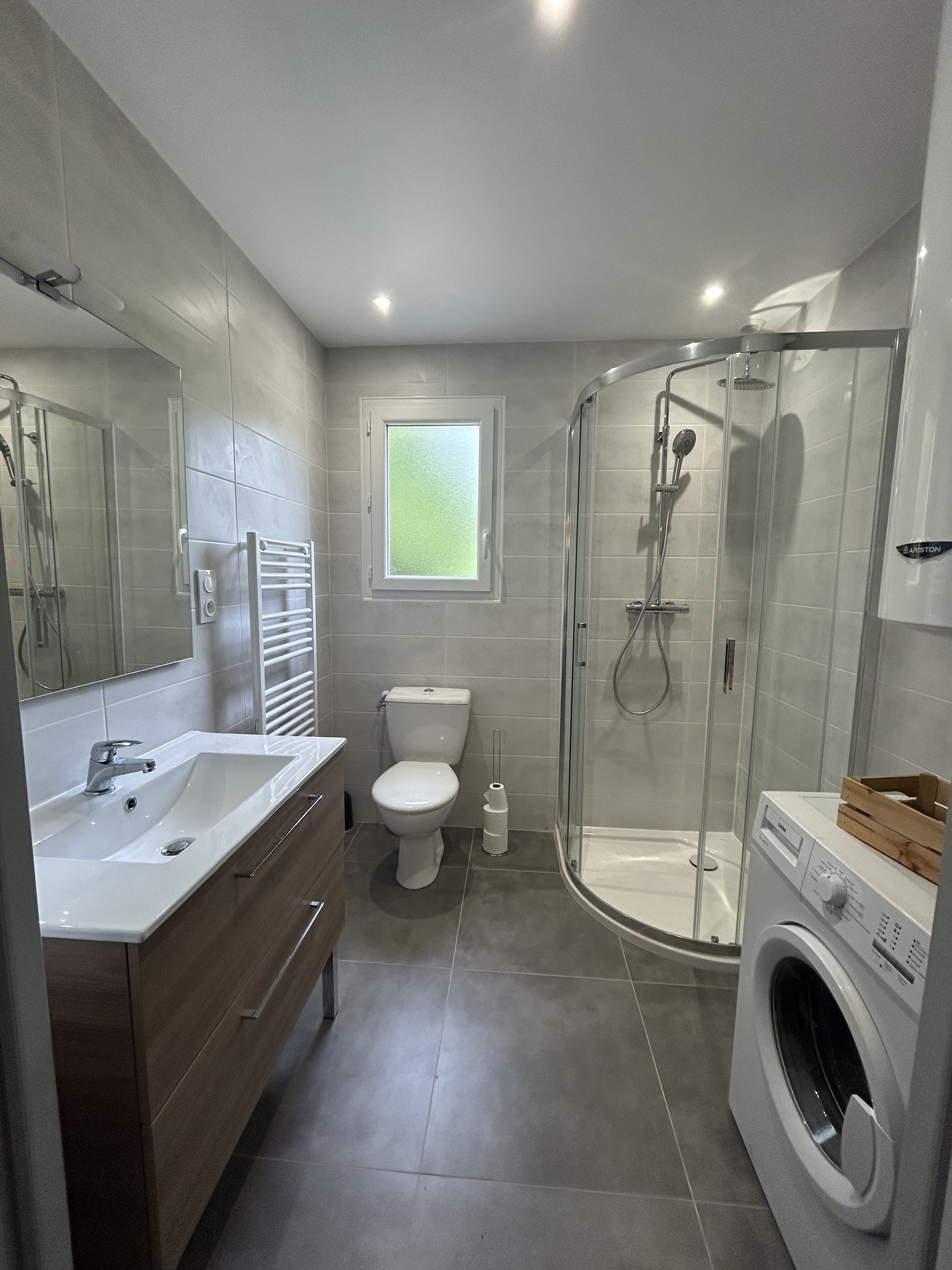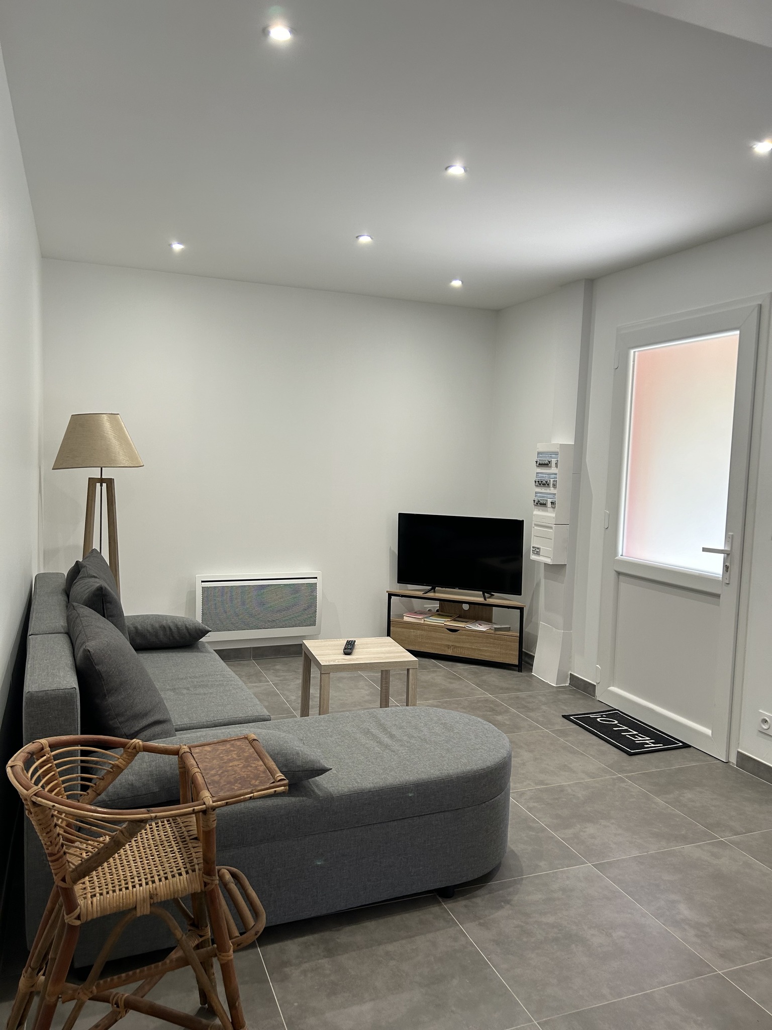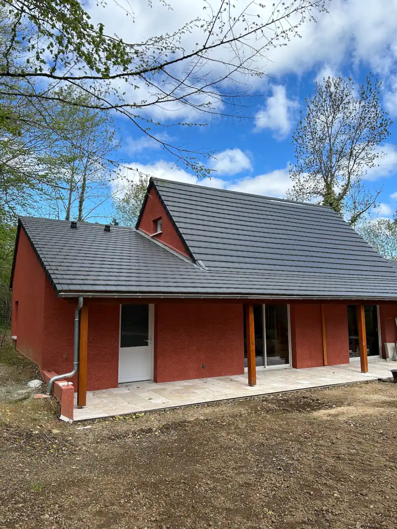 Holiday house in La Salvetat-sur-Agout, 60 m²: living/dining room, fully equipped kitchen, 2 bedrooms, shower room with toilet. Sleeps up to 6 people. Open all year – electric heating.