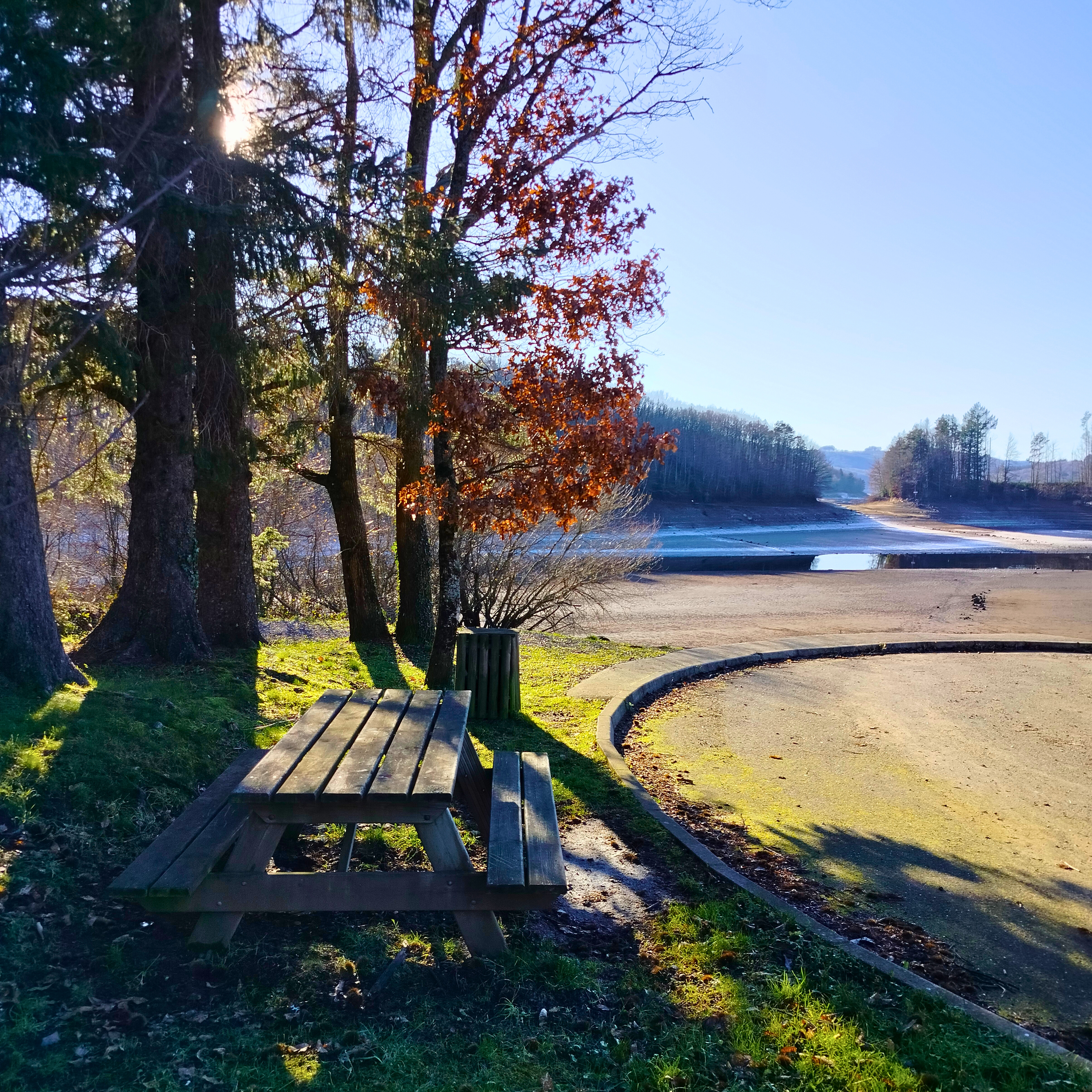 Pequeña área sombreada frente al lago de la Raviège y cerca de la base de ocio del Gua des Brasses.