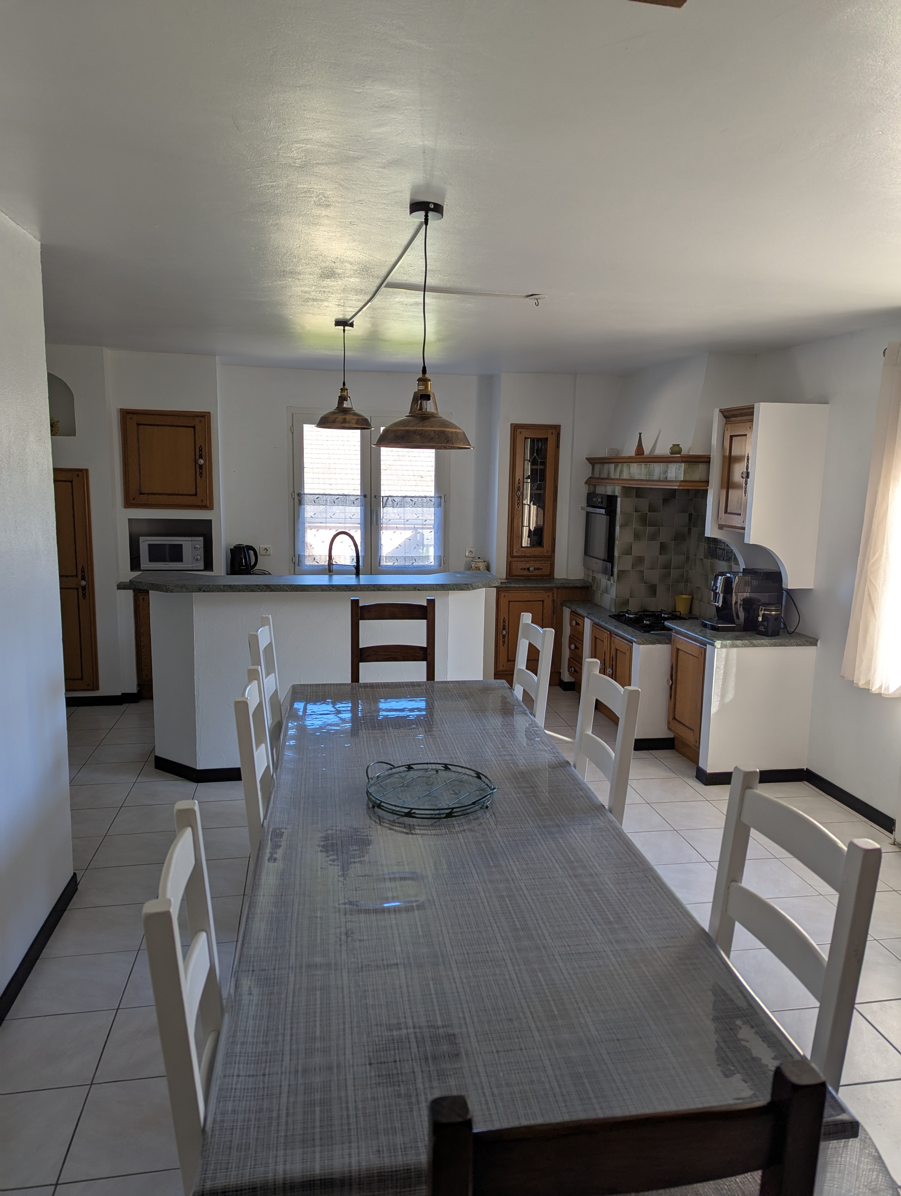 Maison individuelle et familiale d'une superficie de 180 m². Vous disposerez d'un jardin, d'un barbecue et d'un stationnement au pied de l'habitation (plusieurs véhicules légers). Vous trouverez au rez-de-chaussée une véranda, une cuisine équipée, une salle à manger, un salon, une chambre (lit 160x200)/salle de bain et un WC.