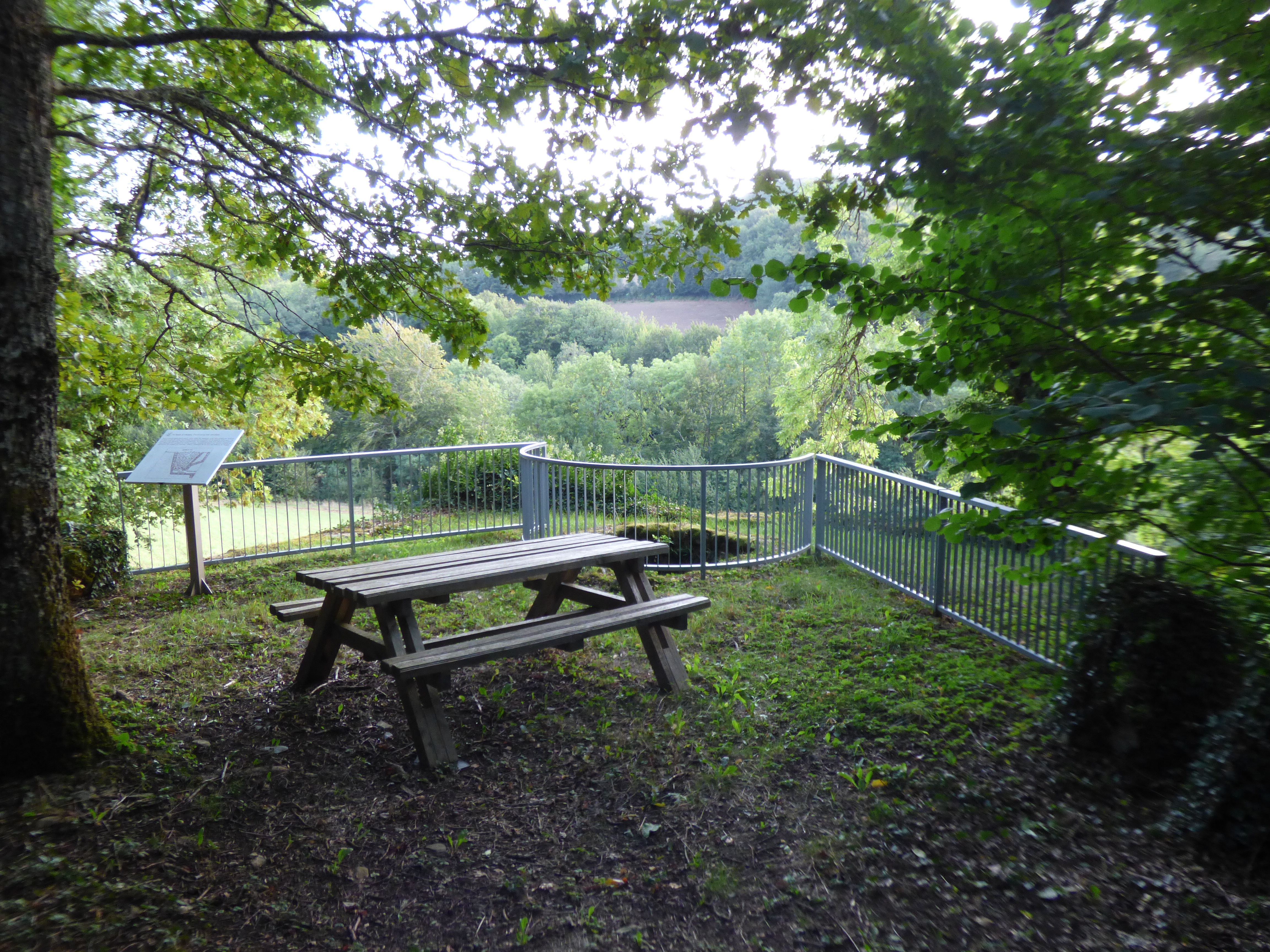 Área sombreada retirada de la carretera, accesible por un sendero.