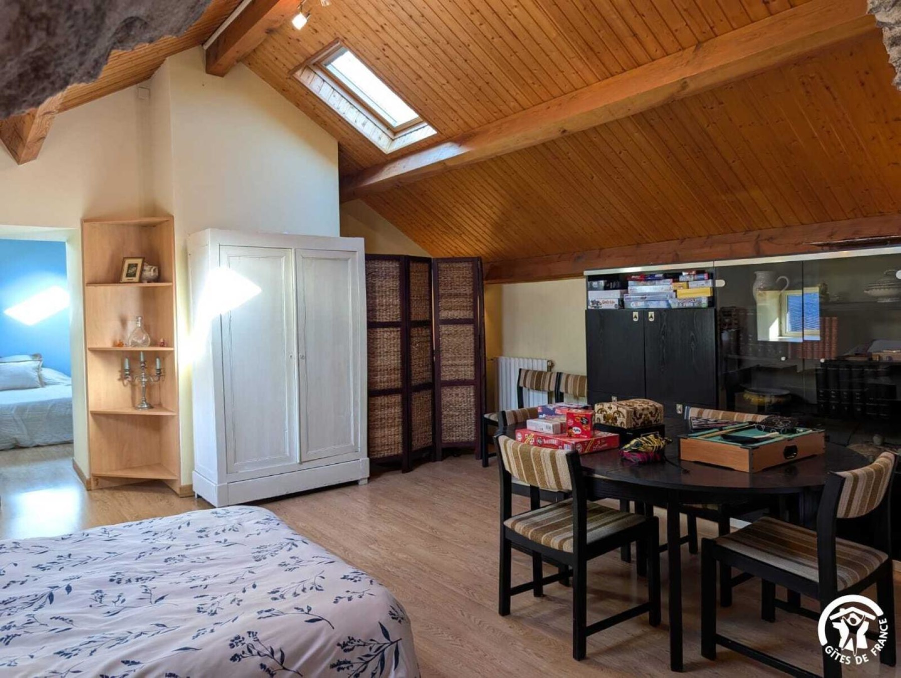 - Sala de juegos convertible en dormitorio: 34 m² con cama doble, sofá, mesa, sillas y juegos de mesa