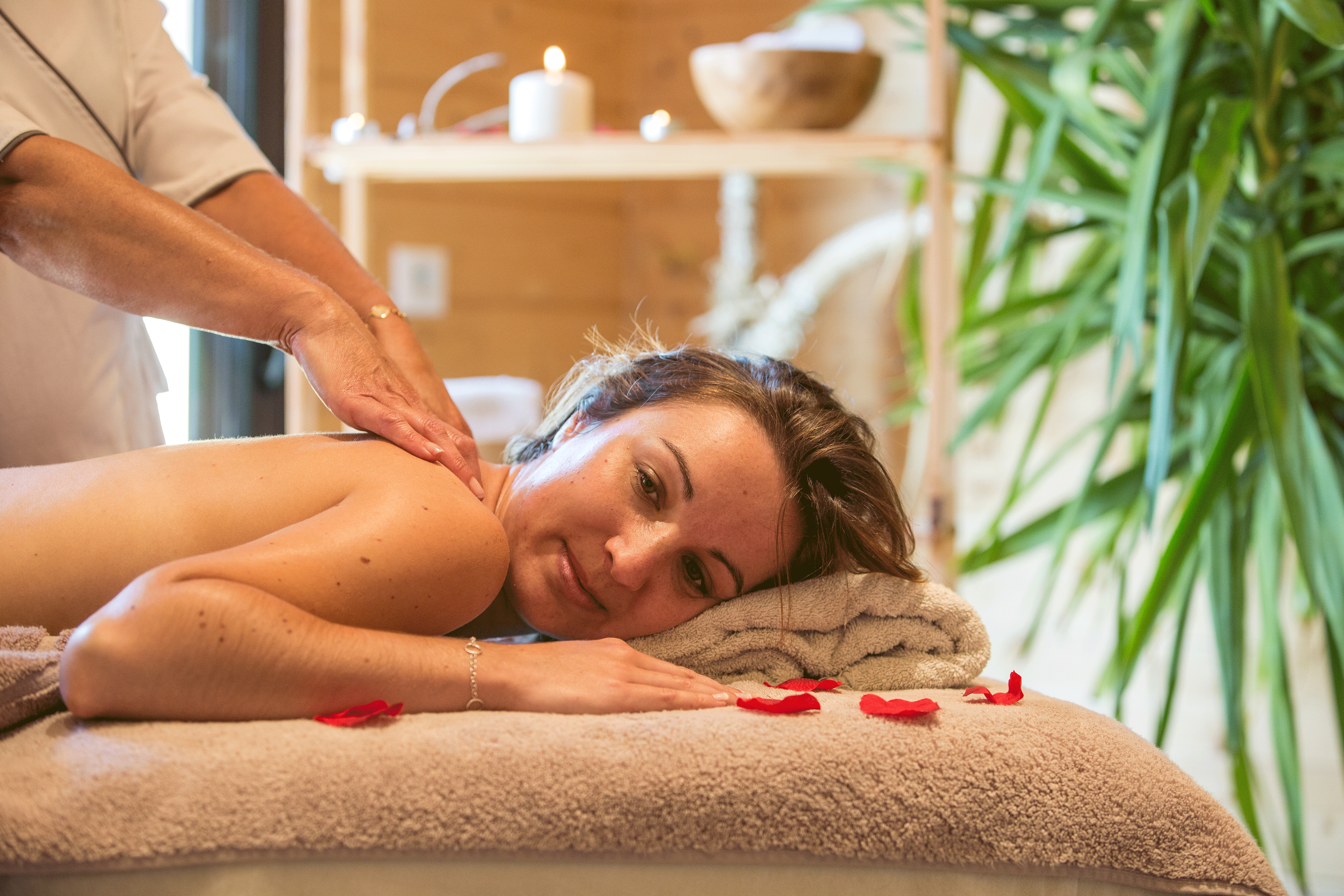 Soin : gommage, enveloppement et modelage.