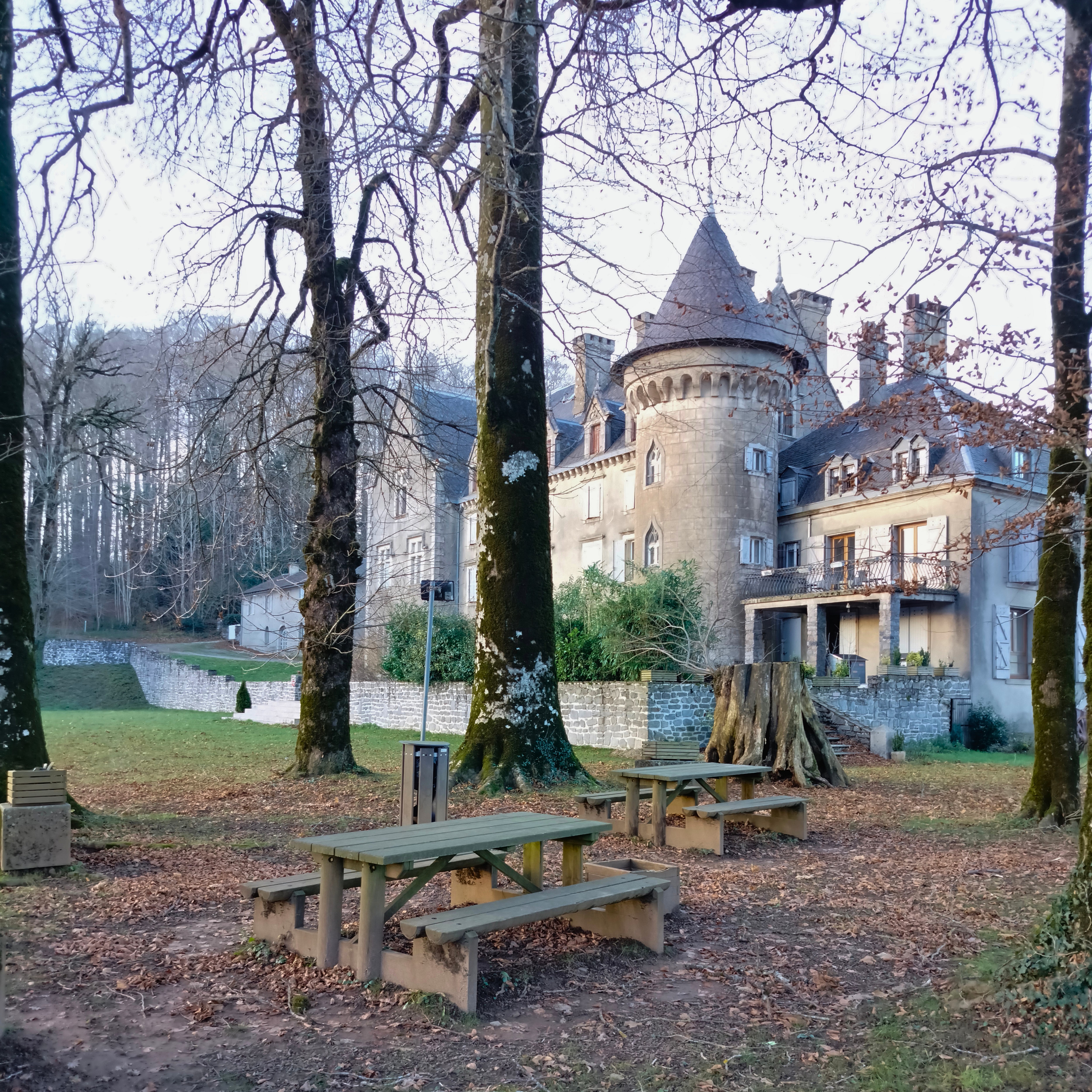 Área sombreada en el parque del castillo, equipada con barbacoas. Cerca de un circuito de orientación en el bosque adyacente (mapas disponibles en la oficina de turismo de Lacaune).