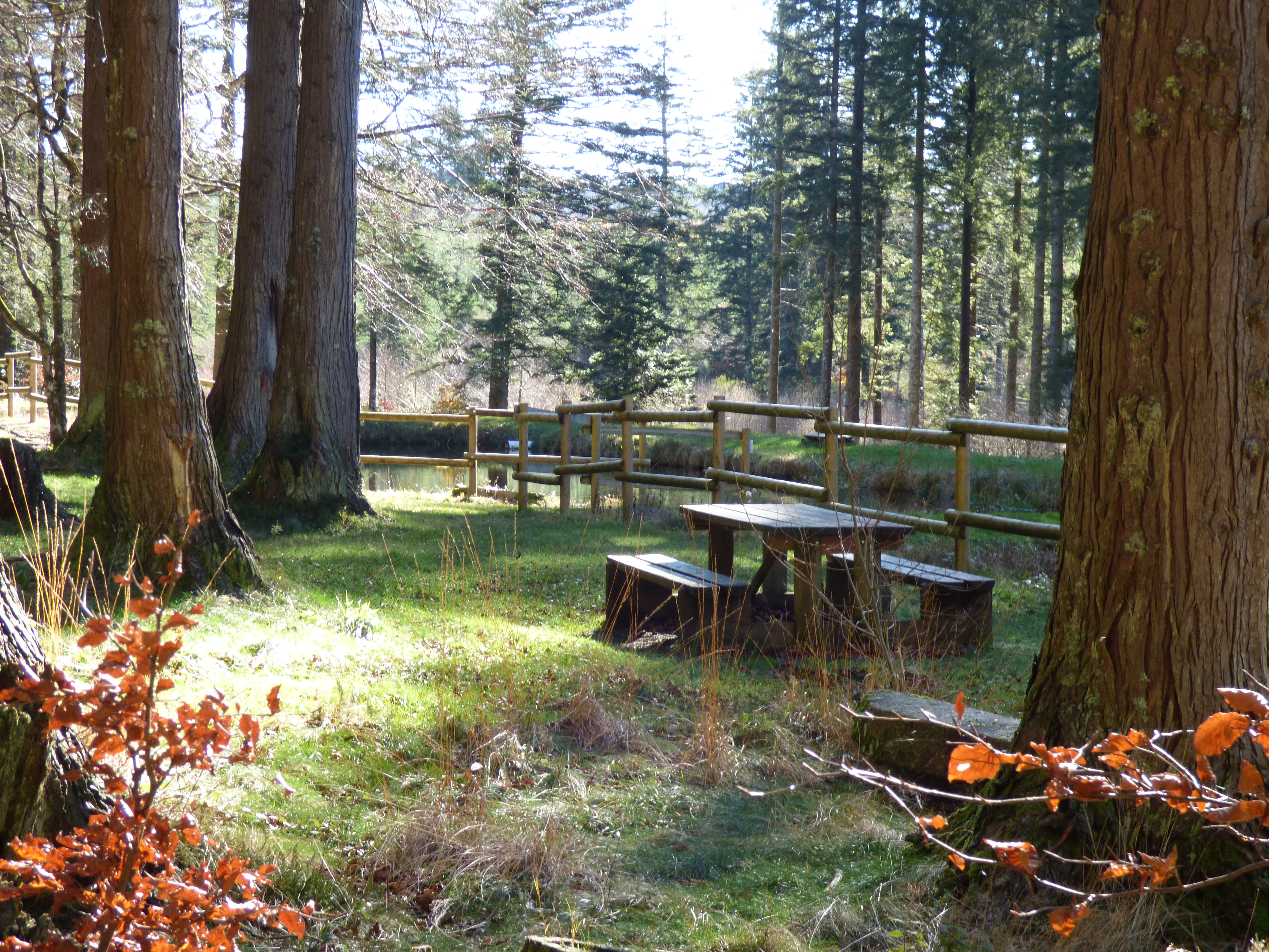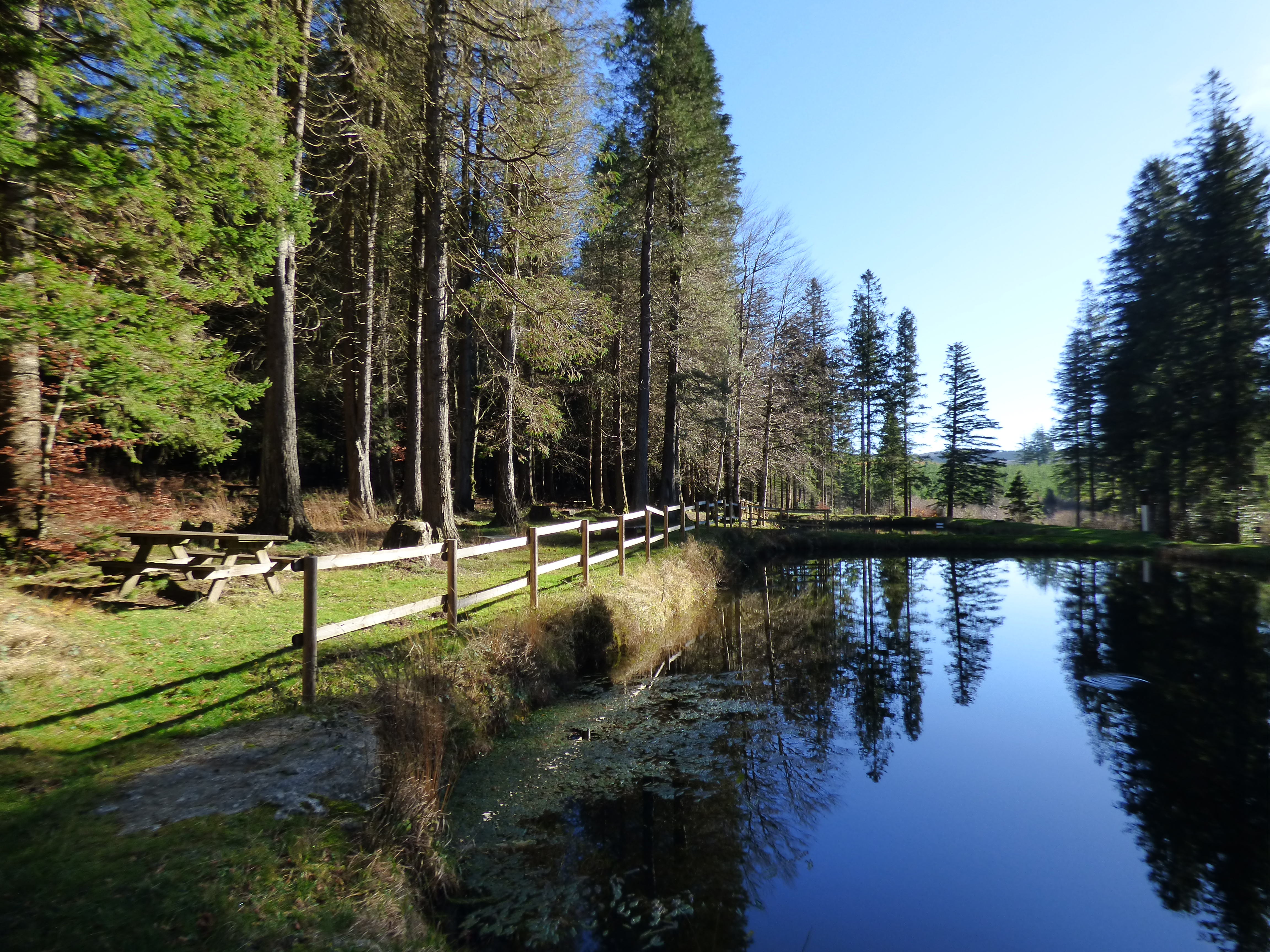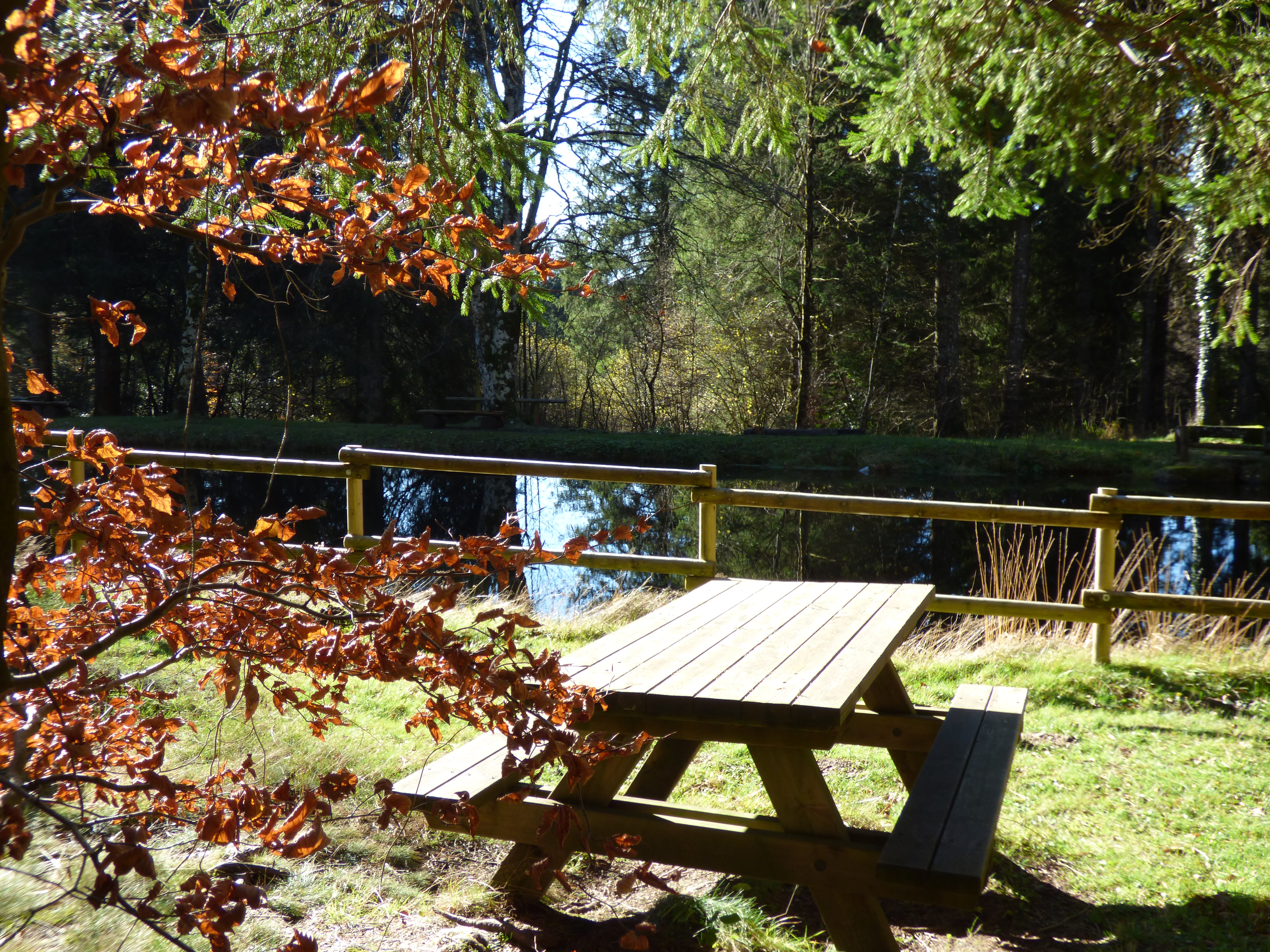 Ideal para pescar, situada alrededor de dos estanques en el bosque. Pontón accesible para personas con movilidad reducida y pequeño aparcamiento cercano.