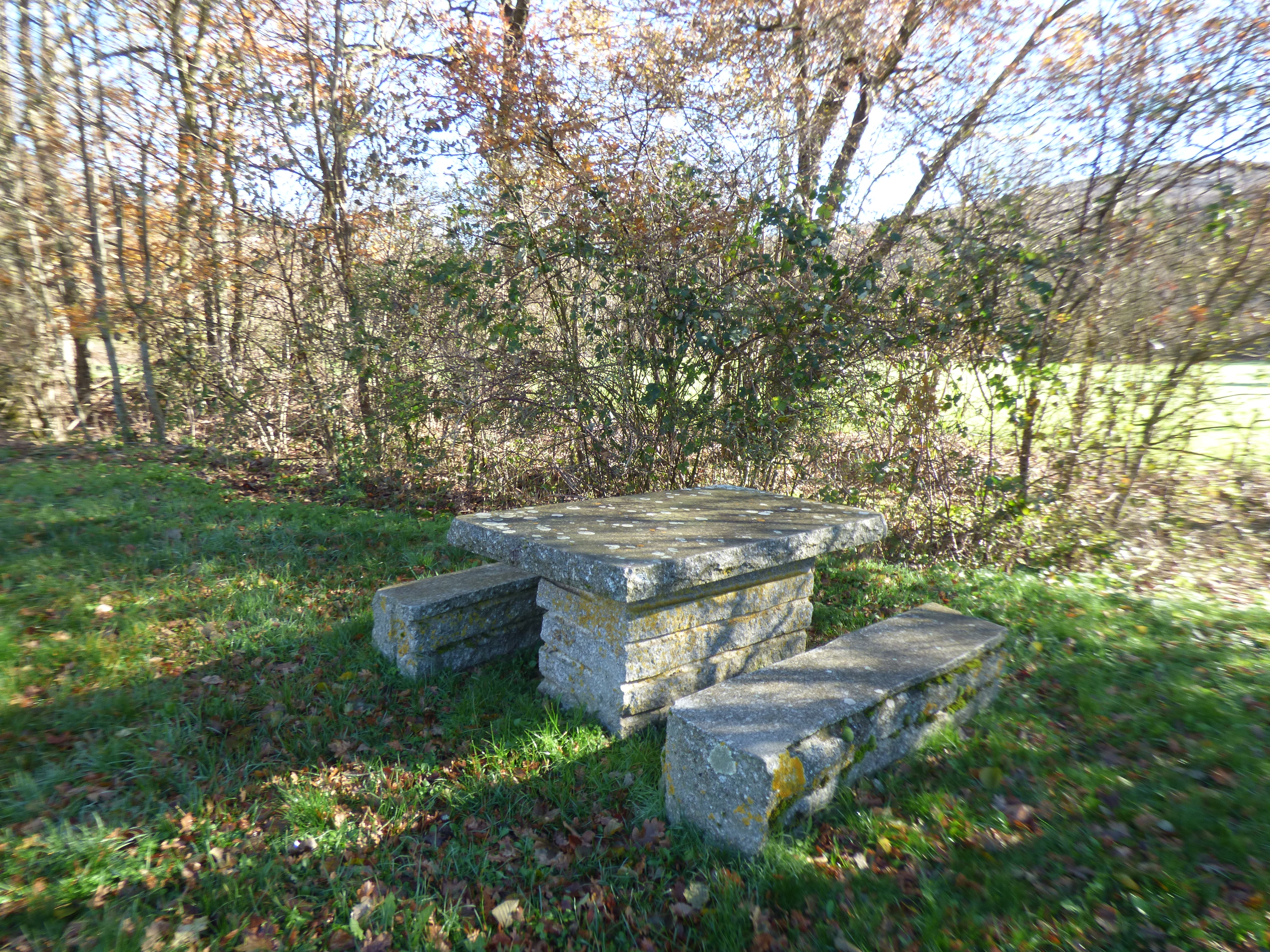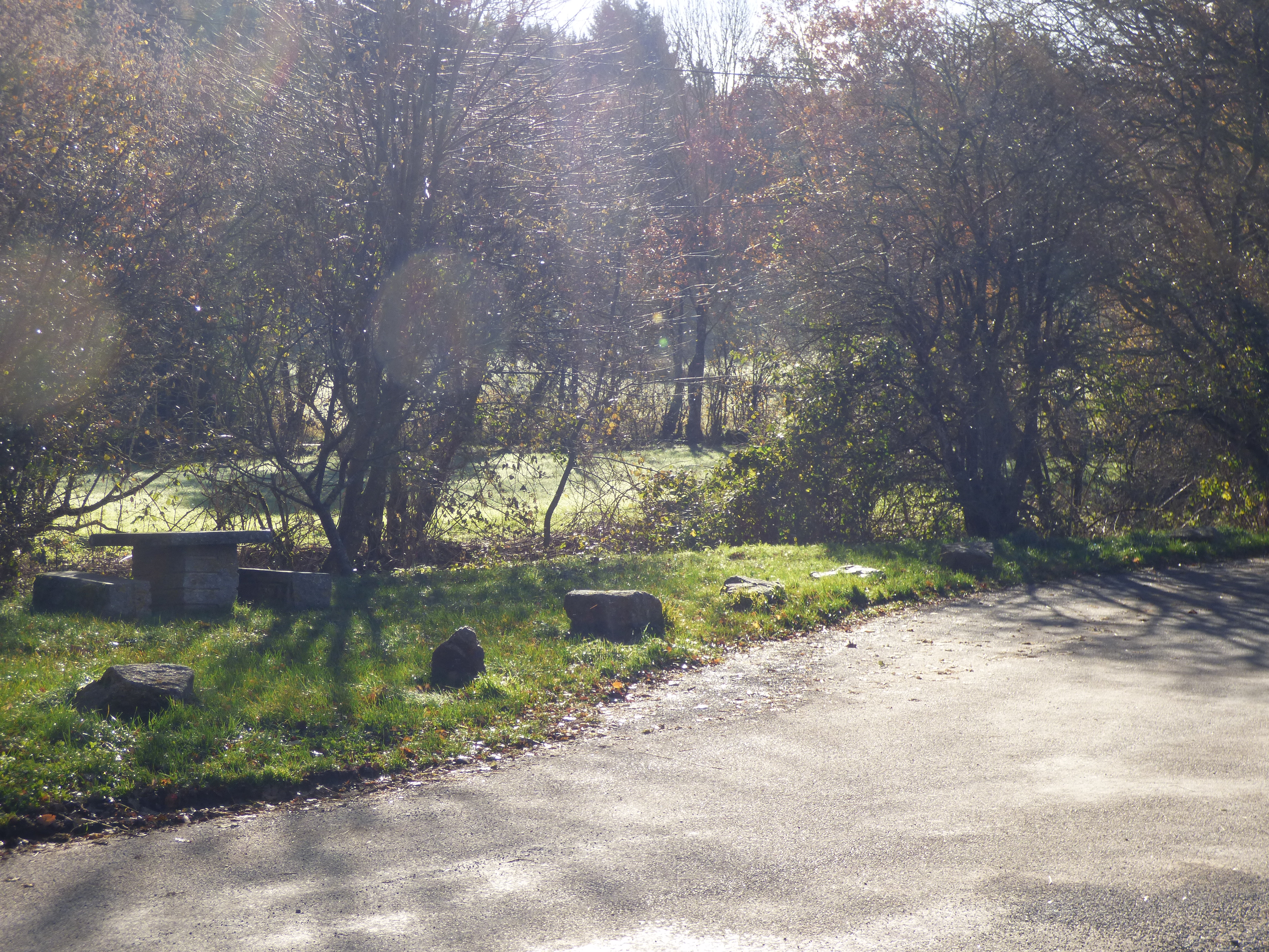 Pequeña área sombreada junto a la carretera. Hay un estatua-menhir cerca.