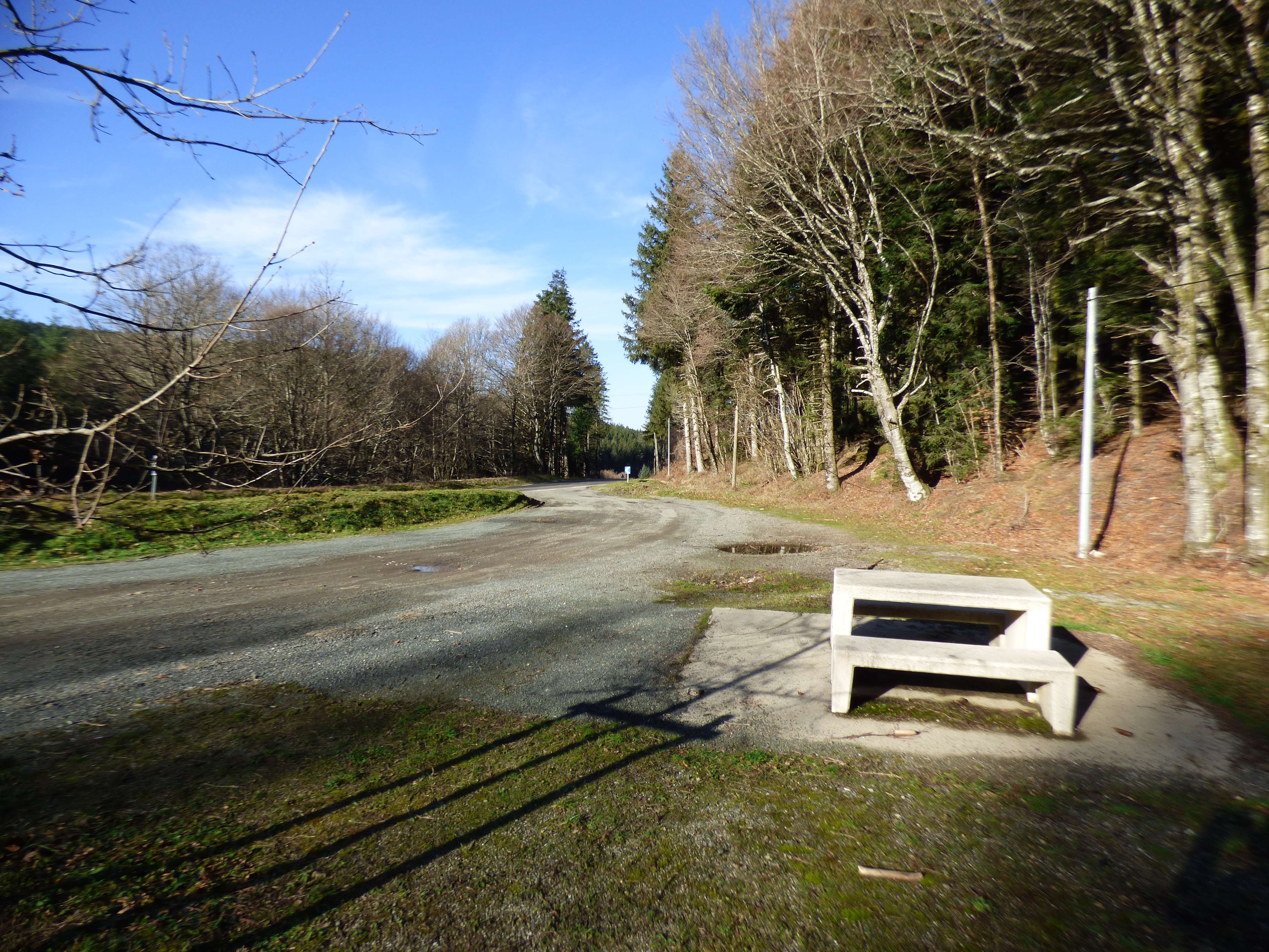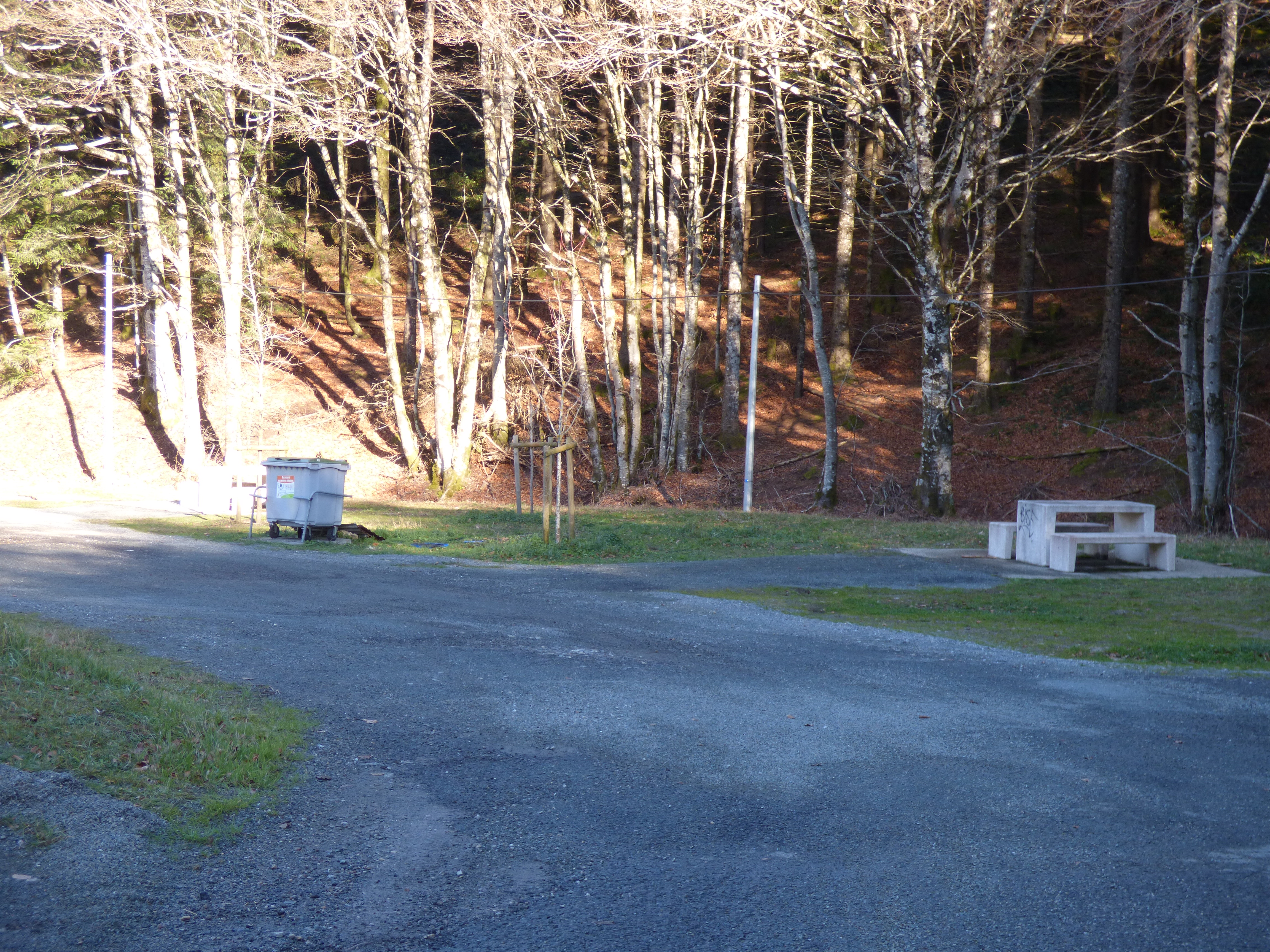 Área con dos mesas junto a la carretera.