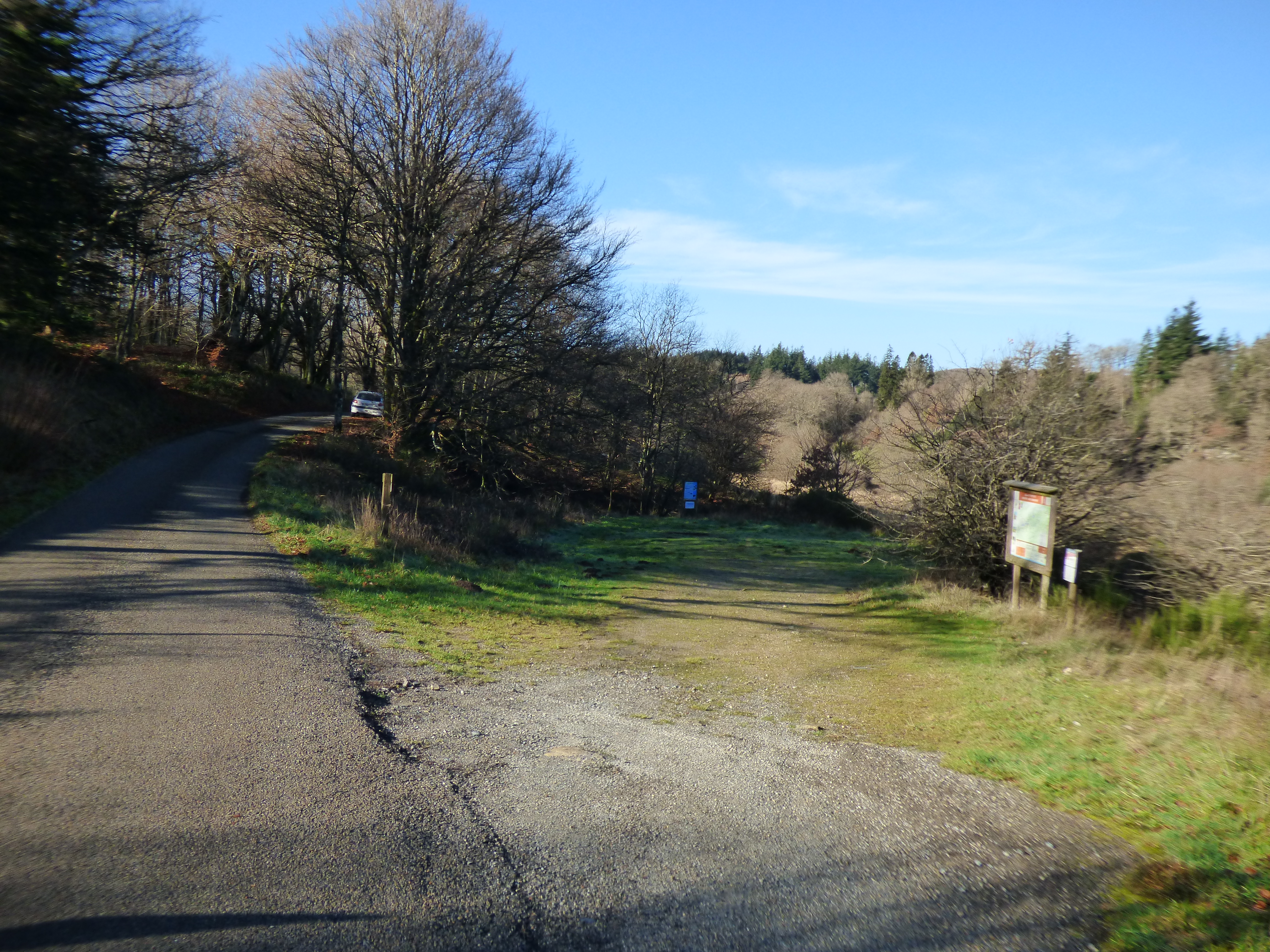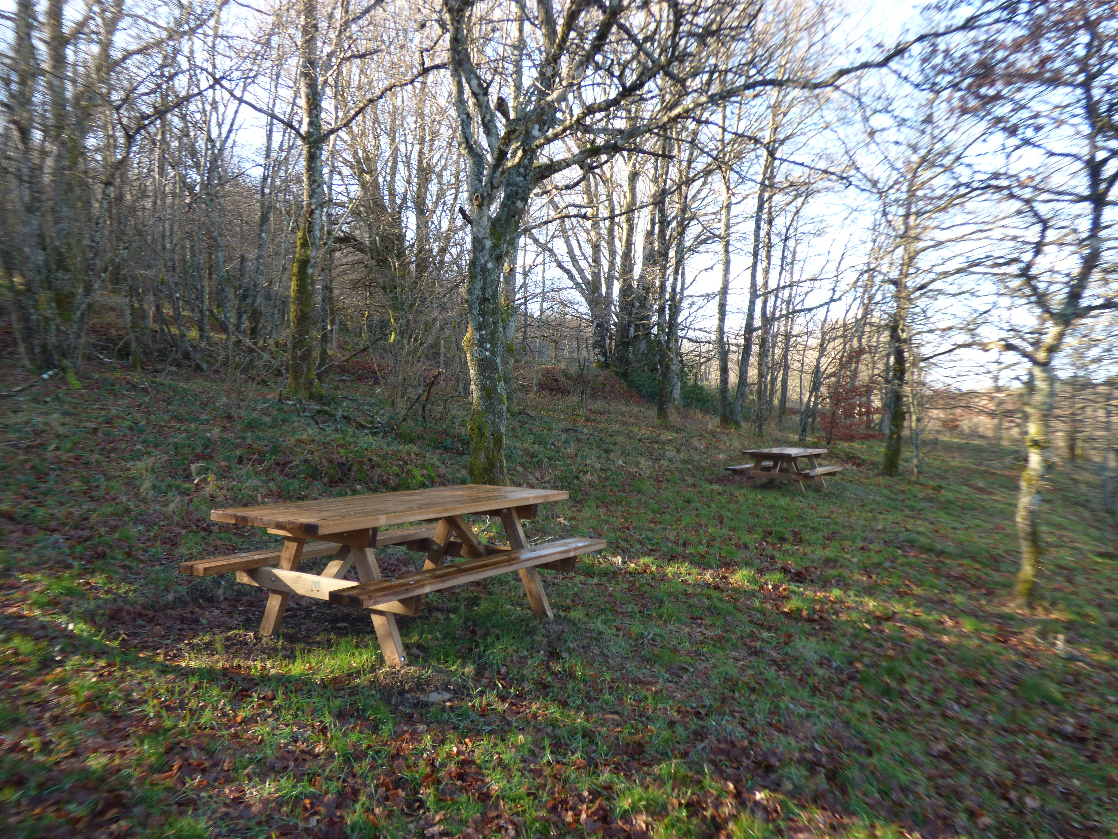 Pequeña área sombreada, retirada de la carretera y junto al río, con un gran aparcamiento.