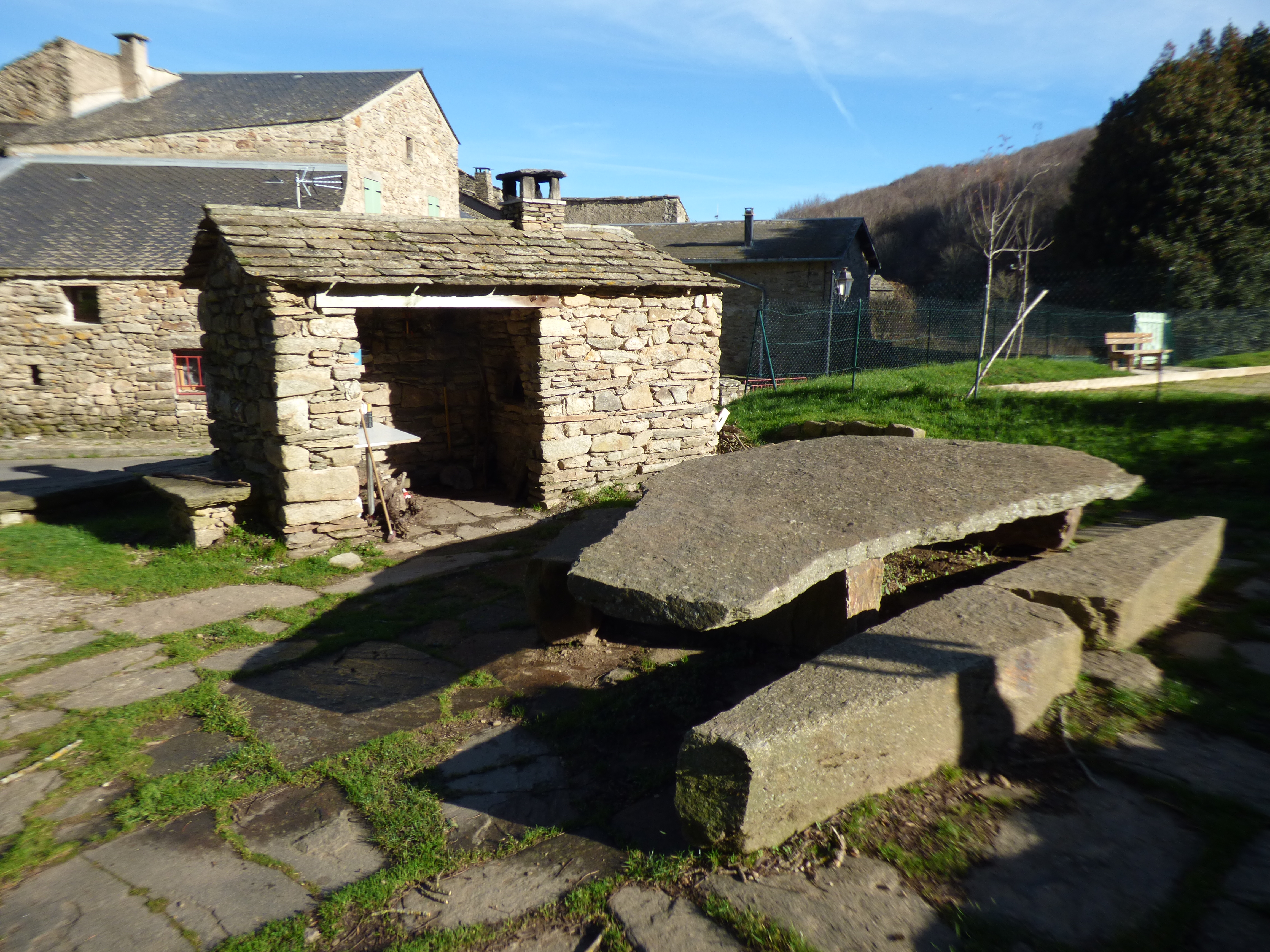Gran mesa de piedra situada al inicio de varios senderos de senderismo. Arroyo y punto de agua cercanos. Aparcamiento obligatorio en la entrada del pueblo. Libros disponibles en el antiguo horno de pan cercano.