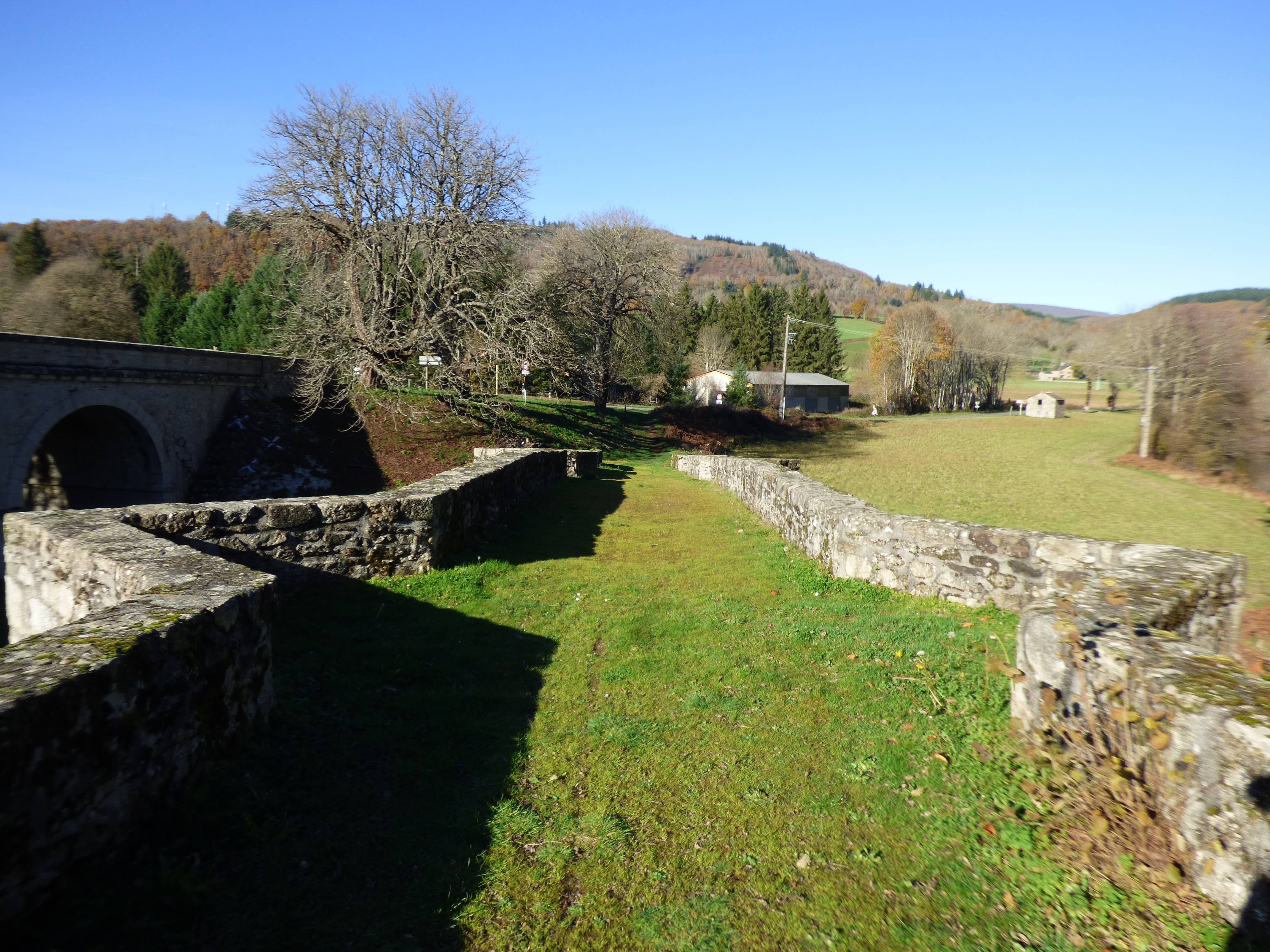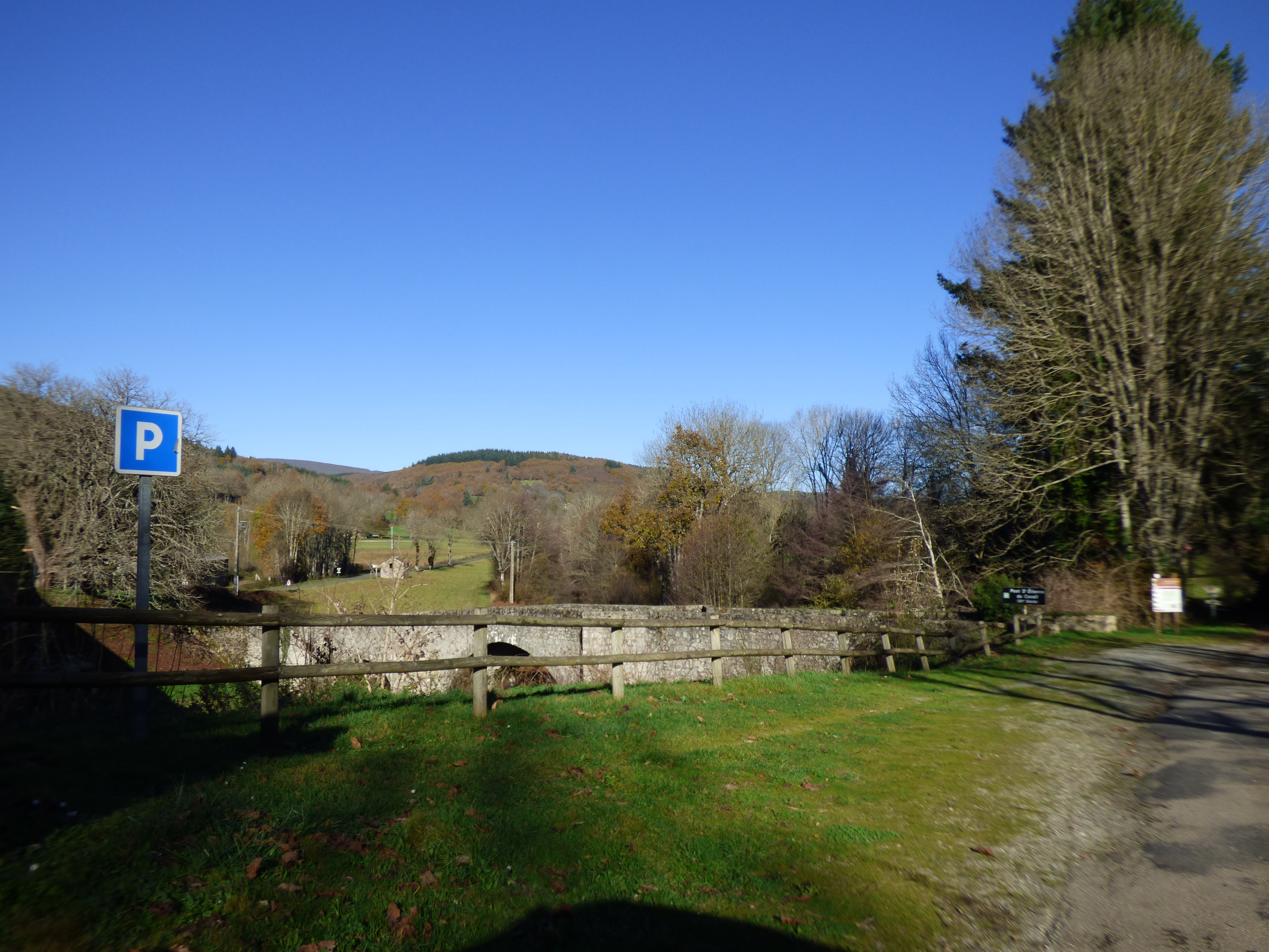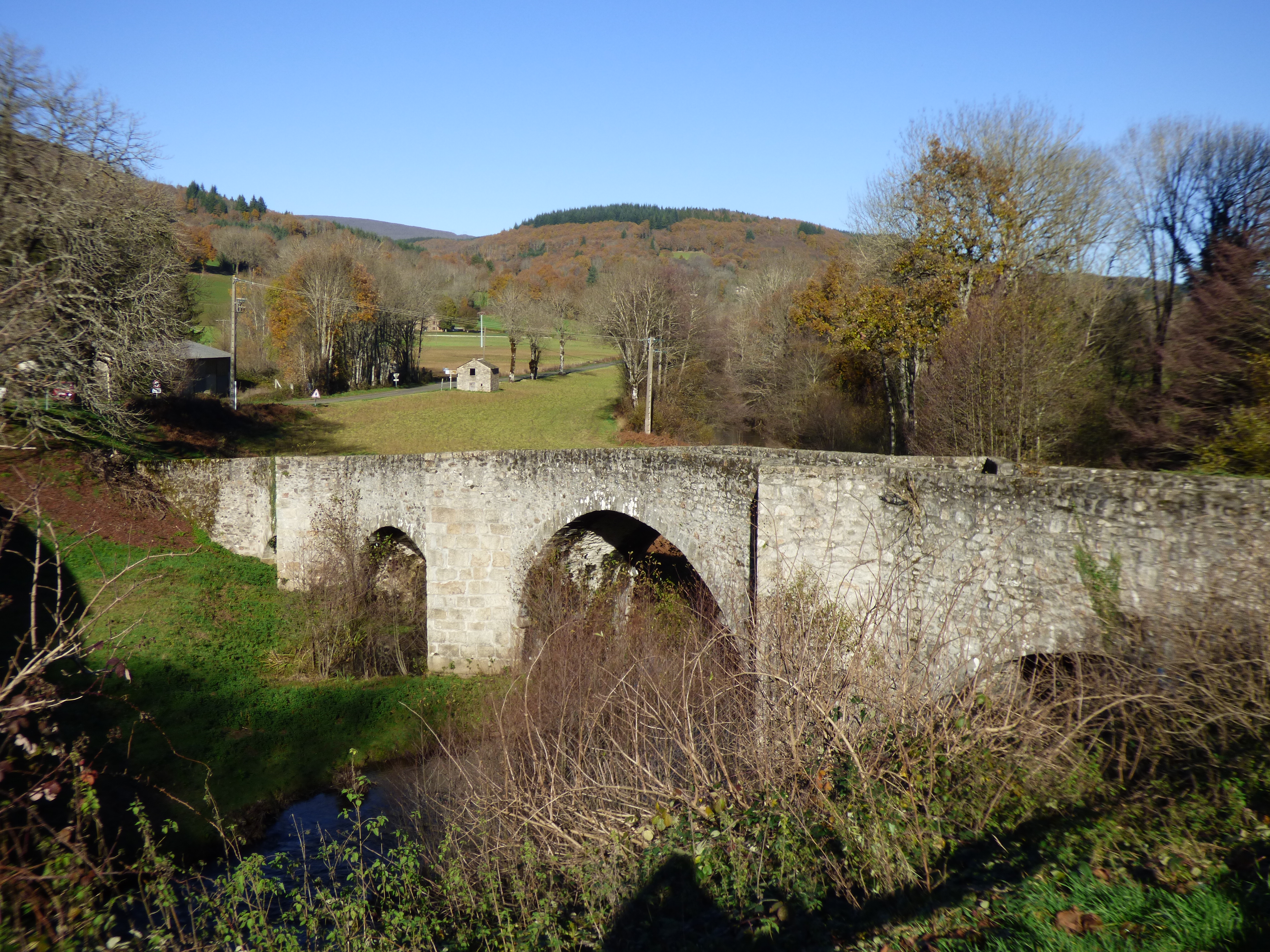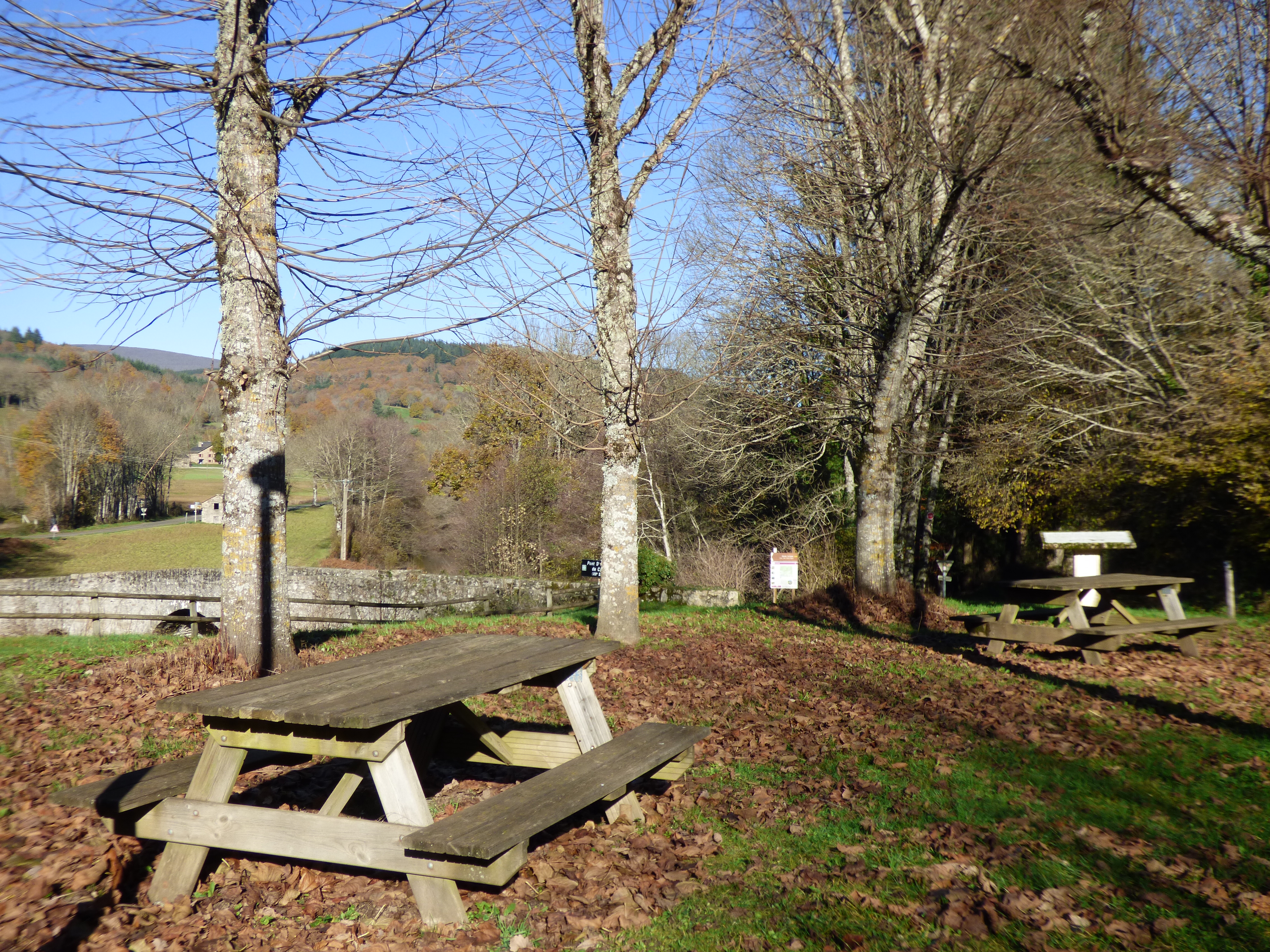 Área sombreada junto a la carretera, cerca del puente de Saint-Étienne de Cavall (siglo XII) y de su capilla (siglos XI-XII)