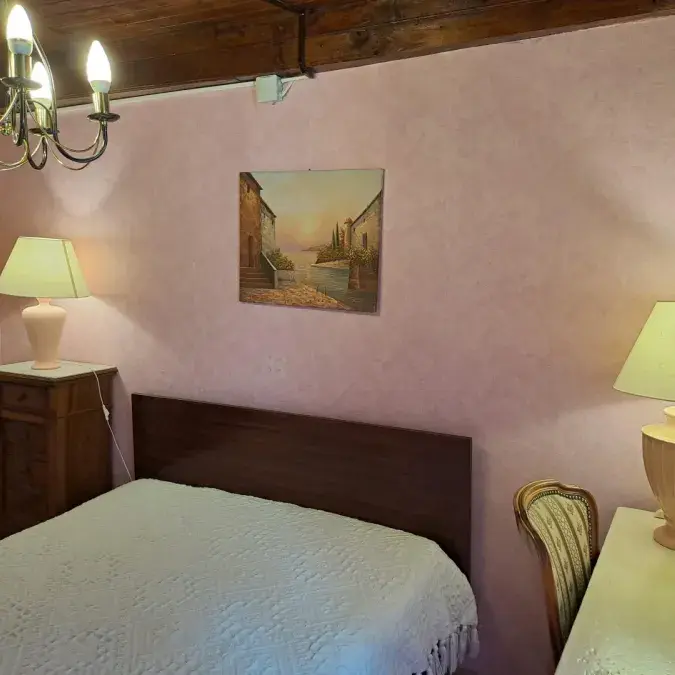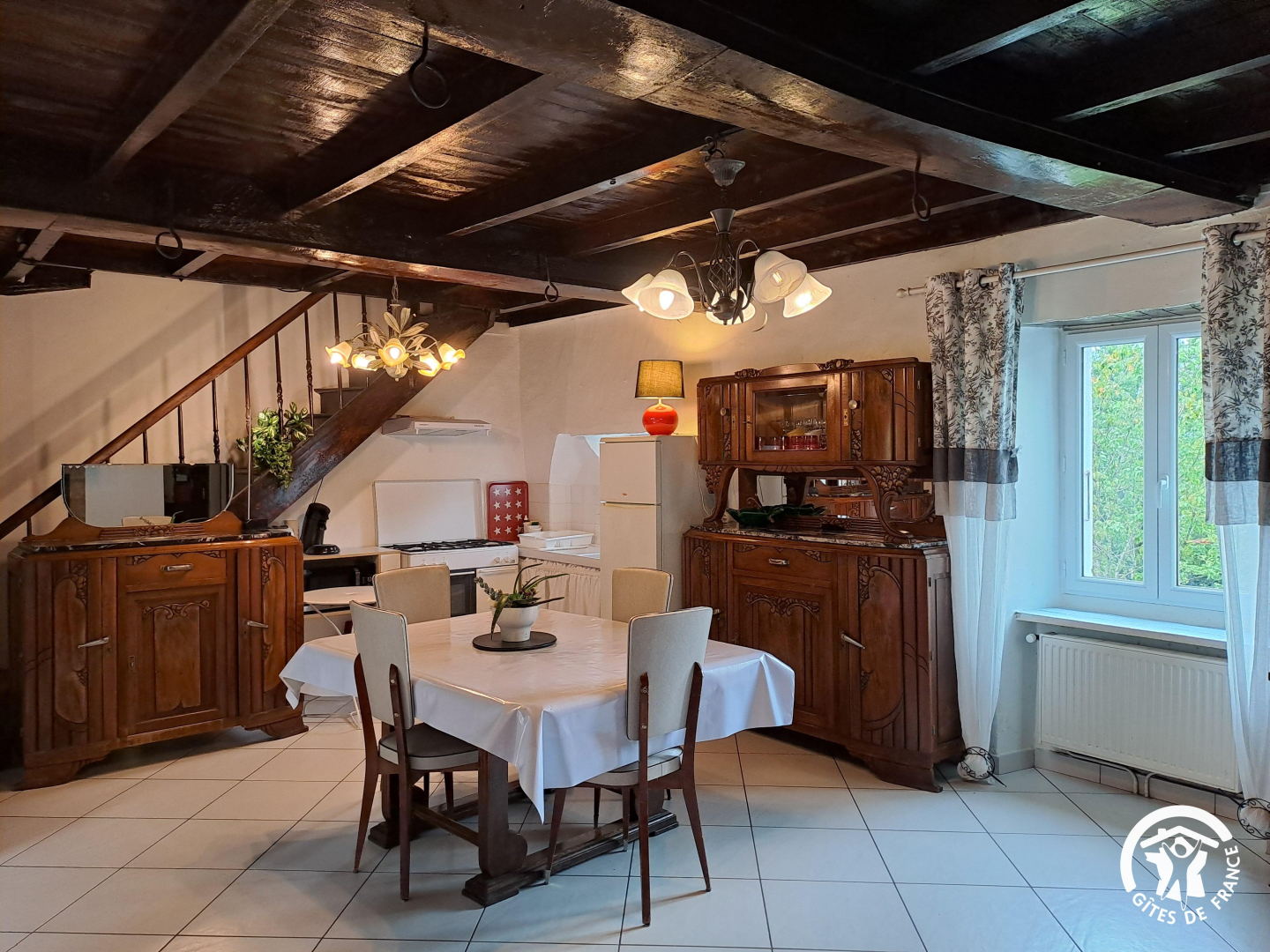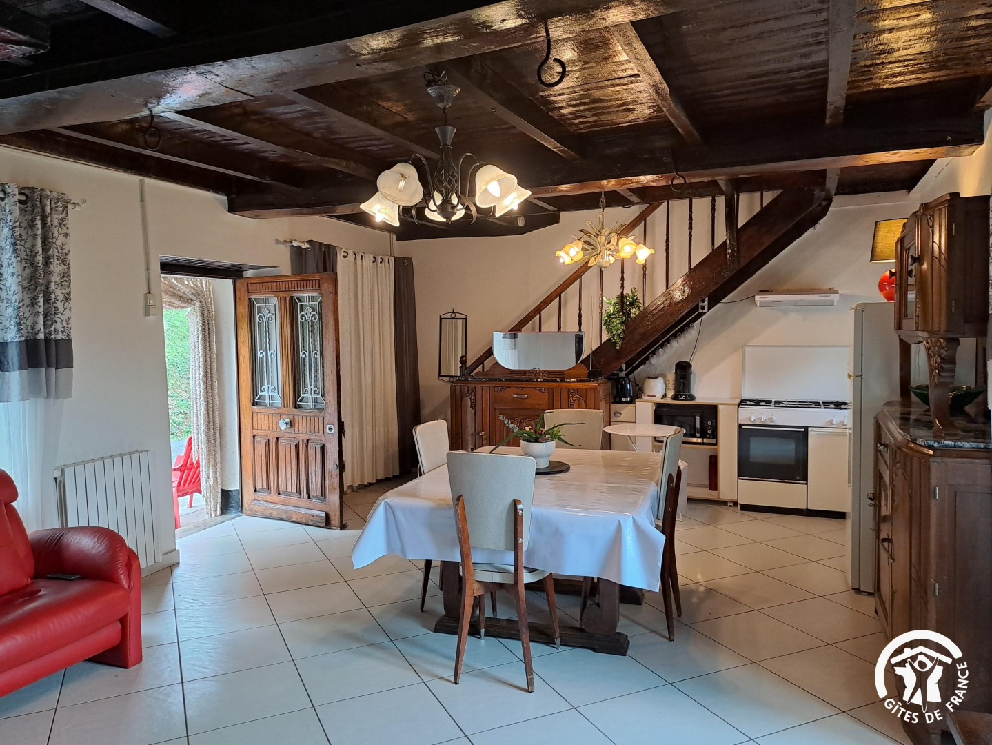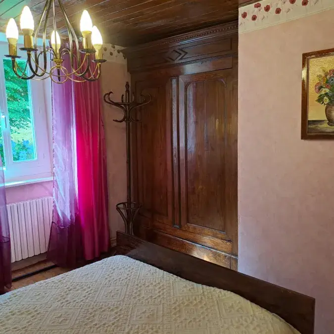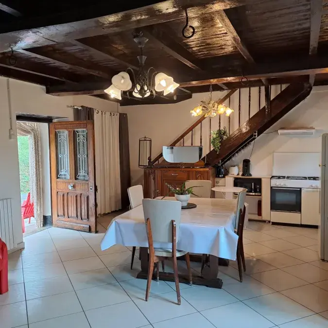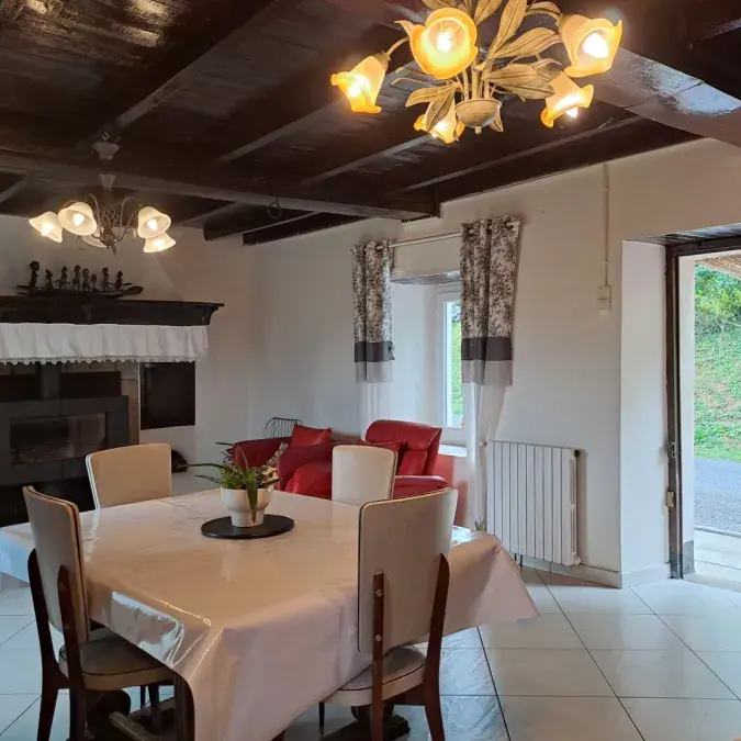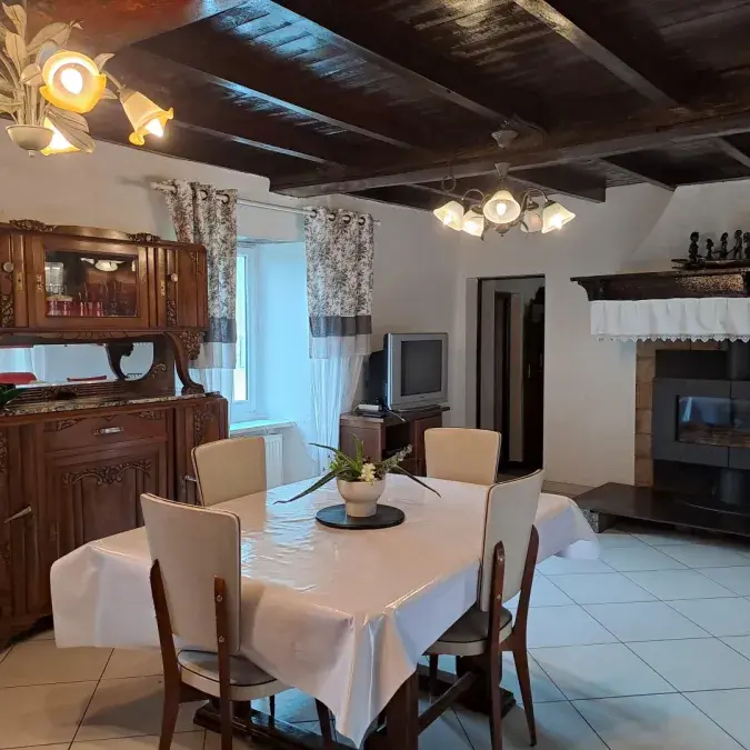 Casa rural en una aldea (2 casas). Planta baja: cocina, comedor, sala de estar (1 cama 1 pers.), cuarto de baño, wc. Planta alta: 2 dormitorios (2 camas dobles), cuna bajo petición. Calefacción central de gas. Biblioteca. Espacios verdes alrededor de la casa (5.6 hectáreas), césped.