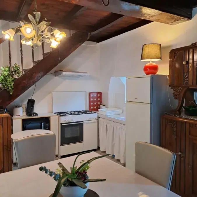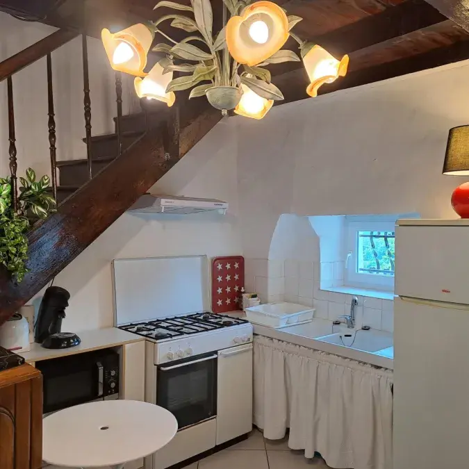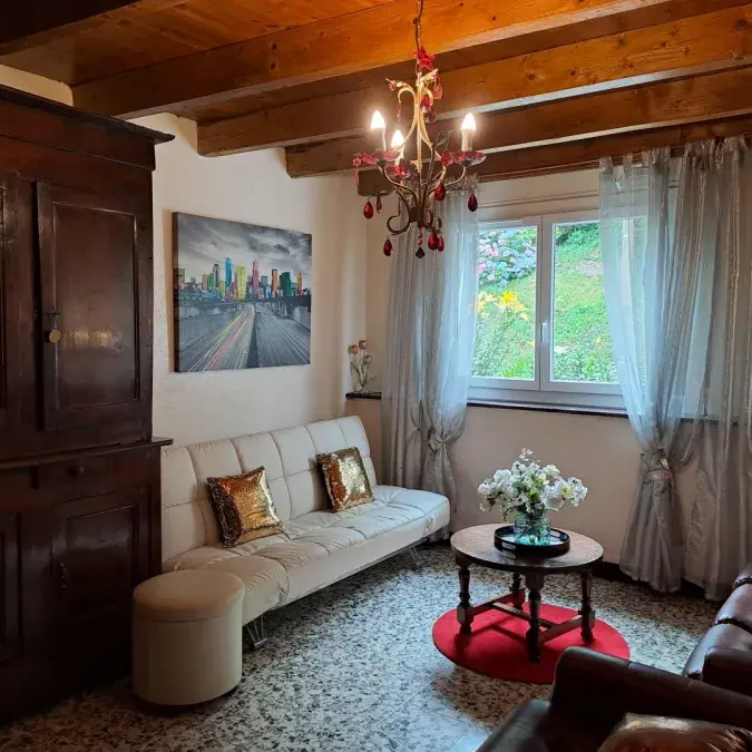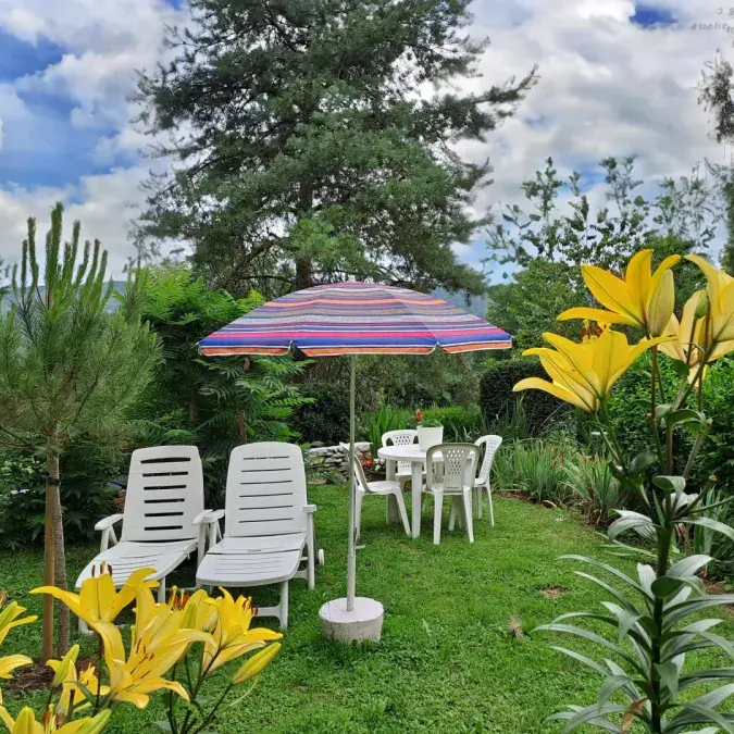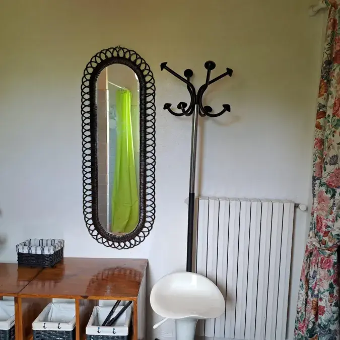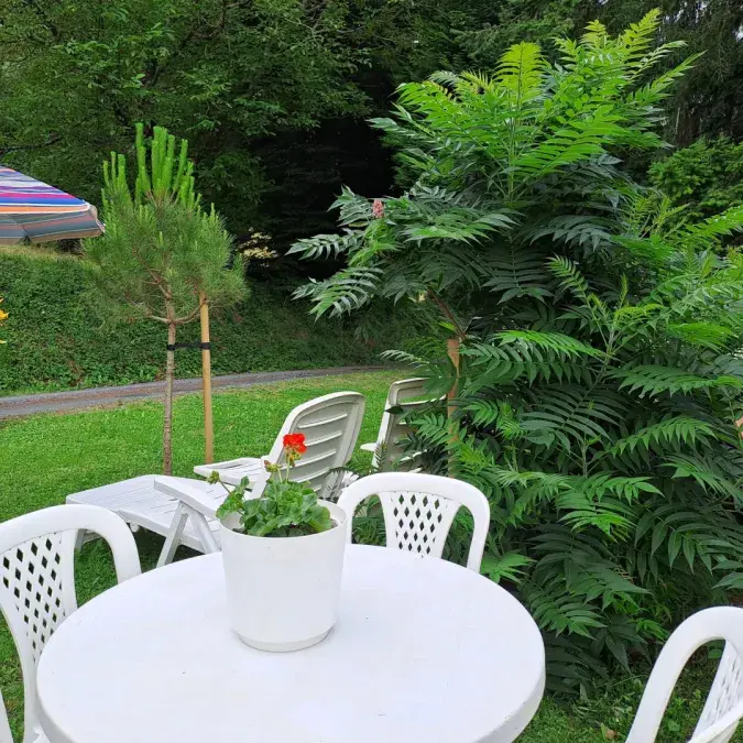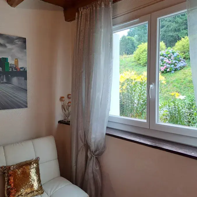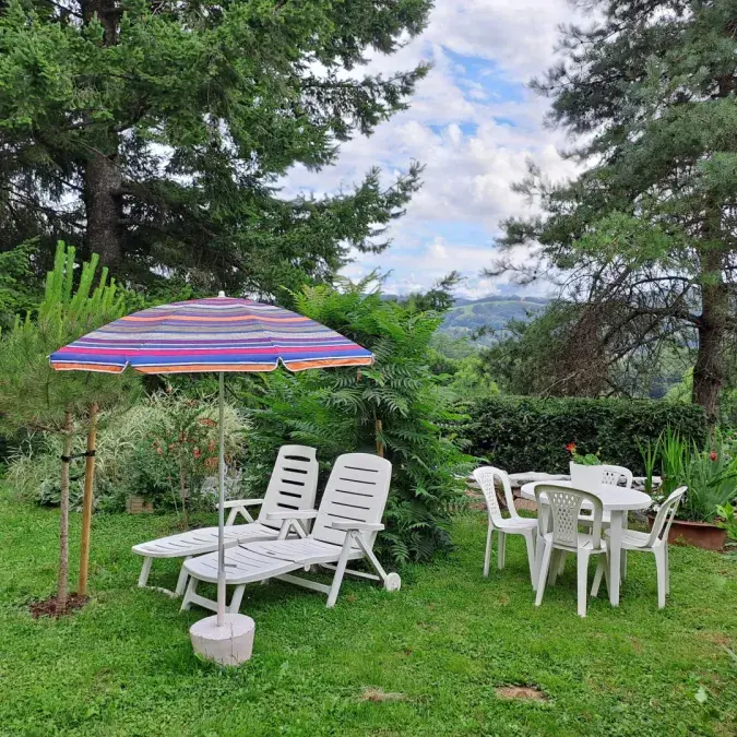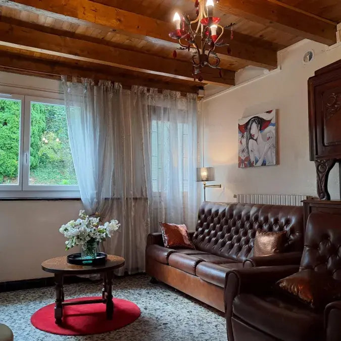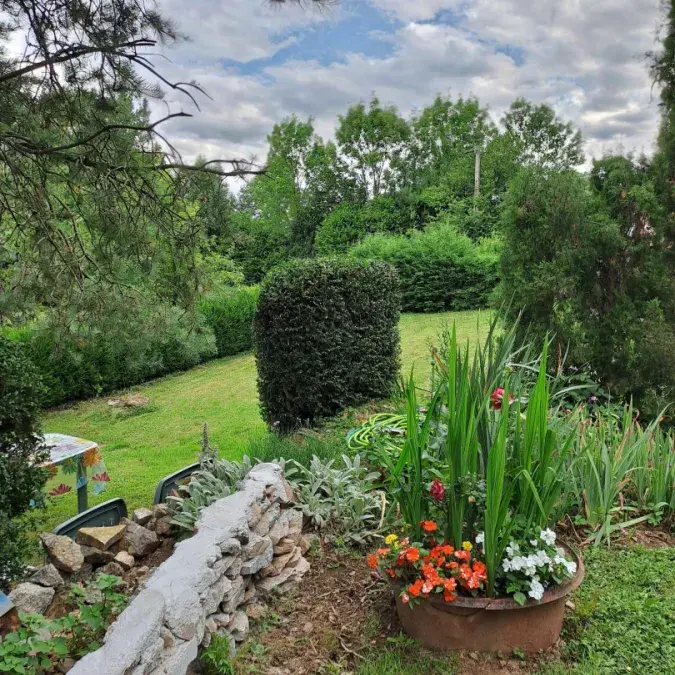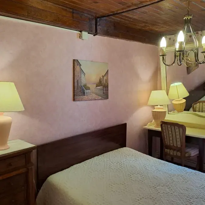 Casa rural en una aldea (2 casas). Planta baja: cocina, comedor, sala de estar (1 cama 1 pers.), cuarto de baño, wc. Planta alta: 2 dormitorios (2 camas dobles), cuna bajo petición. Calefacción central de gas. Biblioteca. Espacios verdes alrededor de la casa (5.6 hectáreas), césped.