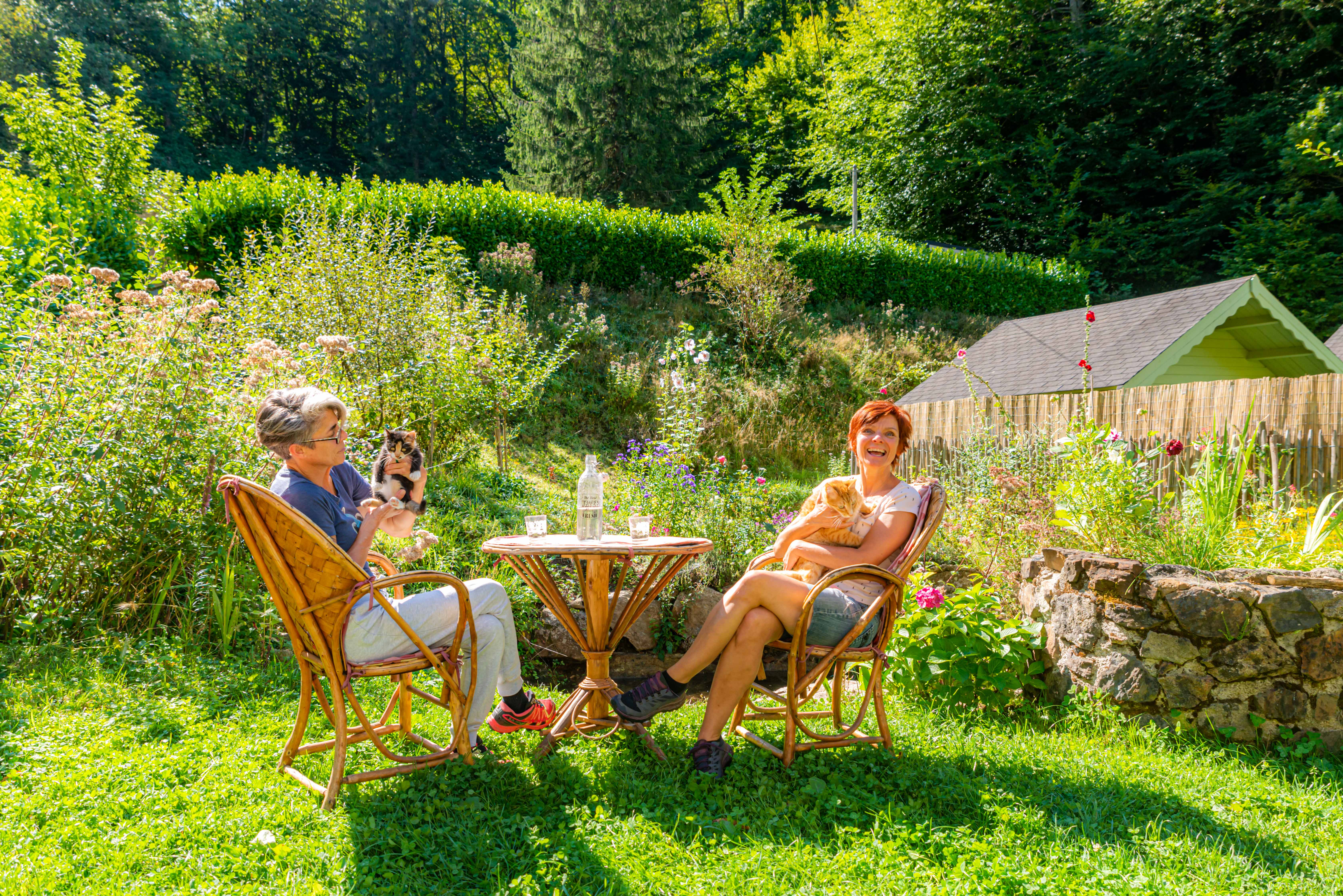 Cabañas acogedoras en el bosque, algunas con jacuzzi privado — todas con baño y cocina. Cada una tiene una decoración personalizada, inspirada en el ambiente auténtico de las casas de nuestras abuelas.