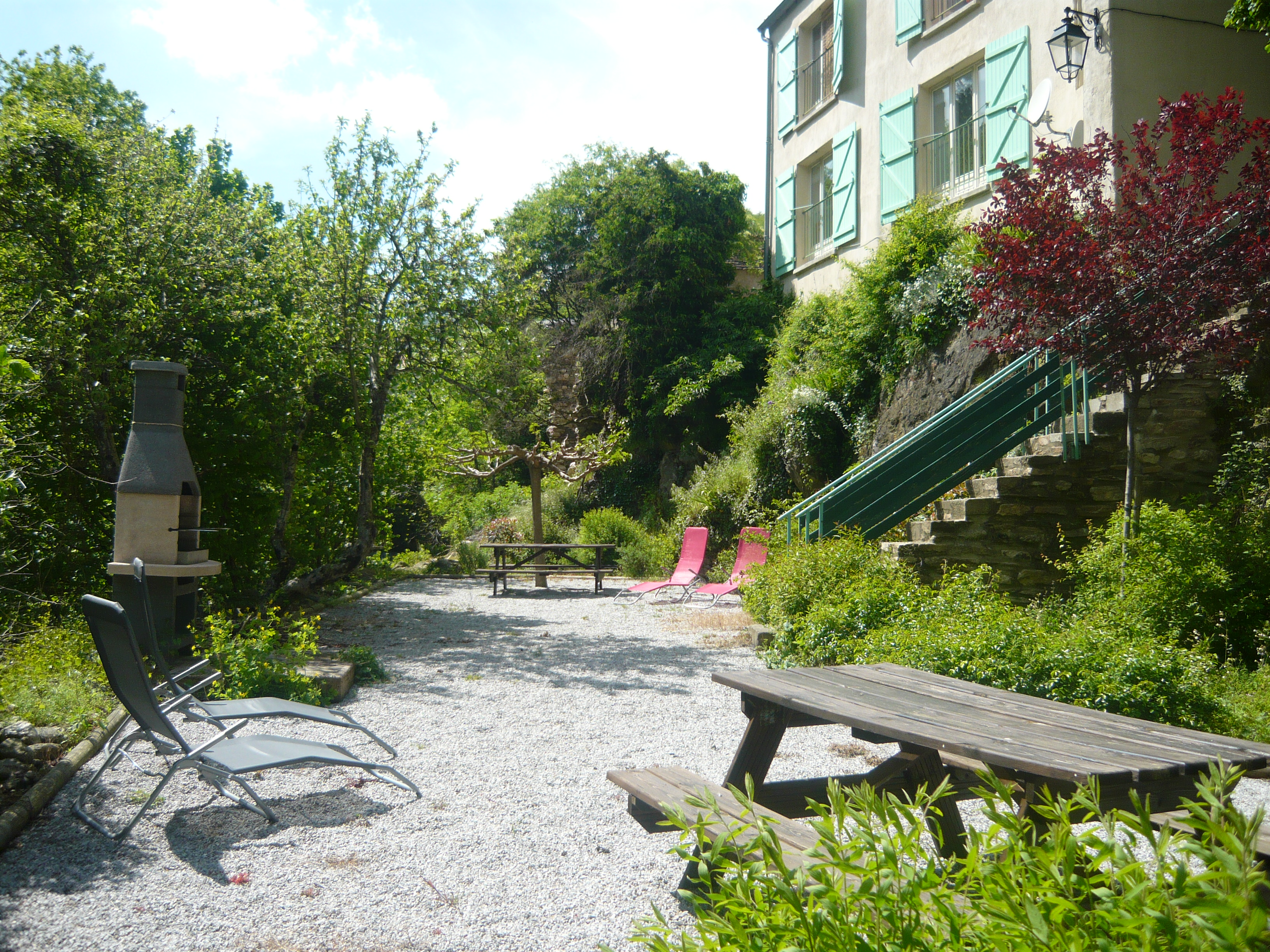 Pequeño alojamiento junto al río en un pueblo del Parque del Haut-Languedoc, con mesa y barbacoa compartidas reservadas para los 2 alojamientos comunales.